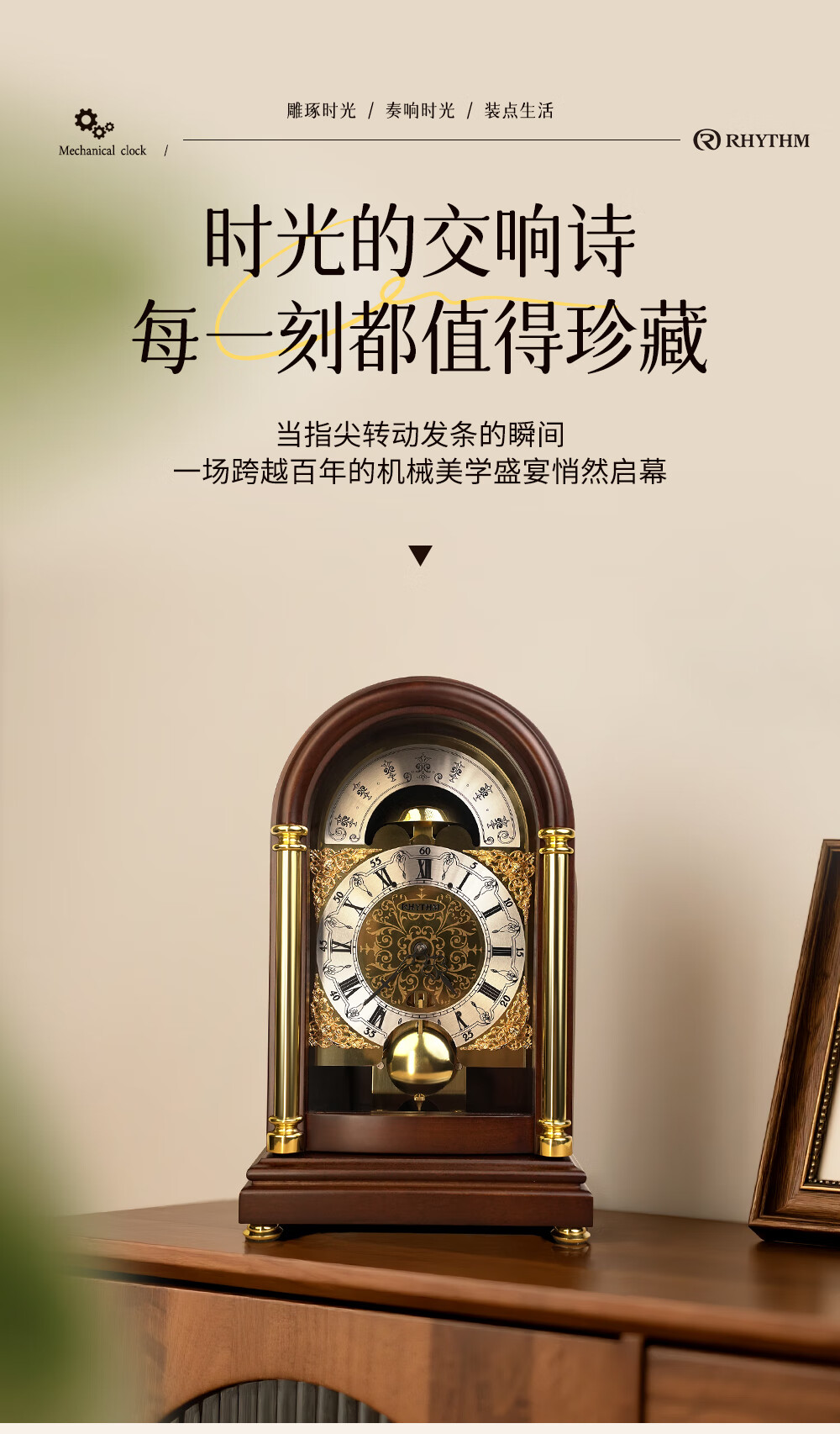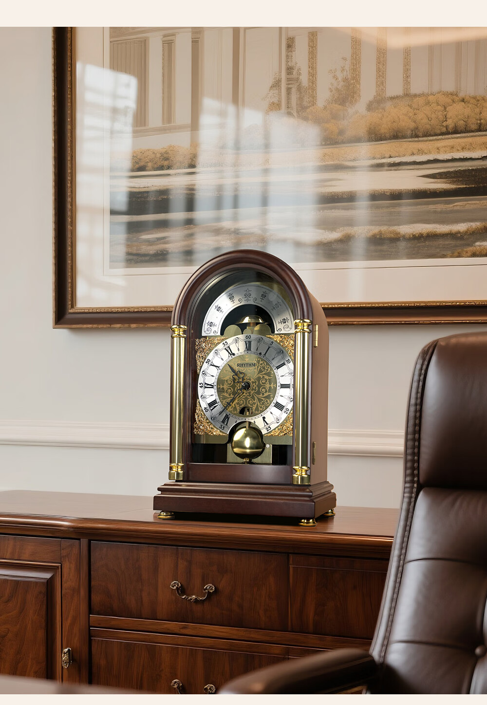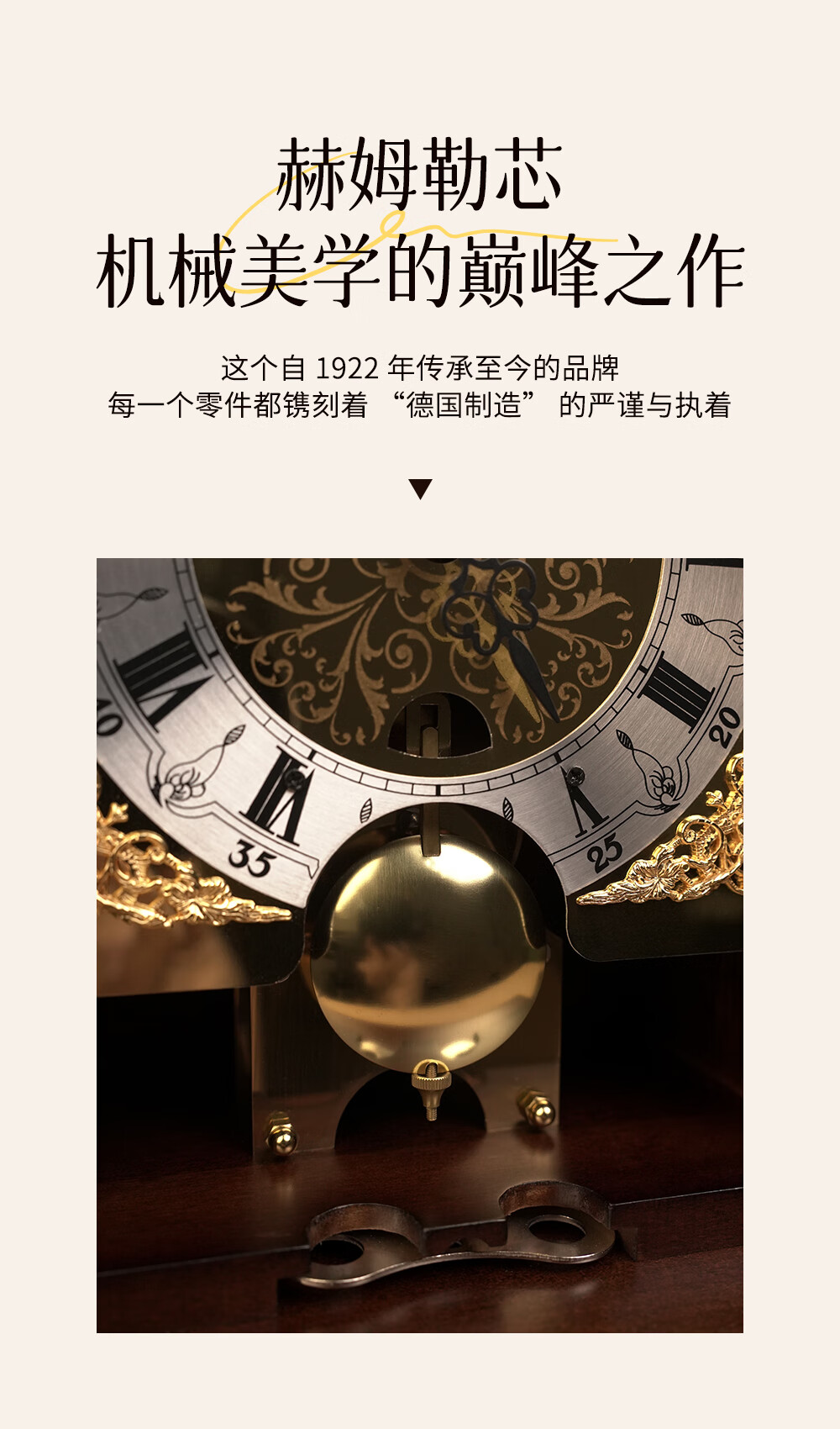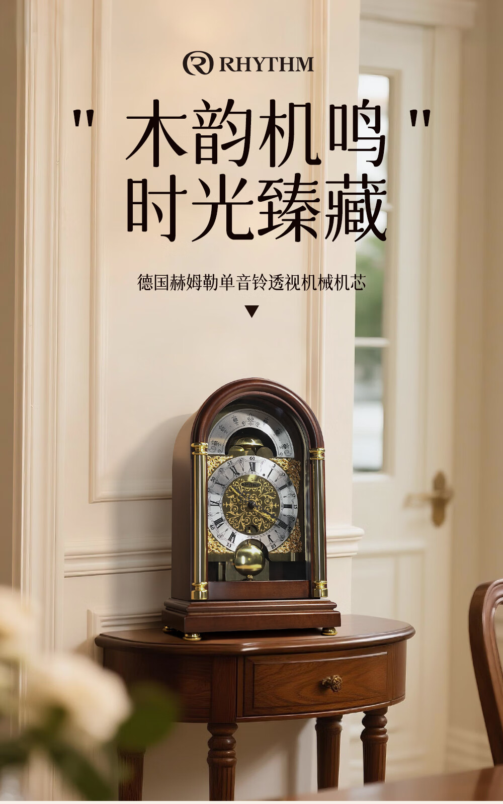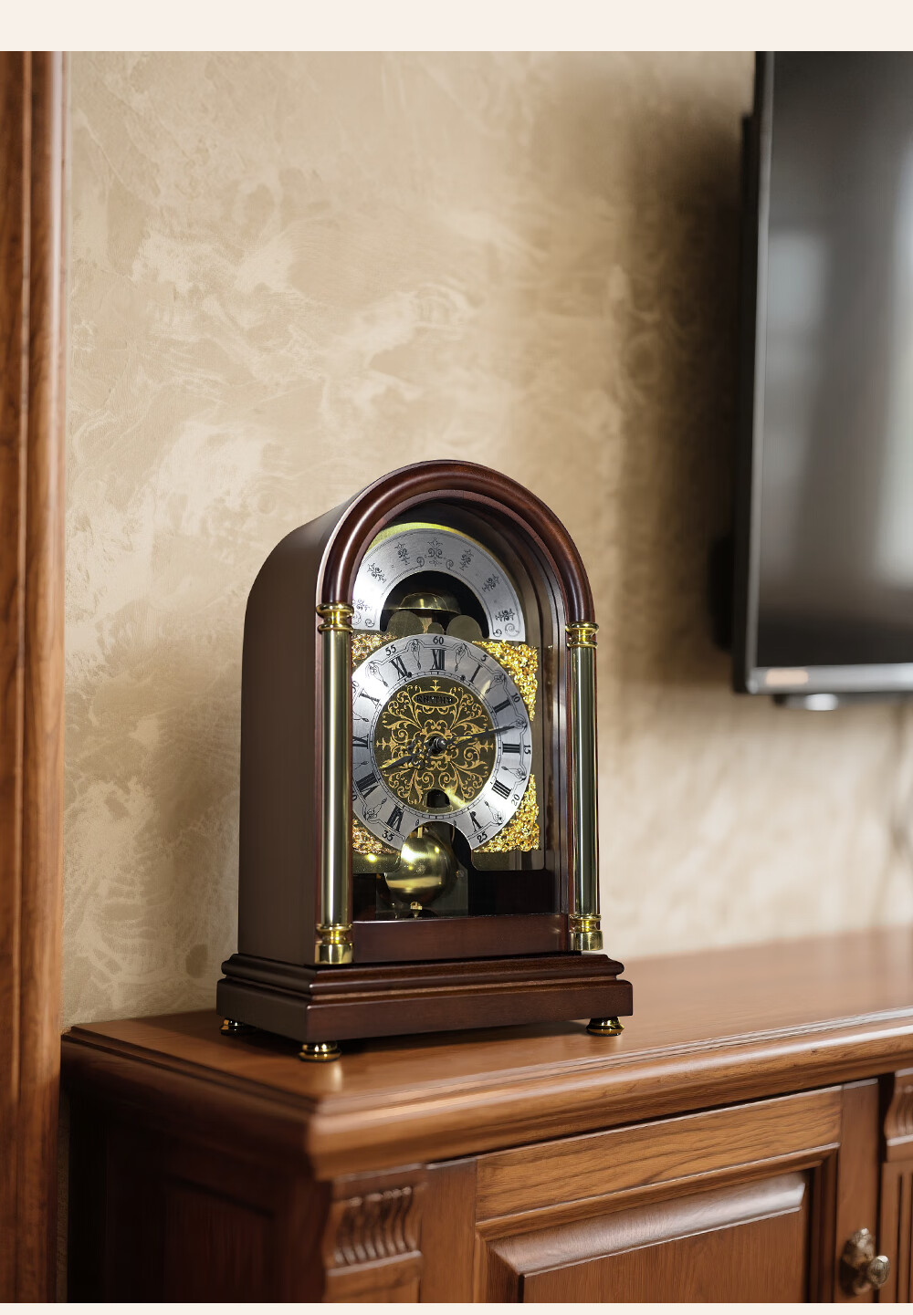 Lisheng German imported mechanical movement desk clock solid wood nave winding high-end new Chinese style atmospheric hourly time chime bell solid wood antique color 14*20*32.8cm