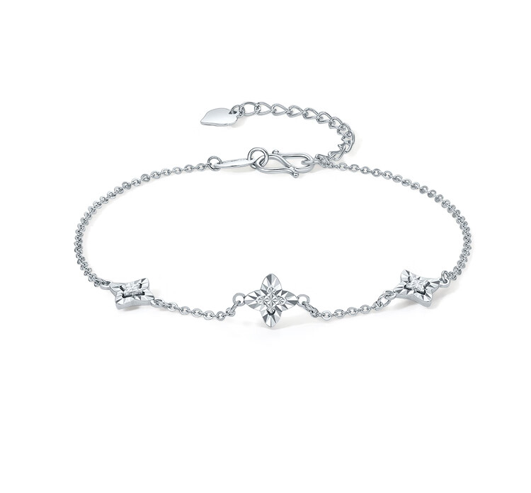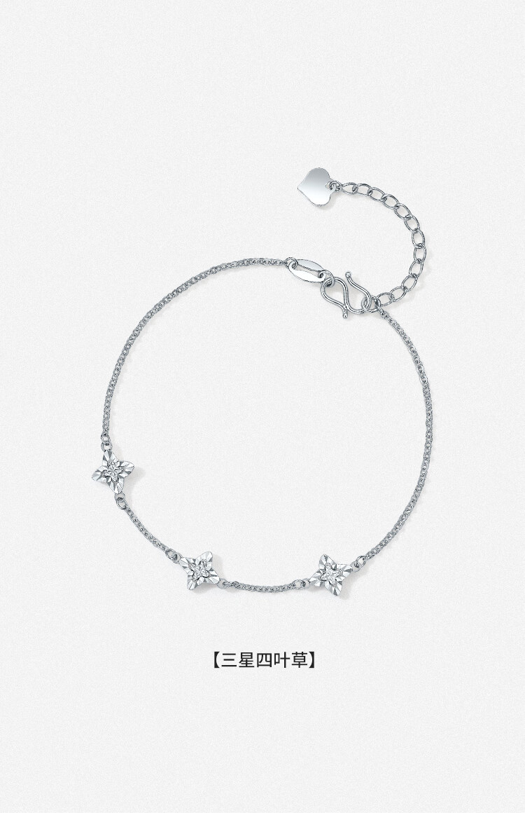 Saturday Fortune (ZLF) PT950 Platinum Bracelet Women's Car Flower Shiny Simple Samsung Four-Leaf Clover Hand Decor Holiday Gift 16+3cm-2.95g