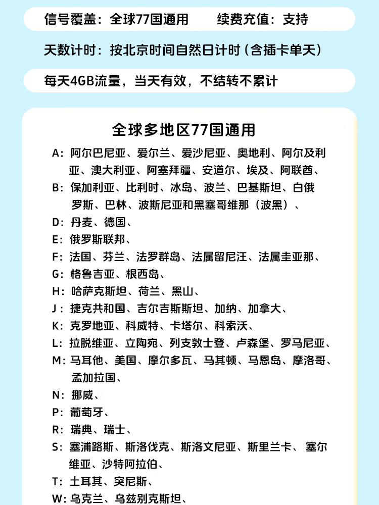 Next day delivery Annual card Europe and Africa 77 countries travel mobile phone card data card Internet card phone card recharge Unlimited high speed every day Valid for 35 days - Rechargeable