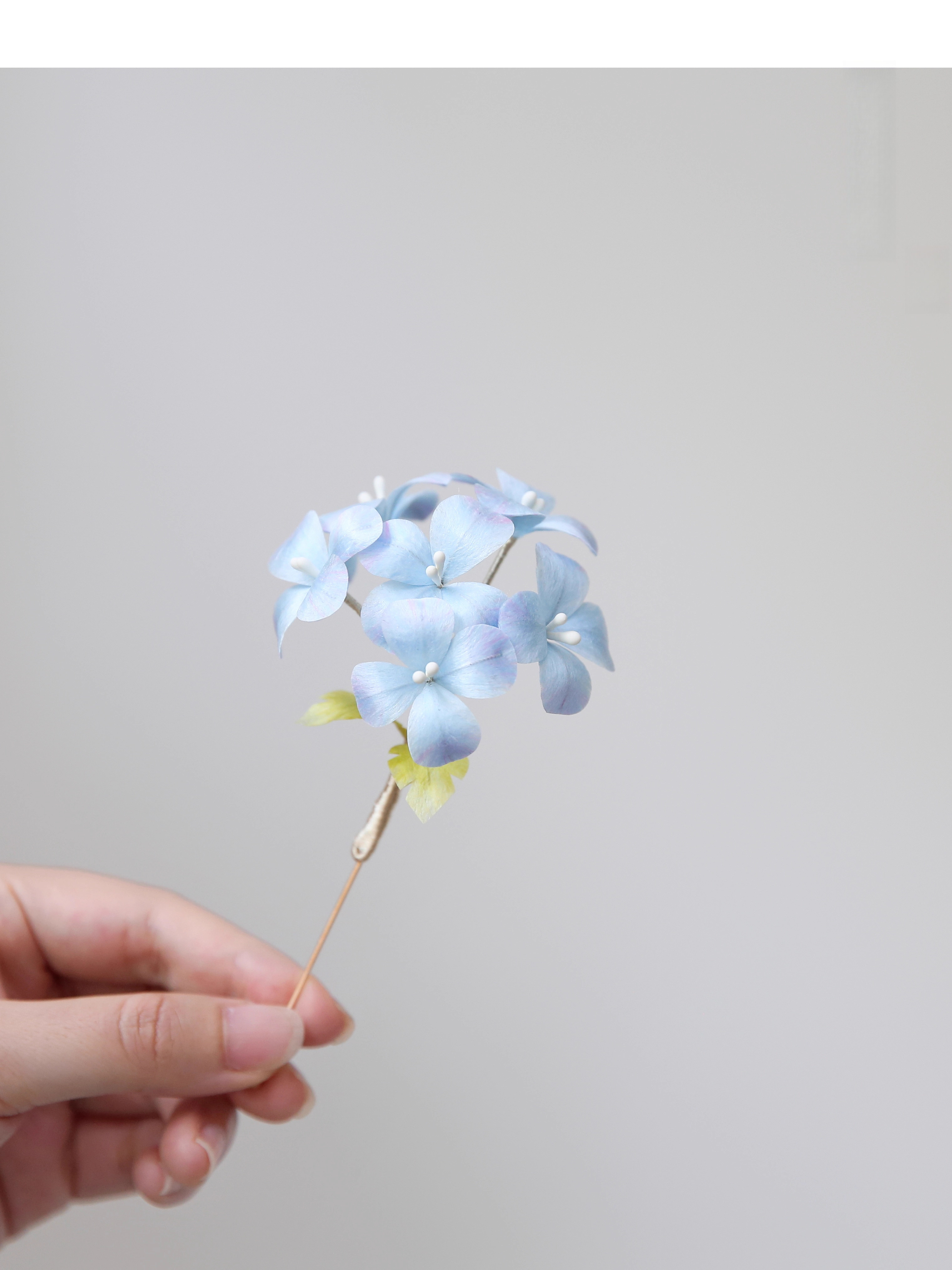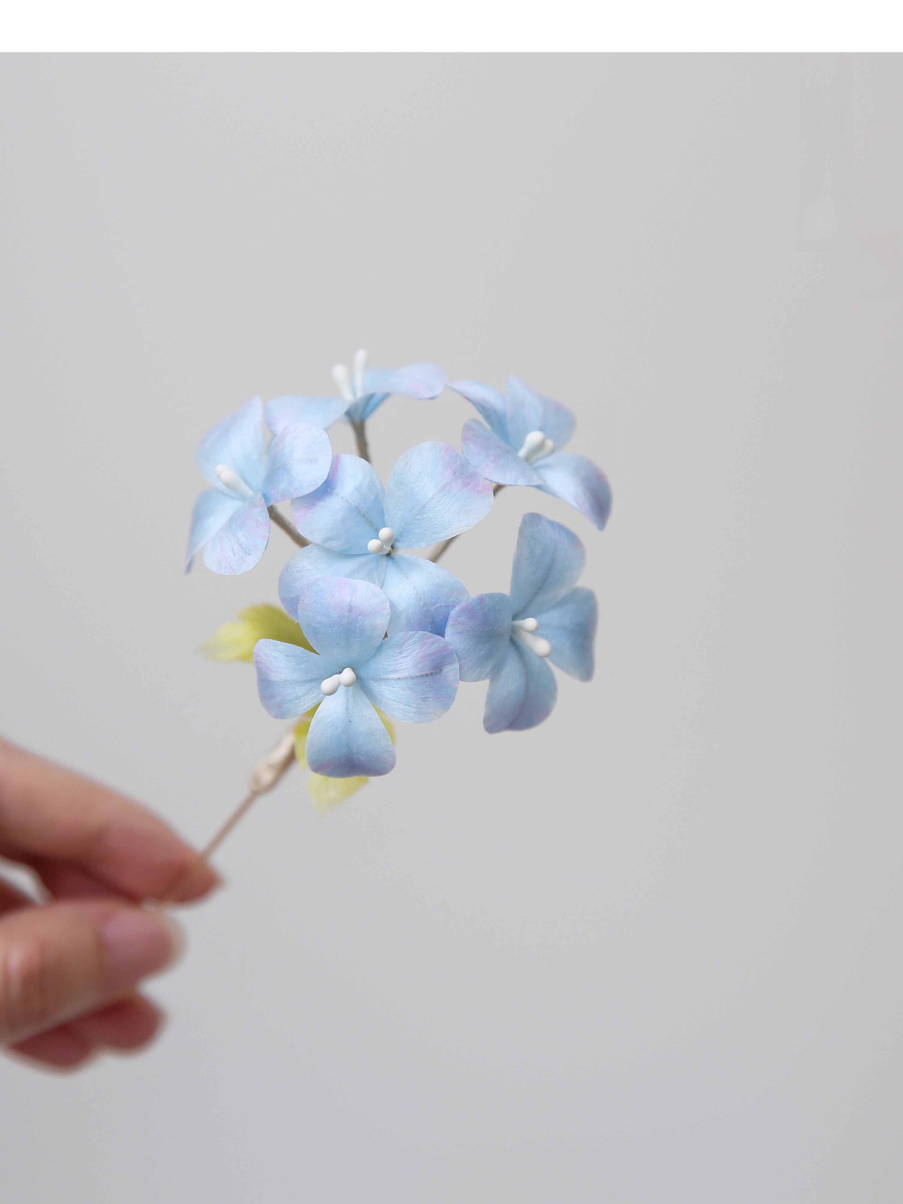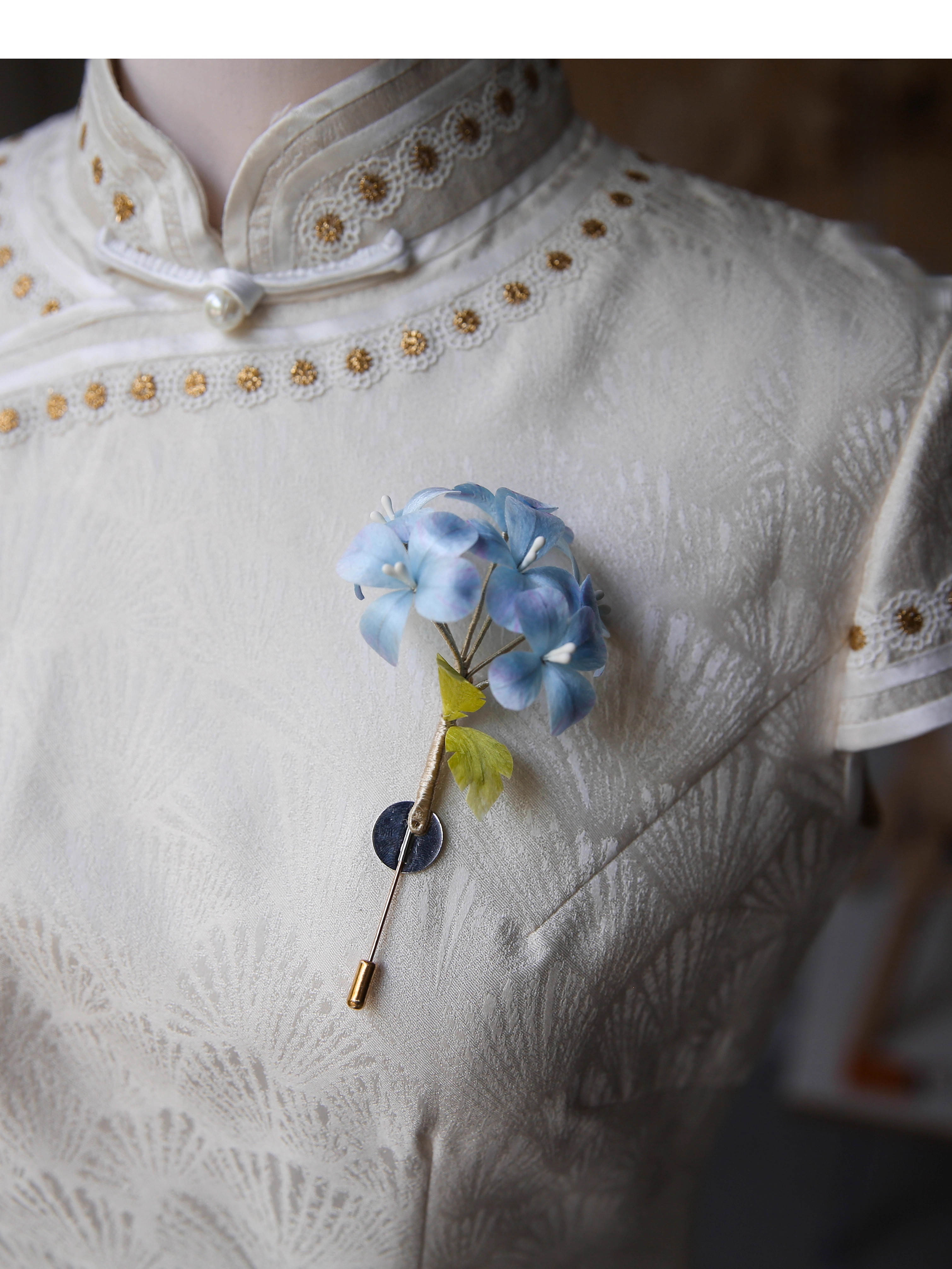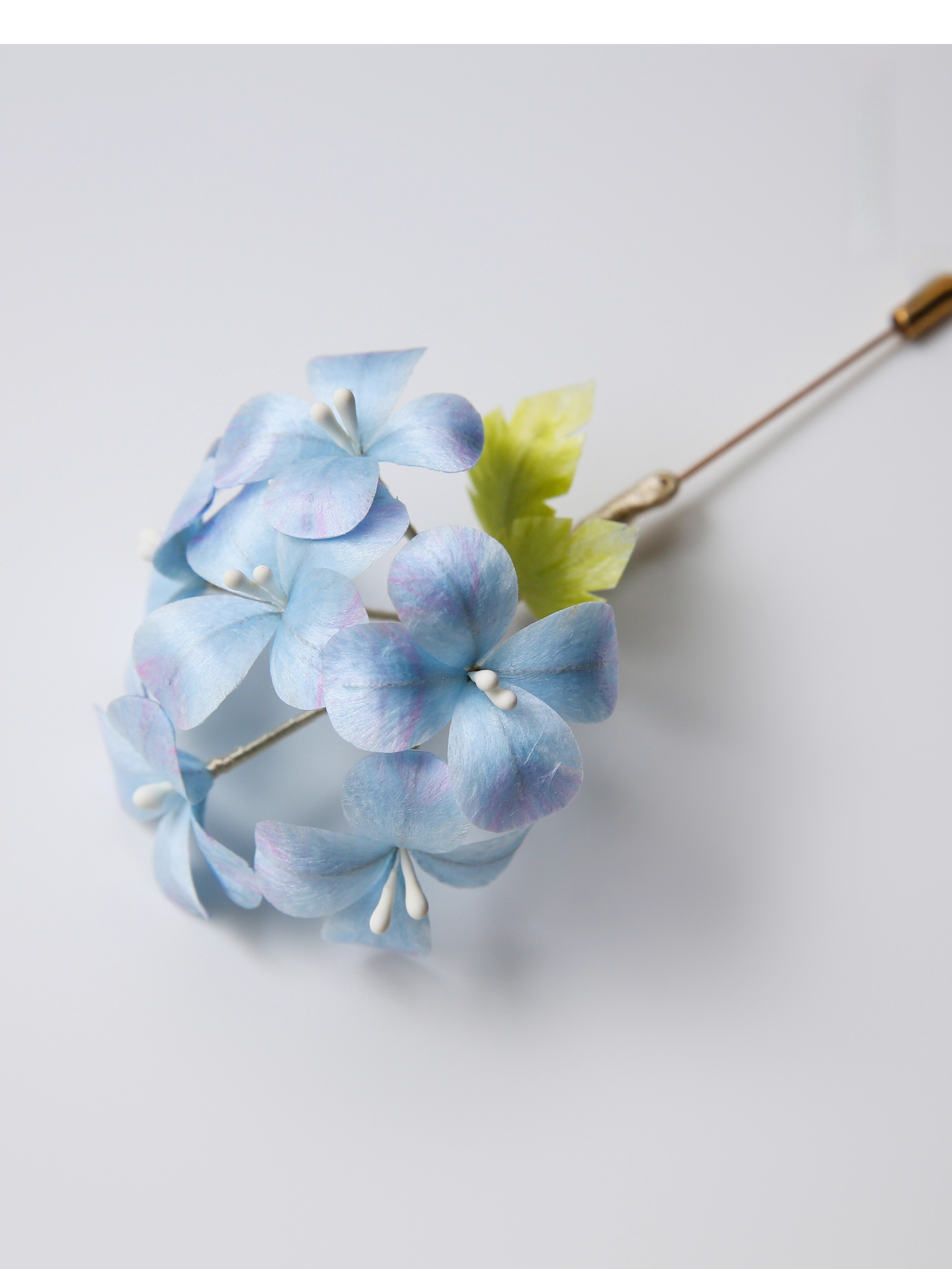 Xiaomi Xingjiangnan picked flowers intangible cultural heritage hand-made velvet blue hydrangea brooch hairpin U hairpin Hanfu cheongsam accessories hydrangea brooch ready stock