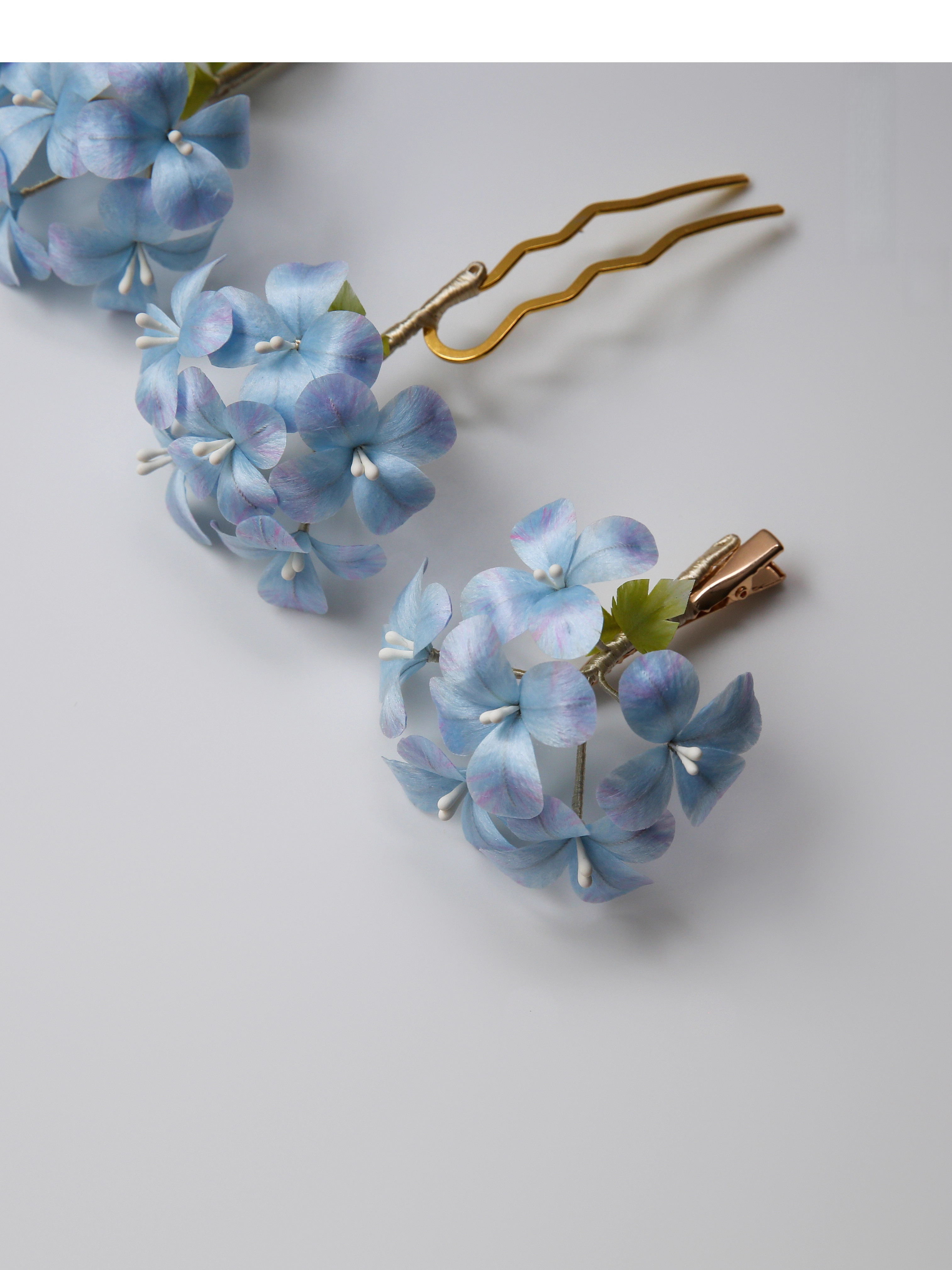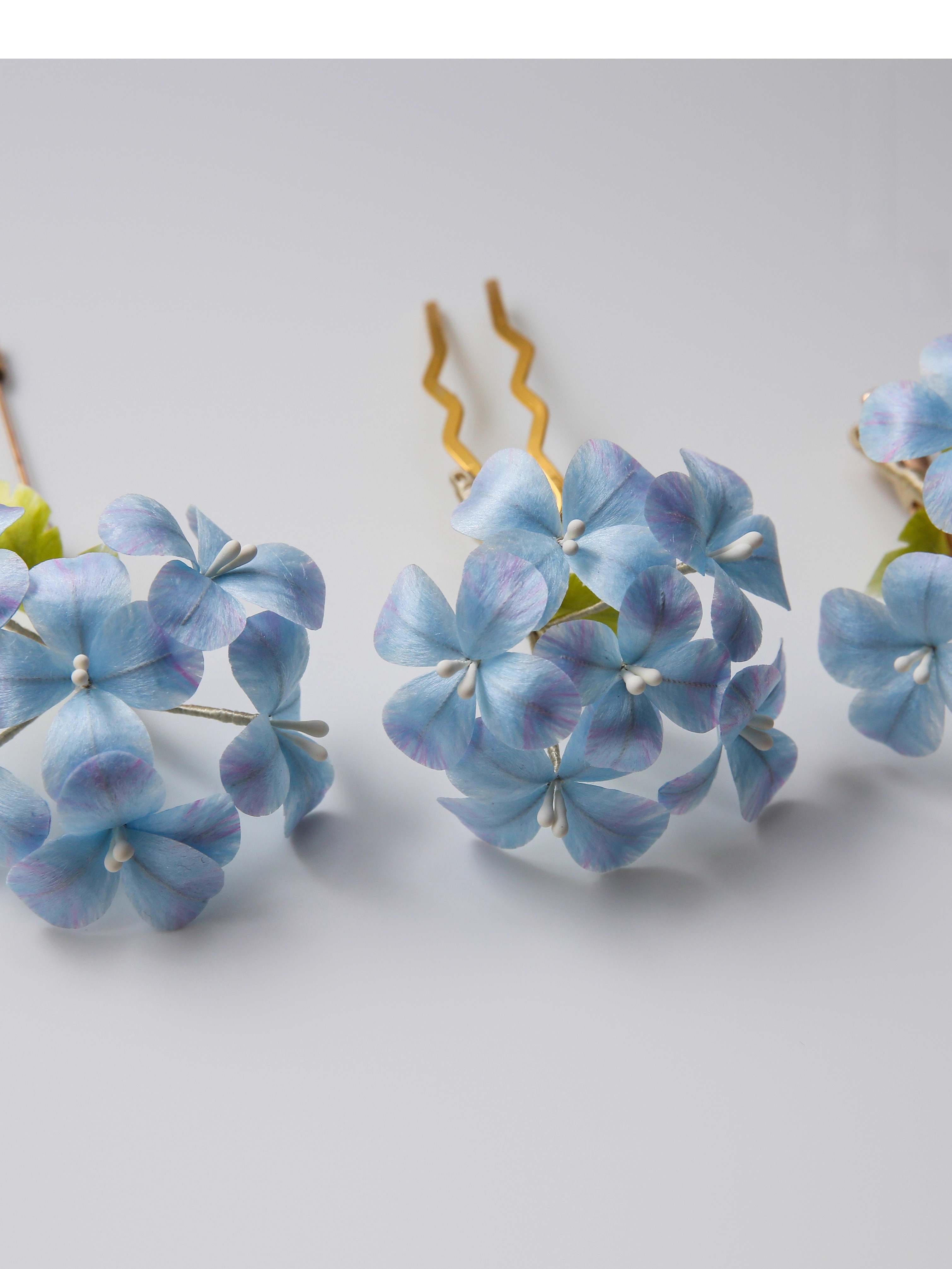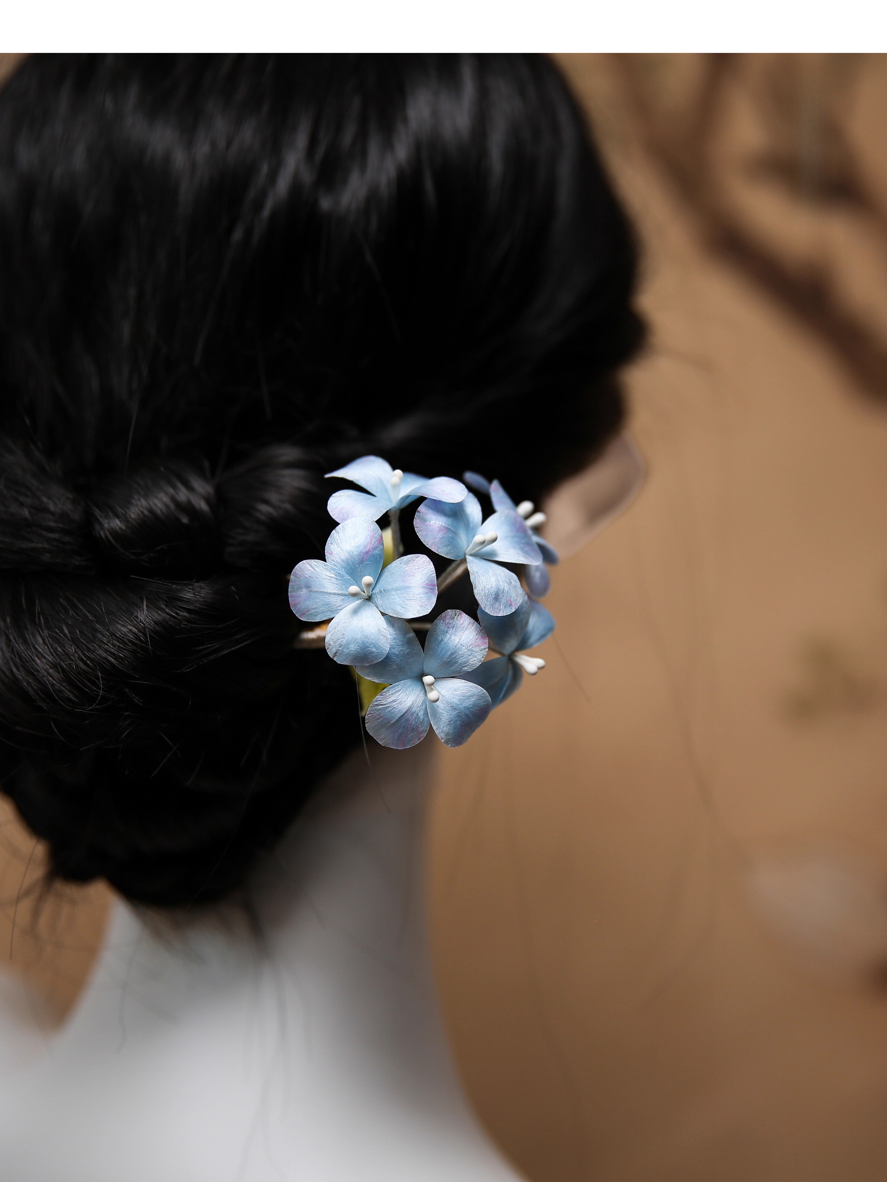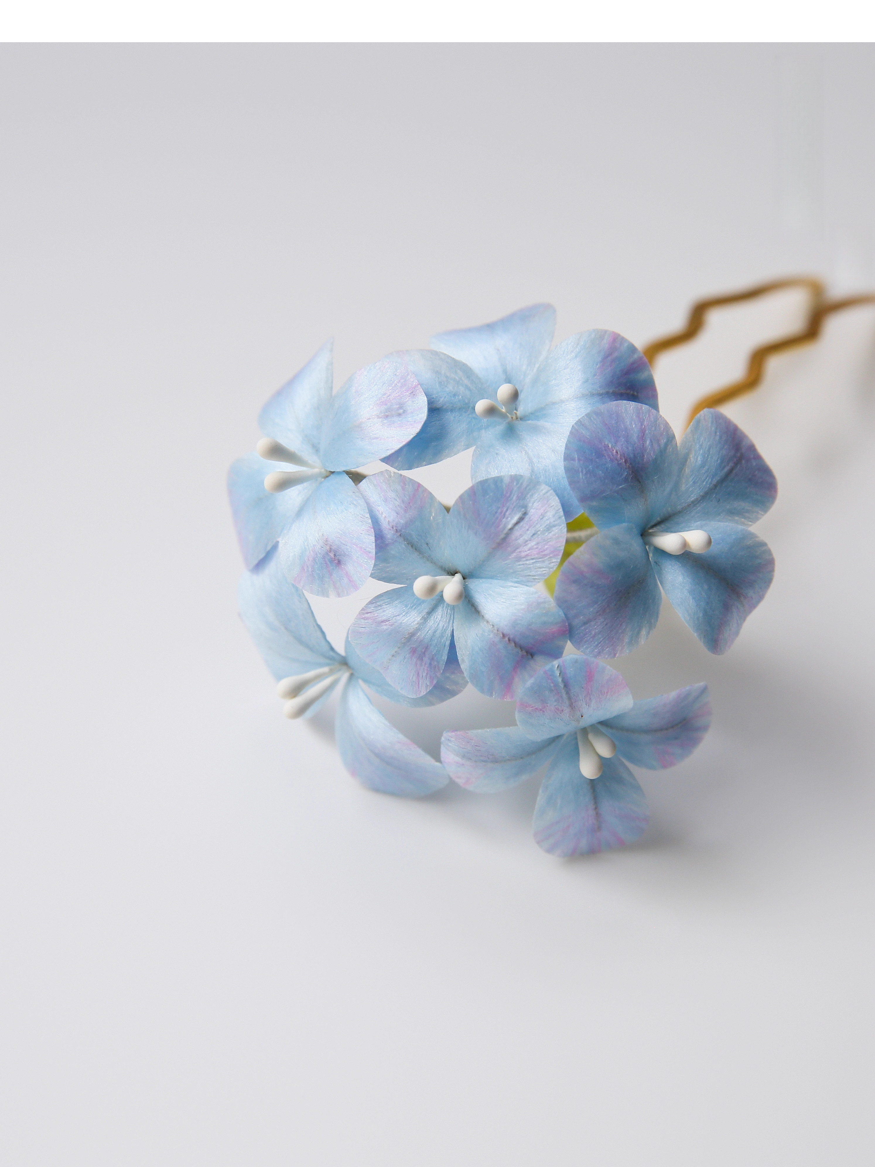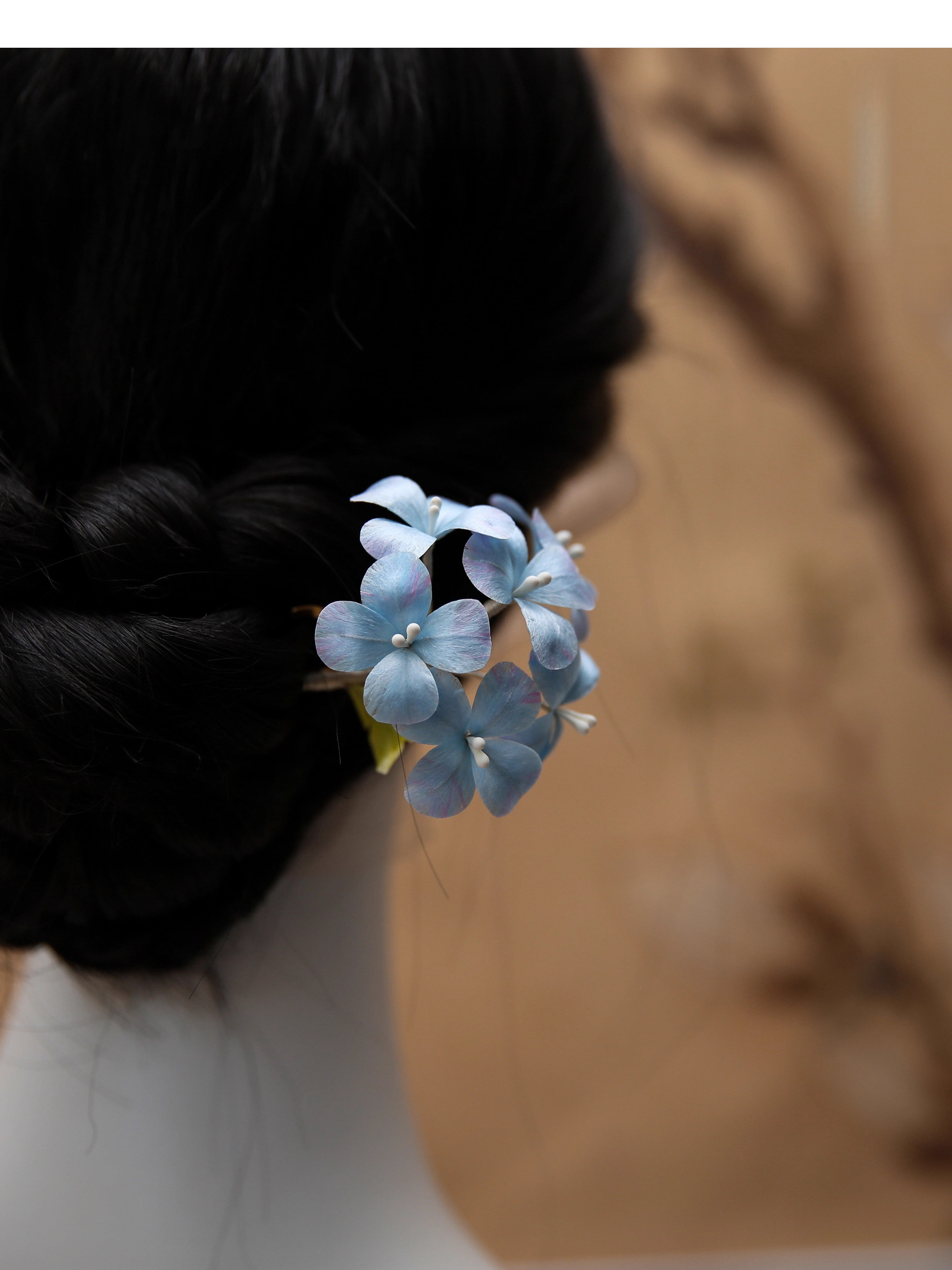 Xiaomi Xingjiangnan picked flowers intangible cultural heritage hand-made velvet blue hydrangea brooch hairpin U hairpin Hanfu cheongsam accessories hydrangea brooch ready stock