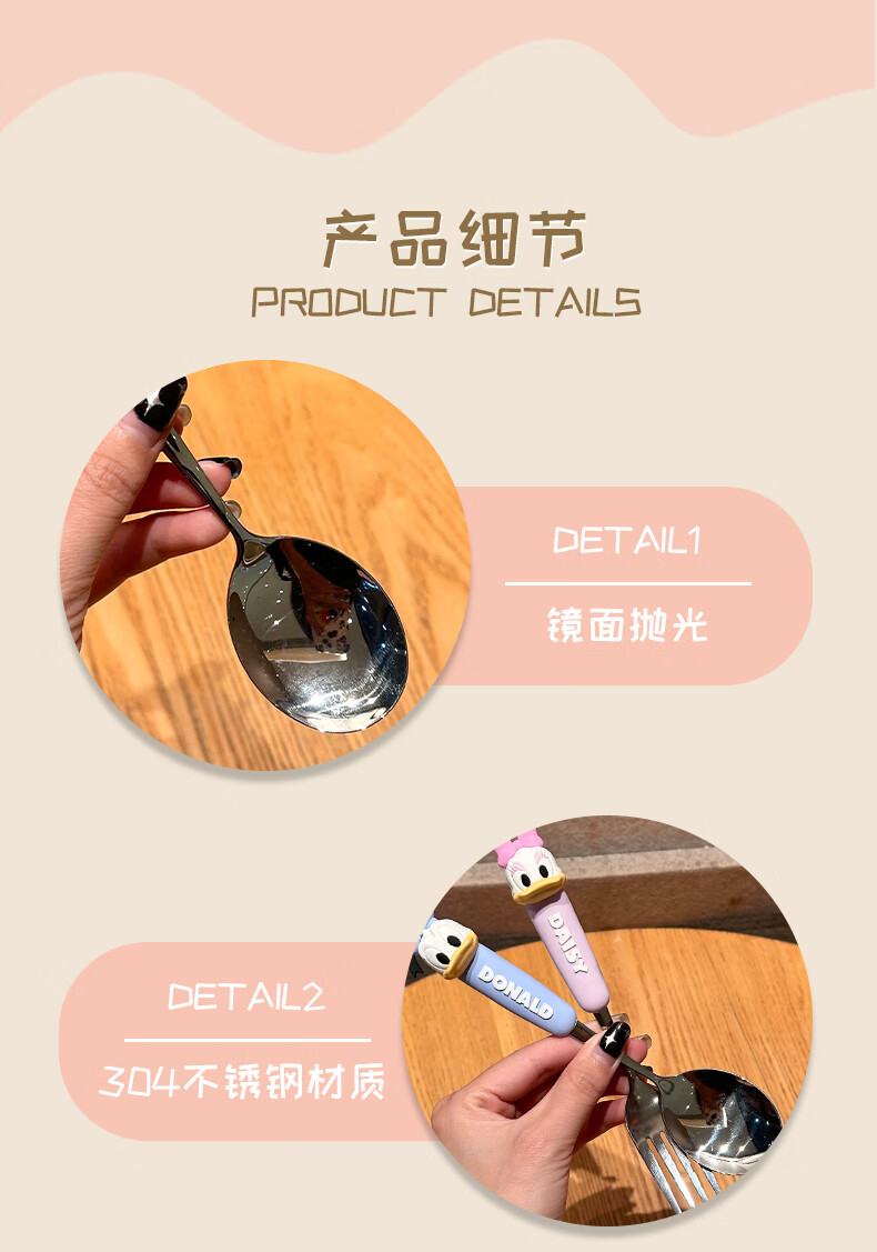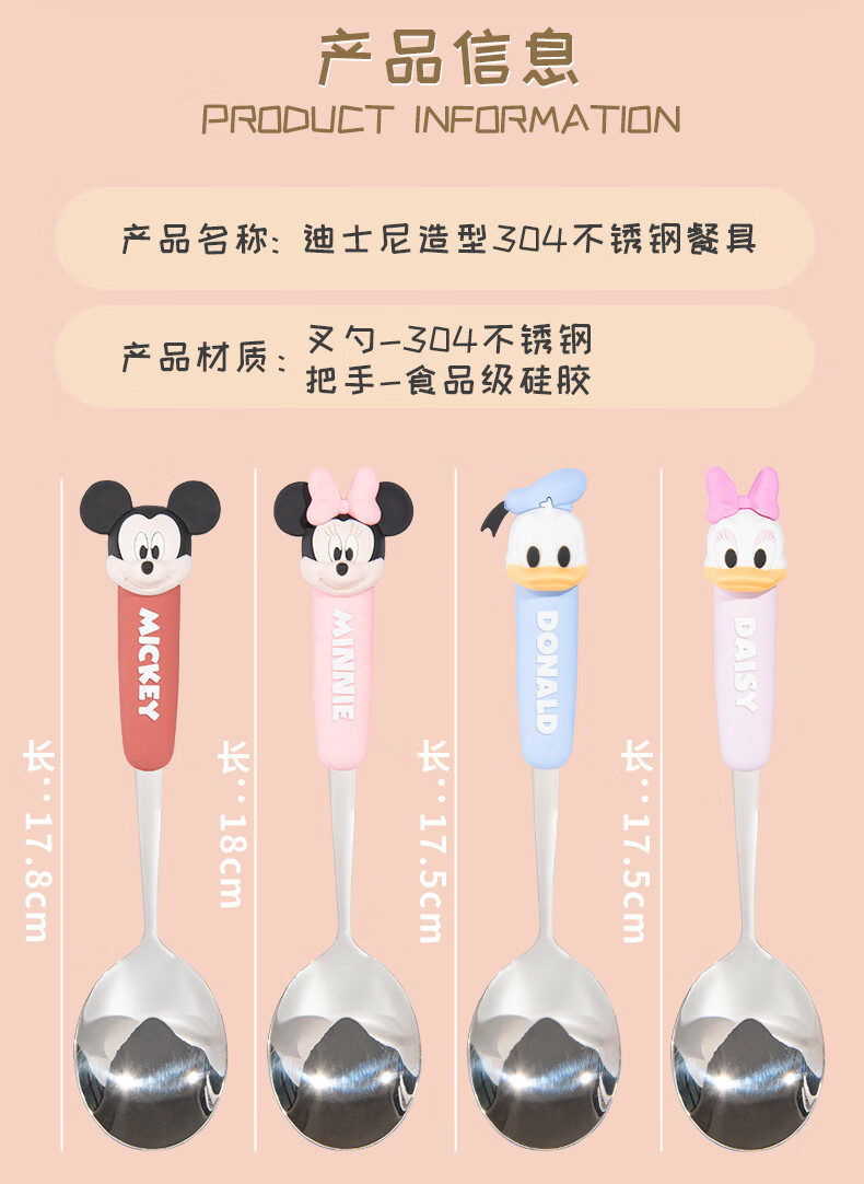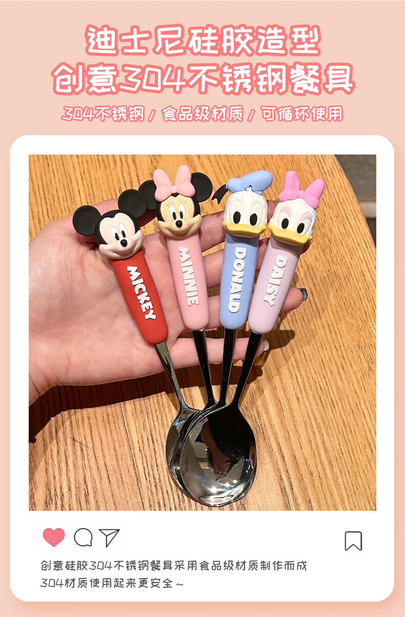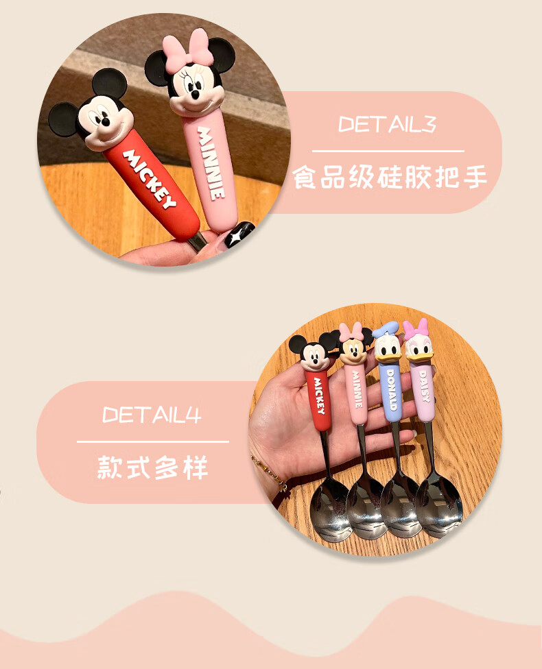 Genuine silicone spoon Mickey Minnie Donald Duck cute cartoon children 304 stainless steel tableware Minnie stainless steel (shaped spoon)