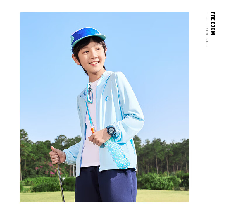 Hongxing Erke children's clothing children's sun protection clothing summer new style parent-child clothing for boys and girls windproof and UV protection upf80+ feather blue 120