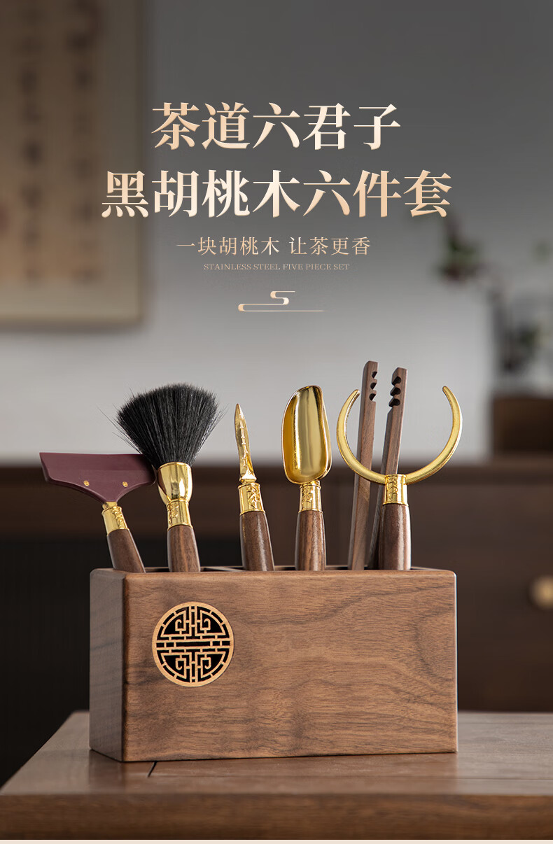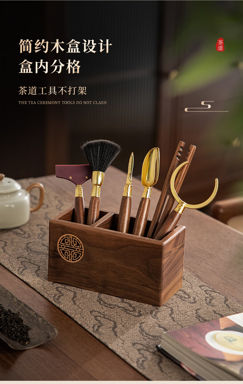 Yipot Tea Walnut Wood Tea Ceremony Six Gentlemen Set High-end Light Luxury Kung Fu Tea Set Accessories Home Tea Table Tea Table Tea Making Tools Tea Bucket Not Included Walnut Wood Set Six Gentlemen