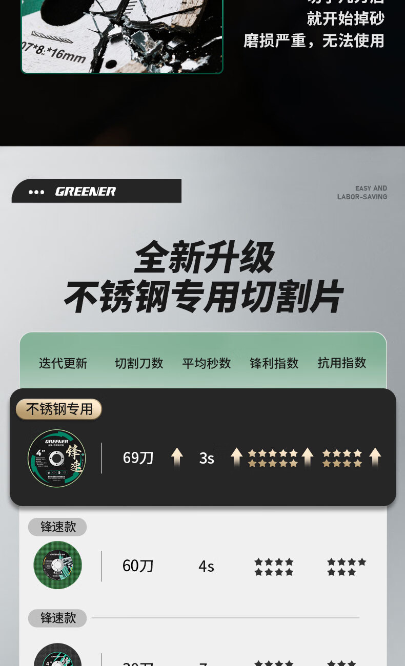 GREENER angle grinder cutting blade, metal stainless steel saw blade, grinding wheel blade, hand grinder grinding wheel polishing disc, stainless steel special cutting blade, 3 pieces