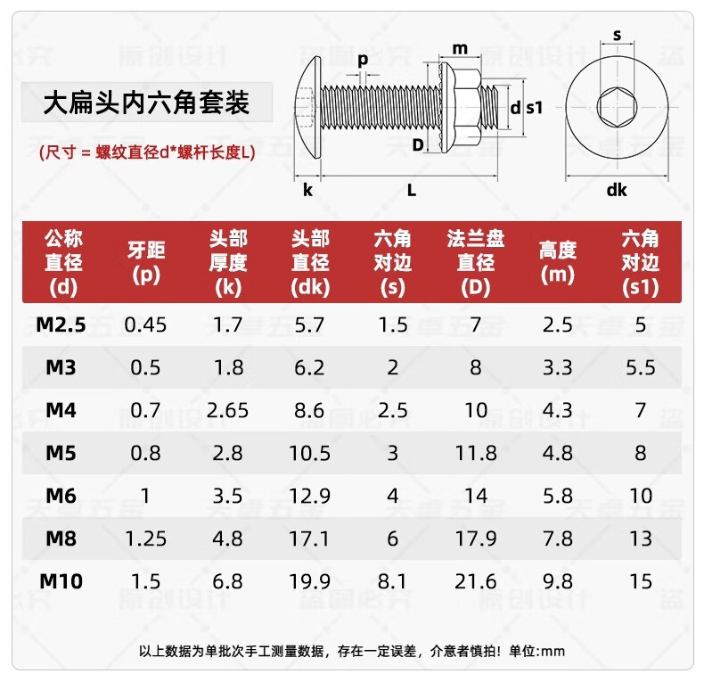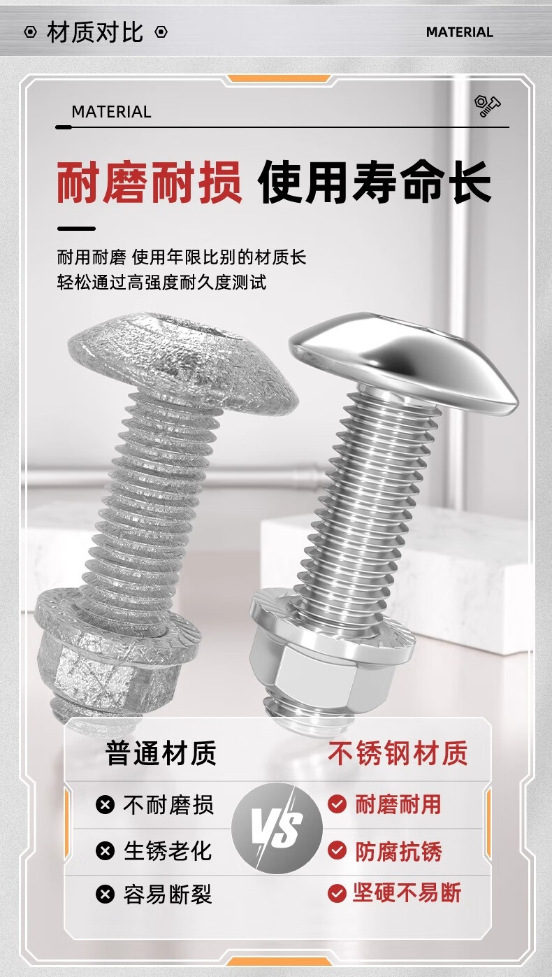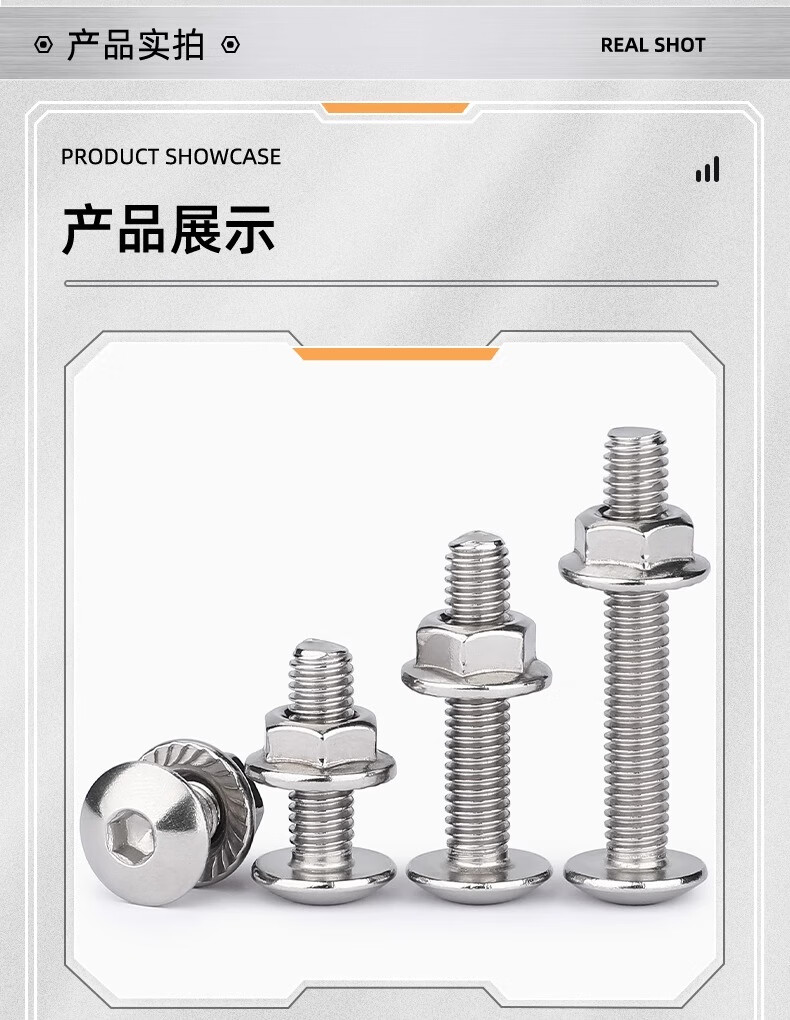 Fengji 304 stainless steel large umbrella head hexagonal screw large flat head screw mushroom round head bolt flange nut set M3*40 20 sets