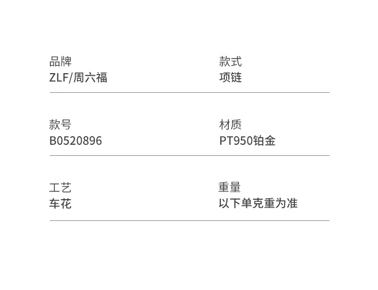 Saturday Fortune (ZLF) PT950 platinum necklace for men and women, versatile and simple neck accessories, 42cm-11.68g