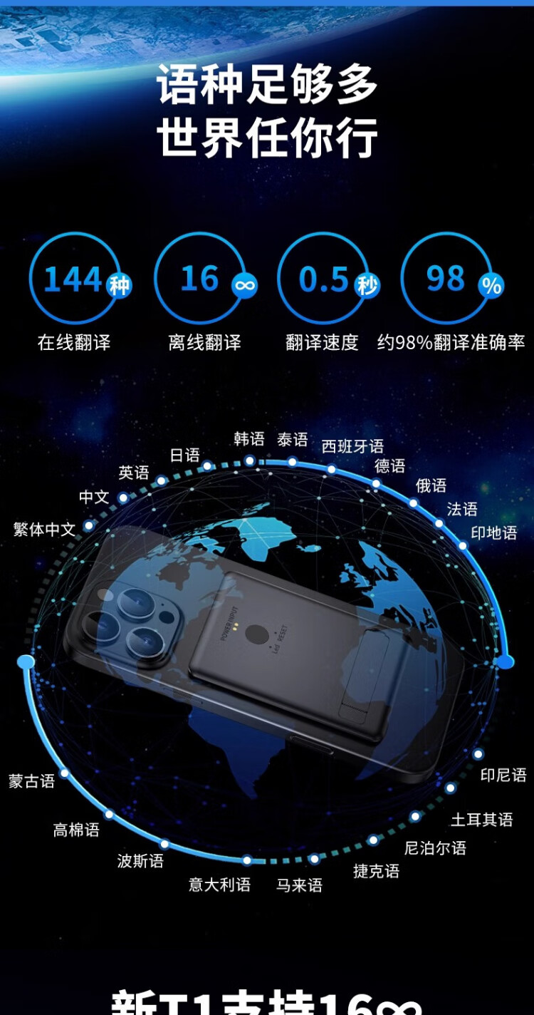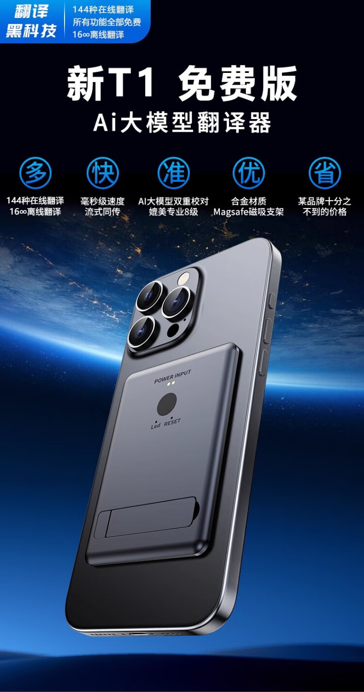 XVVMI AI magnetic translator iFlytek multi-lingual online real-time simultaneous interpretation for travel, study abroad, business, portable conversation artifact, intelligent offline photo and video translation AI magnetic translator, blockbuster new product, exclusive to JD.com