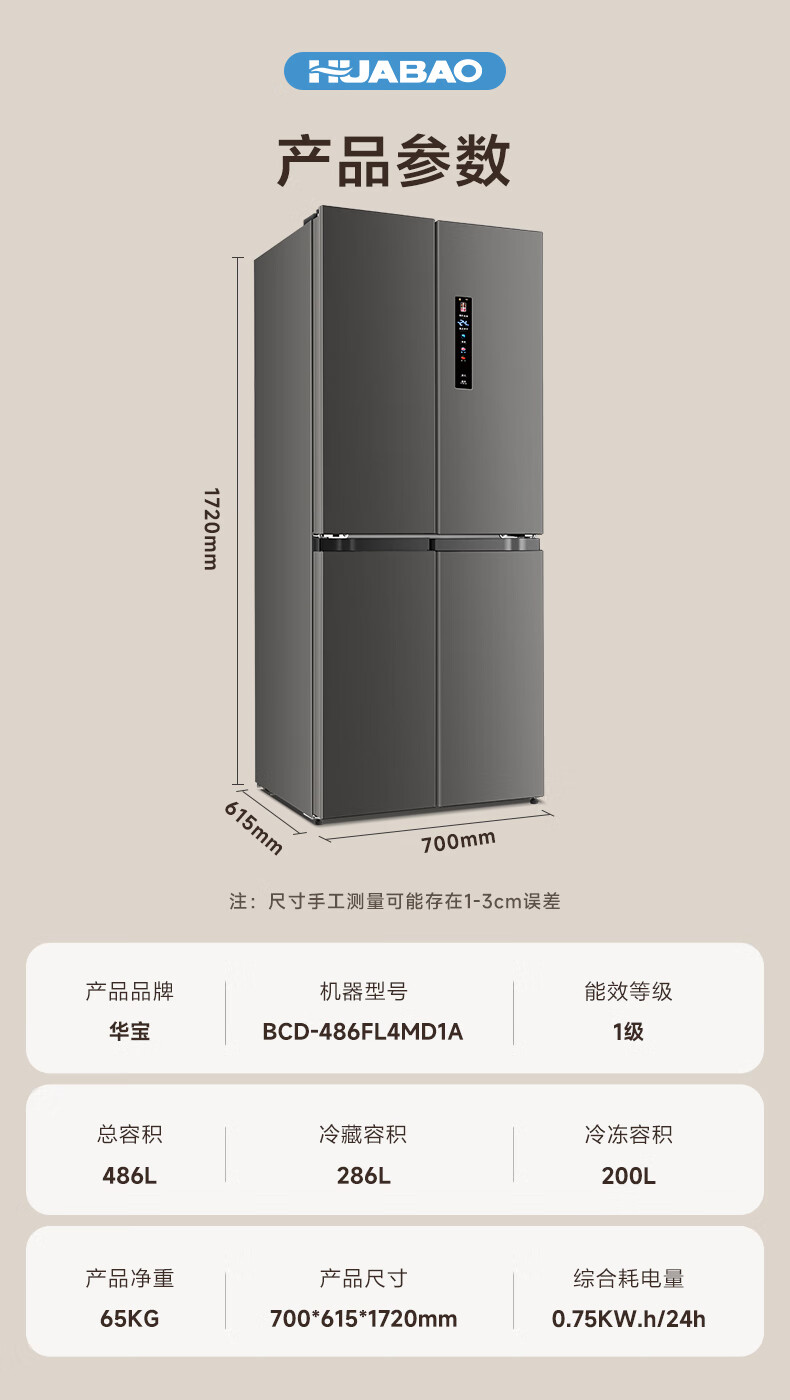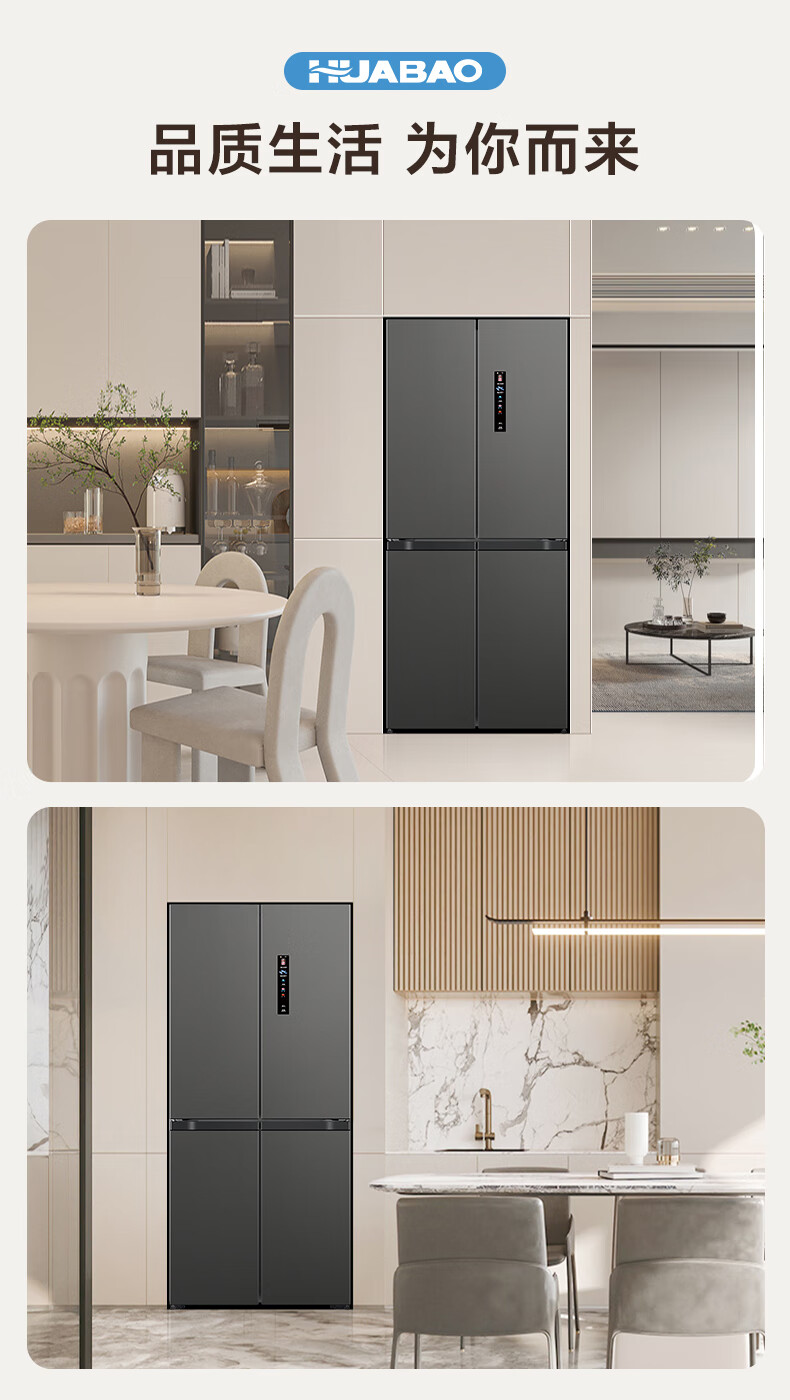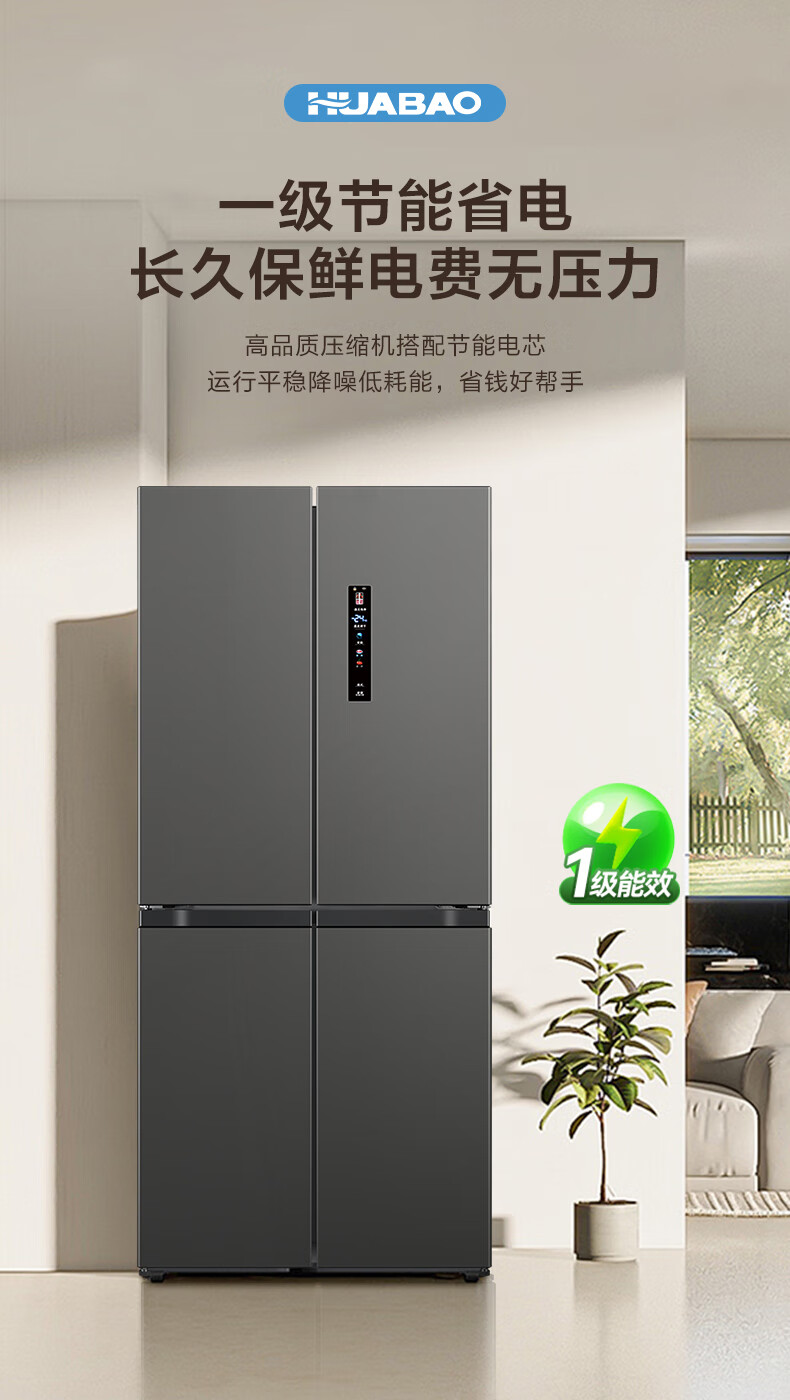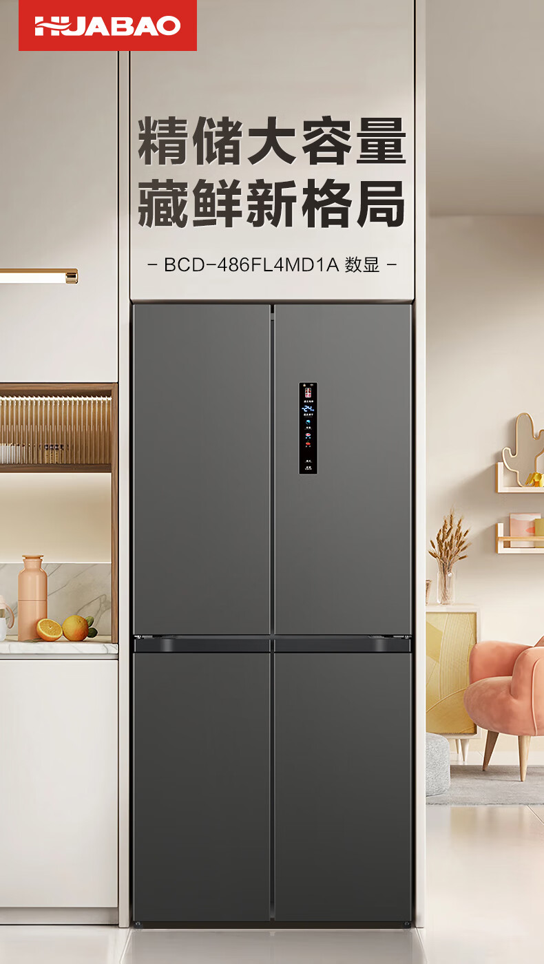 Huabao 486L air-cooled frost-free cross-door double-door four-door refrigerator household large-capacity first-class energy efficiency inverter ultra-thin built-in rental dormitory cross four-door 486L air-cooled type variable frequency air-cooled frost-free first-class energy efficiency