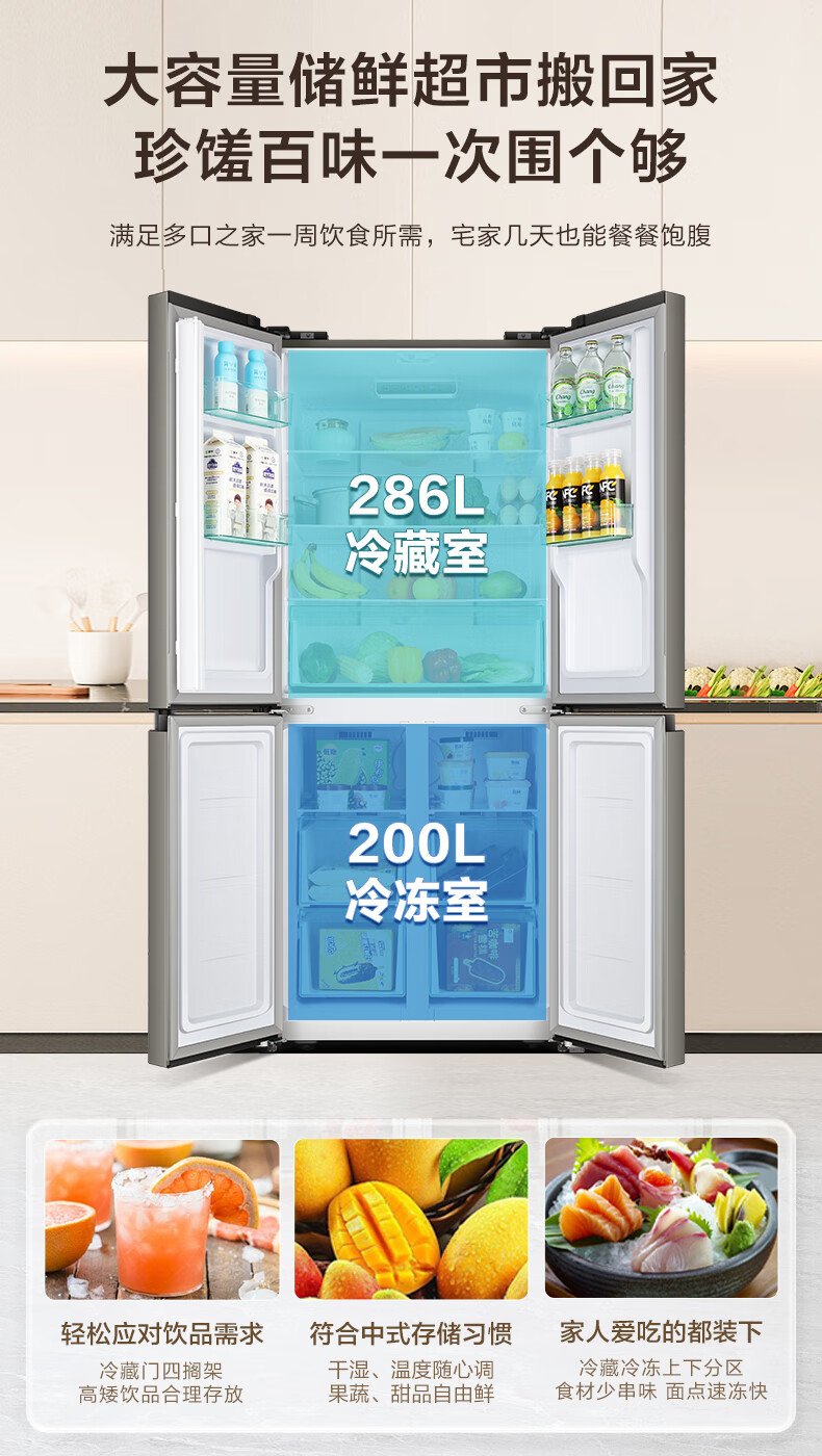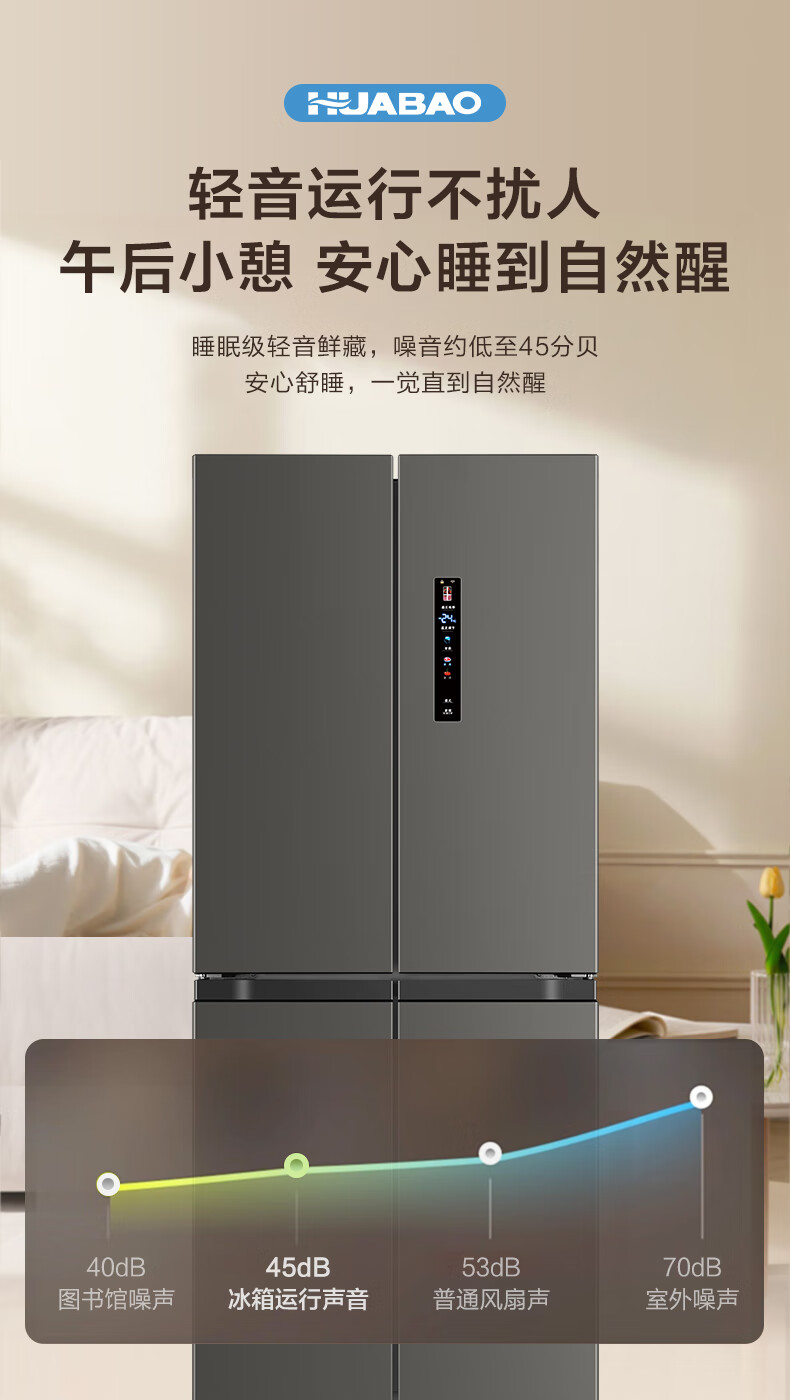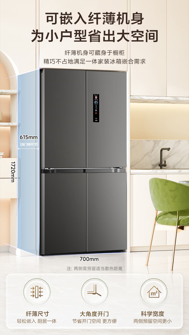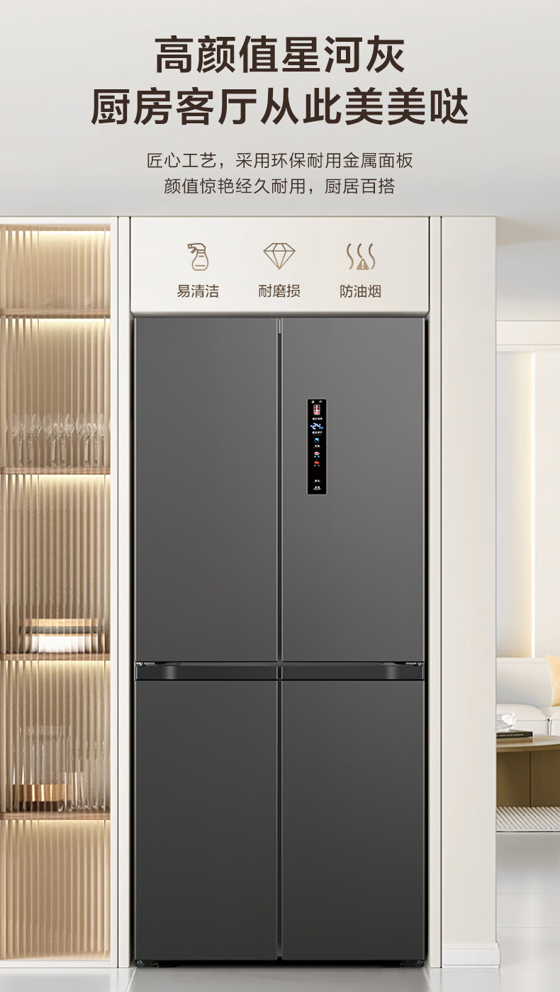 Huabao 486L air-cooled frost-free cross-door double-door four-door refrigerator household large-capacity first-class energy efficiency inverter ultra-thin built-in rental dormitory cross four-door 486L air-cooled type variable frequency air-cooled frost-free first-class energy efficiency