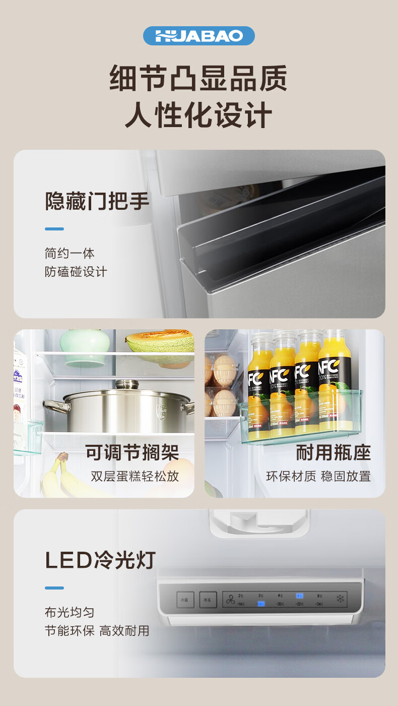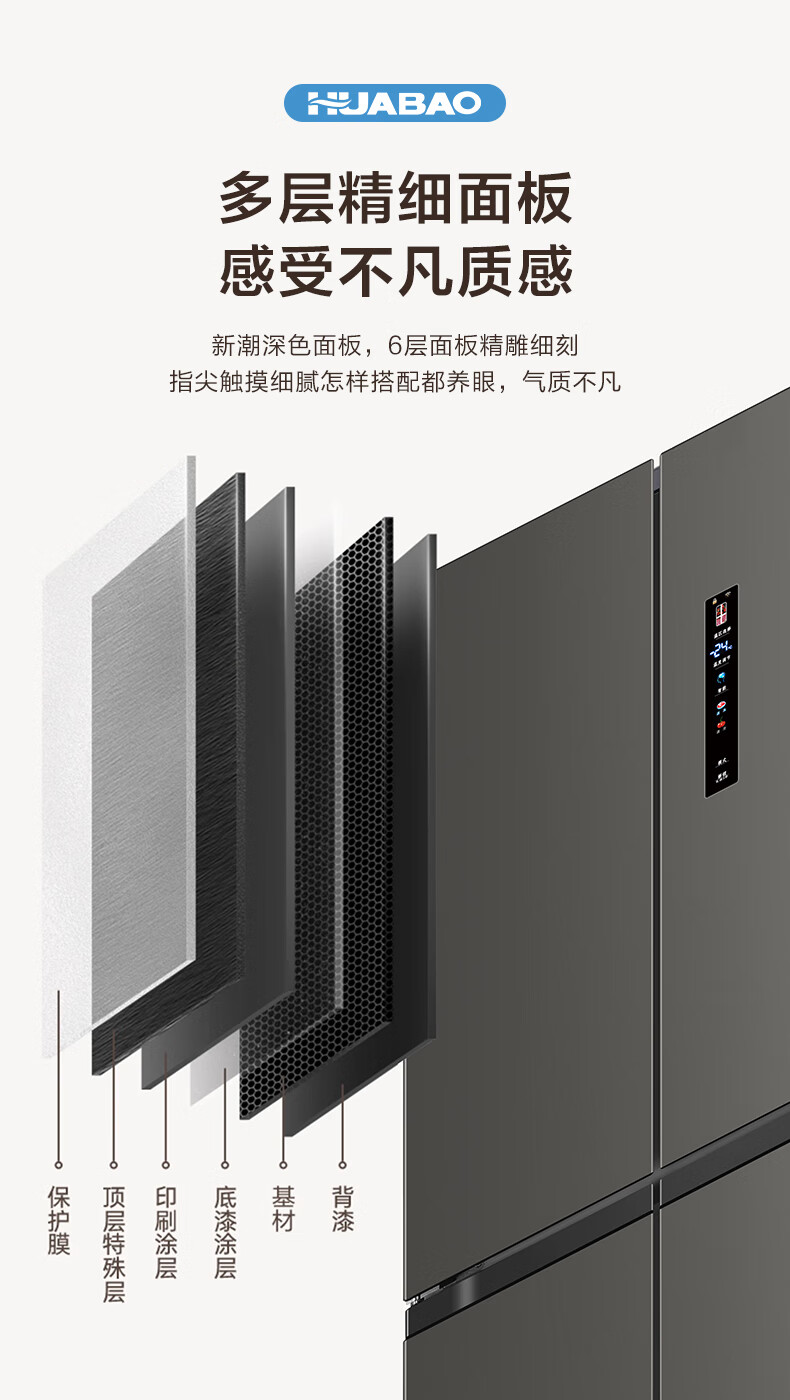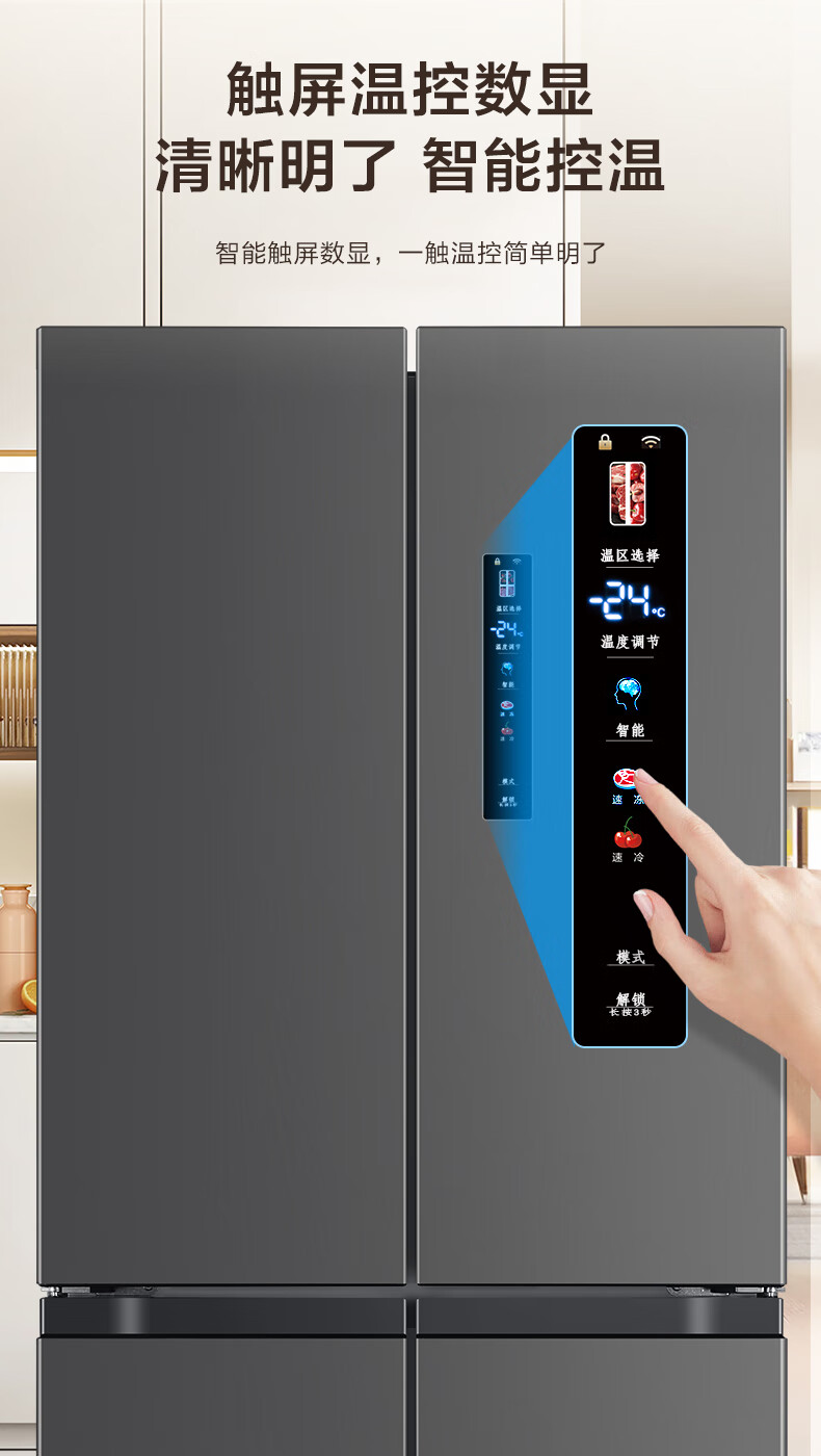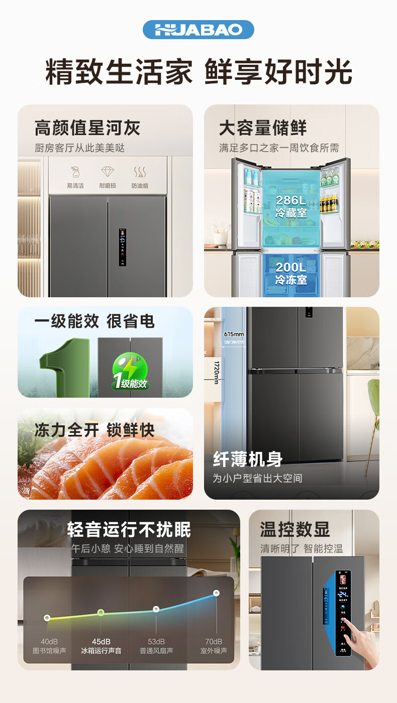 Huabao 486L air-cooled frost-free cross-door double-door four-door refrigerator household large-capacity first-class energy efficiency inverter ultra-thin built-in rental dormitory cross four-door 486L air-cooled type variable frequency air-cooled frost-free first-class energy efficiency