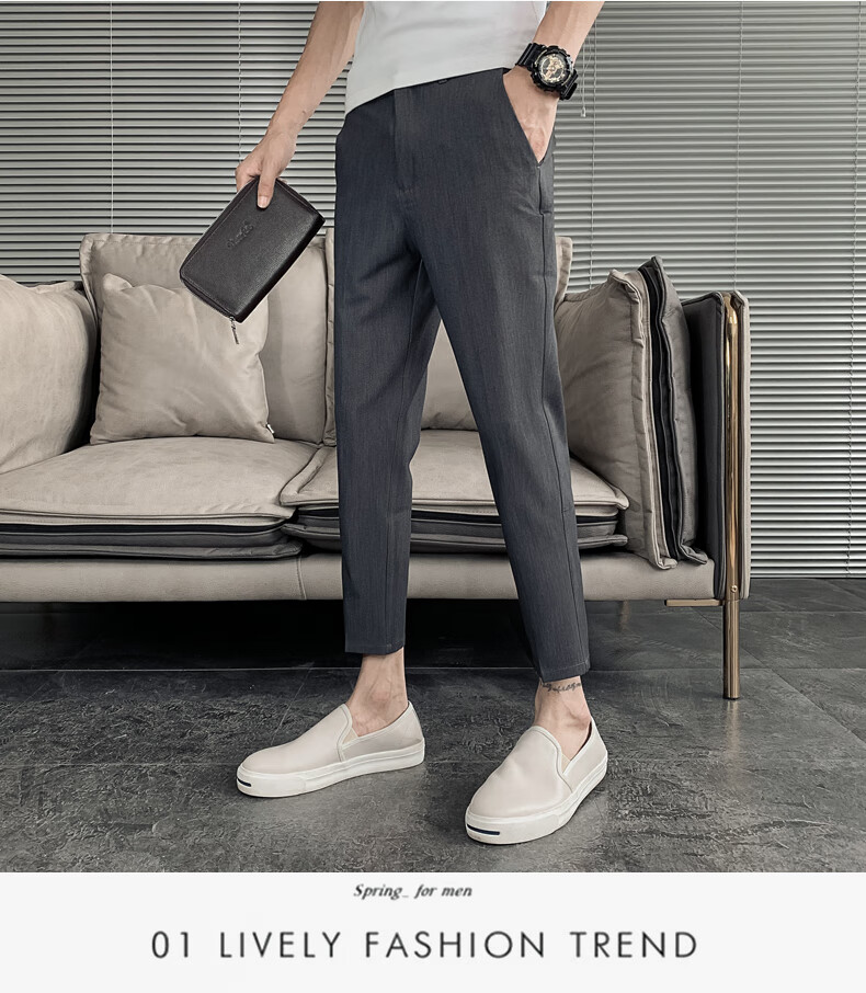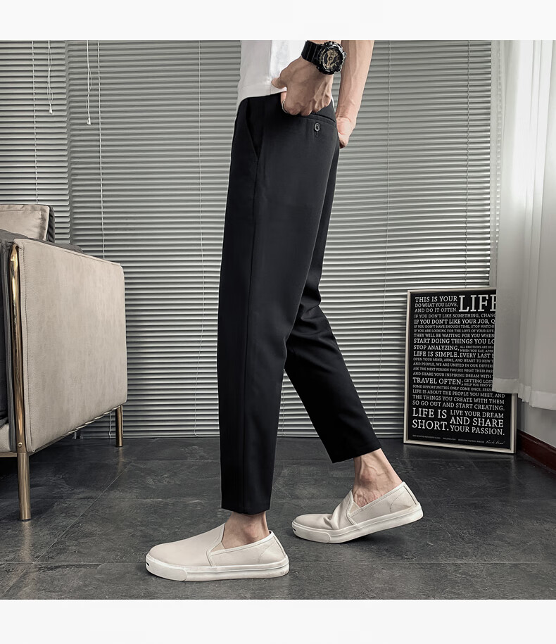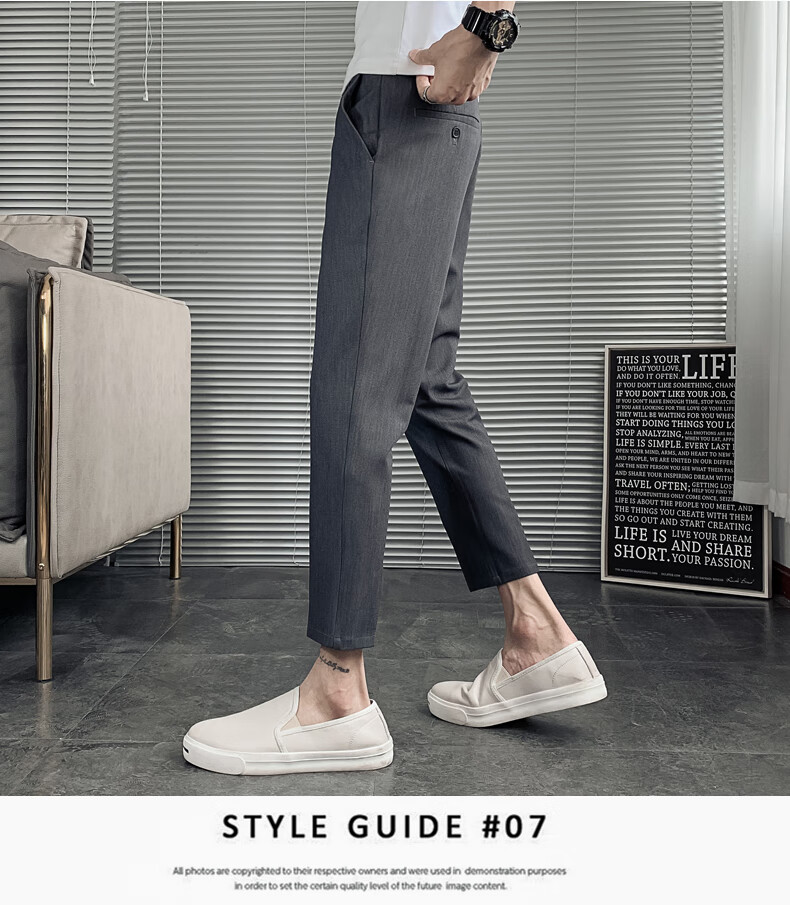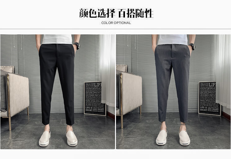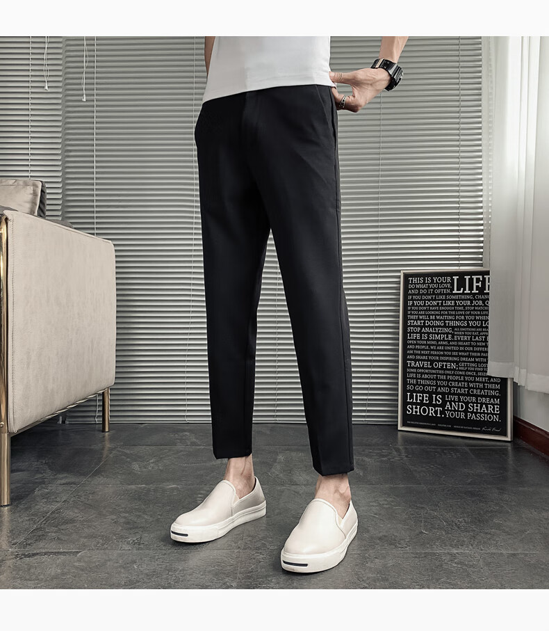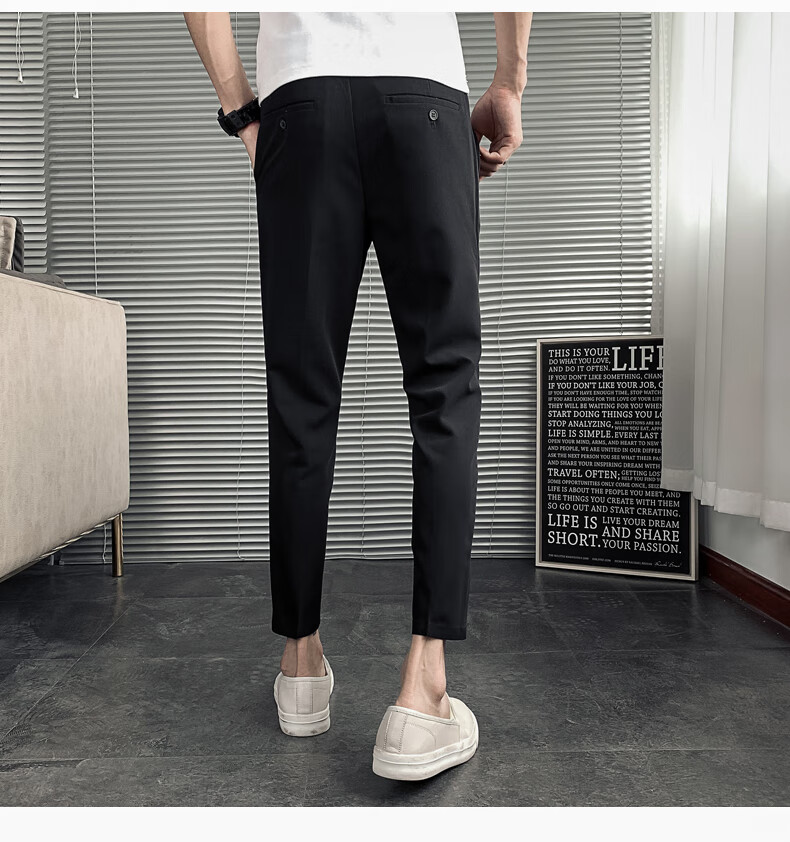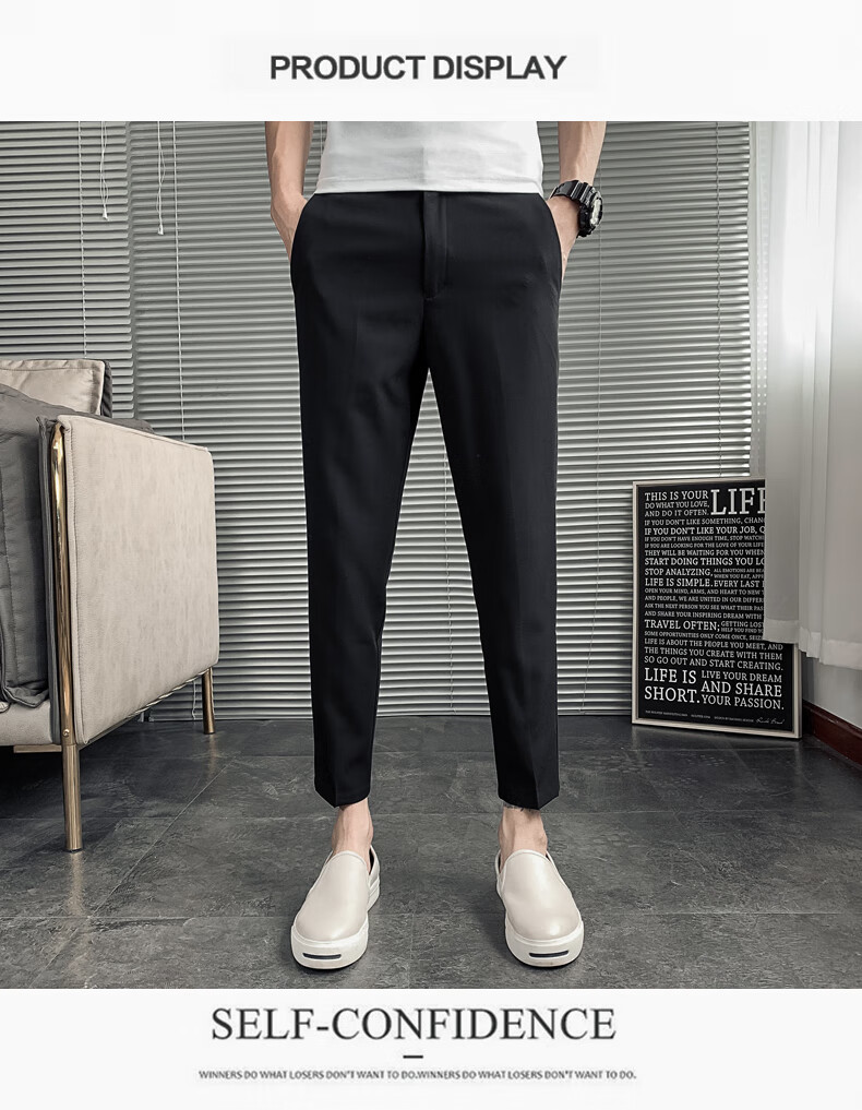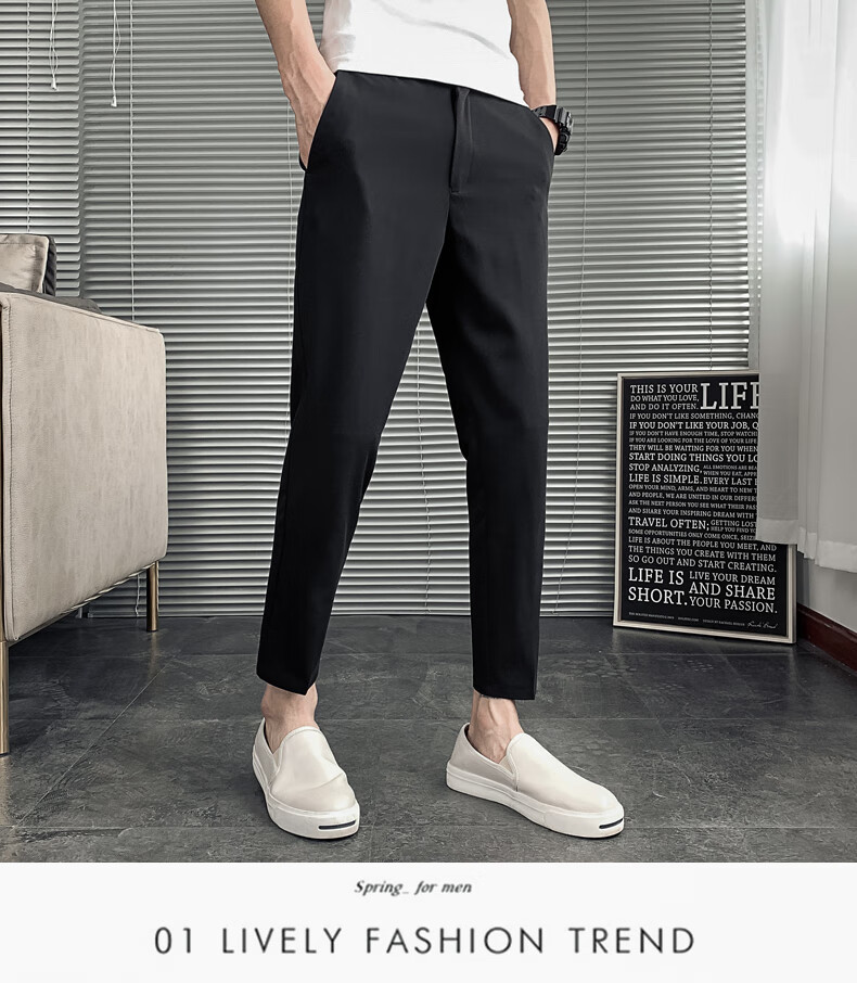 ROMON solid color casual trousers, versatile trousers for spring, autumn and winter, trendy handsome trousers, Korean style slim-fitting nine-point trousers for men, black trousers, plus* velvet version 27