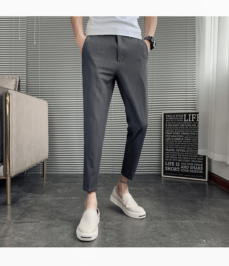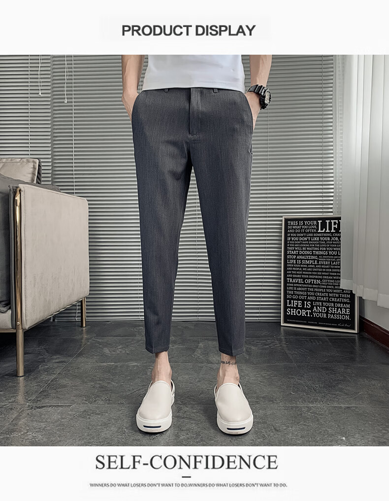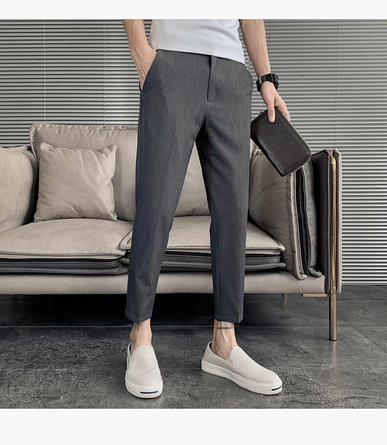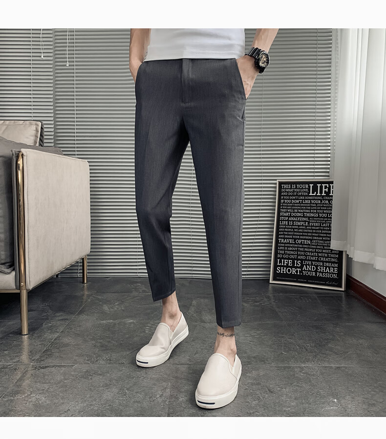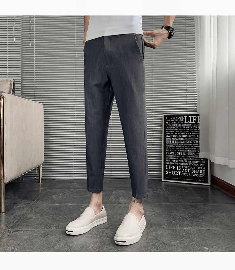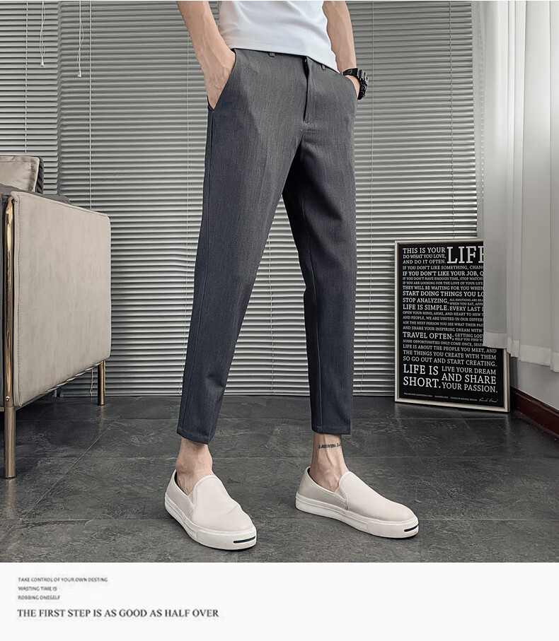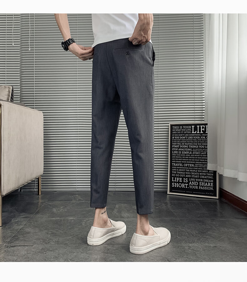 ROMON solid color casual trousers, versatile trousers for spring, autumn and winter, trendy handsome trousers, Korean style slim-fitting nine-point trousers for men, black trousers, plus* velvet version 27