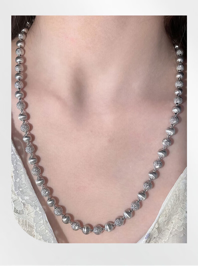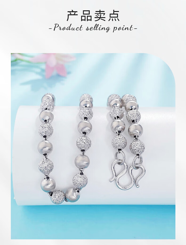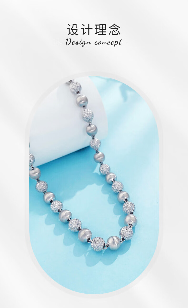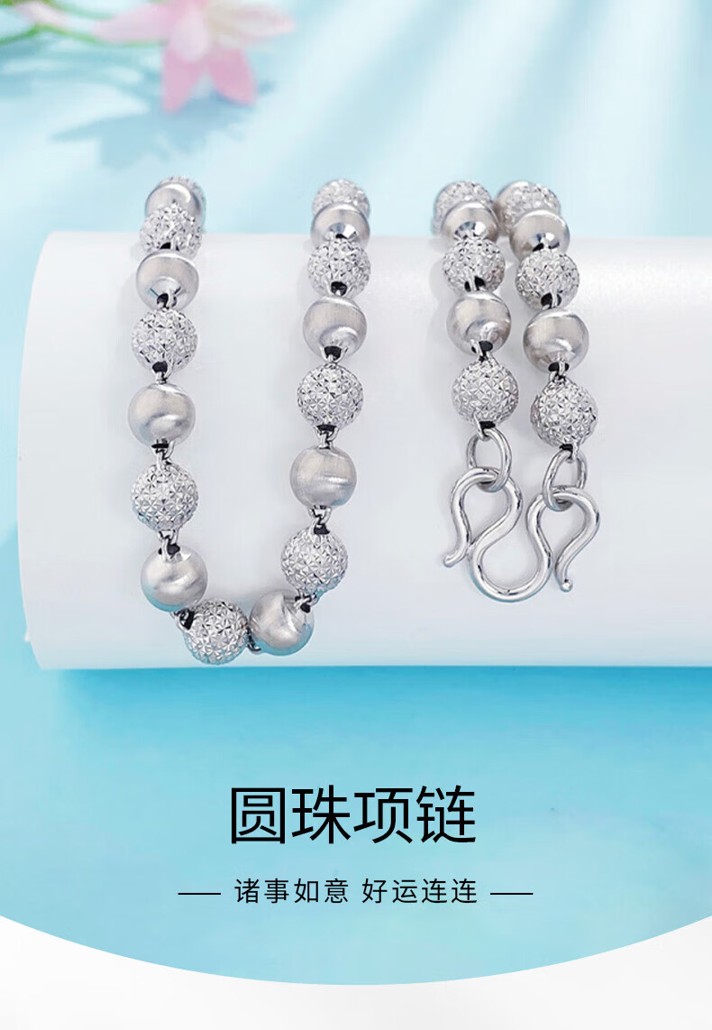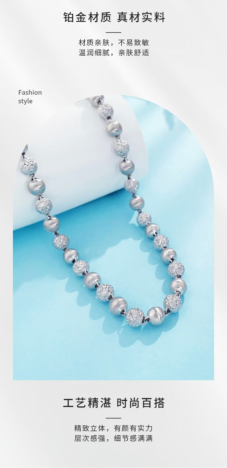 Laofu gold platinum necklace men's pt950 platinum cat's eye round beads Buddha bead chain birthday Chinese Valentine's Day gift for boyfriend, girlfriend and husband, about 49.74g - chain length 56cm