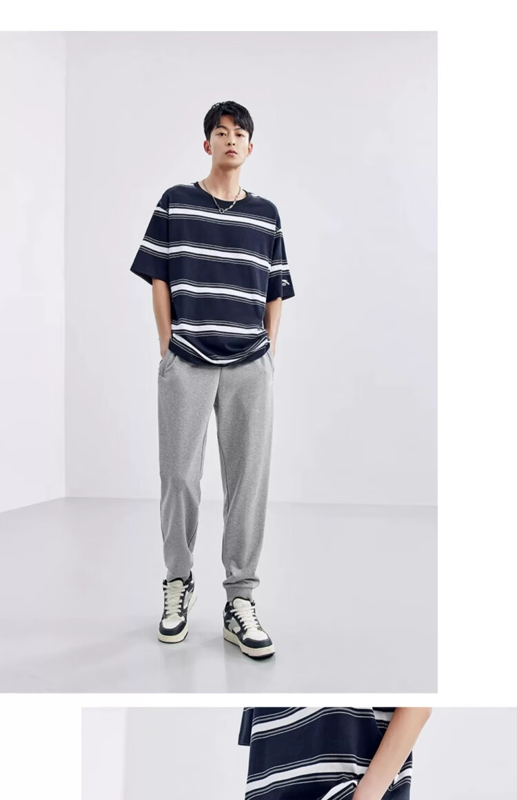 Pure cotton sports pants men's breathable loose straight pants men's casual pants running long pants men's sweatpants men's pants dark blue straight 9001 L 90-115Jin Jin equals 0.5 kg