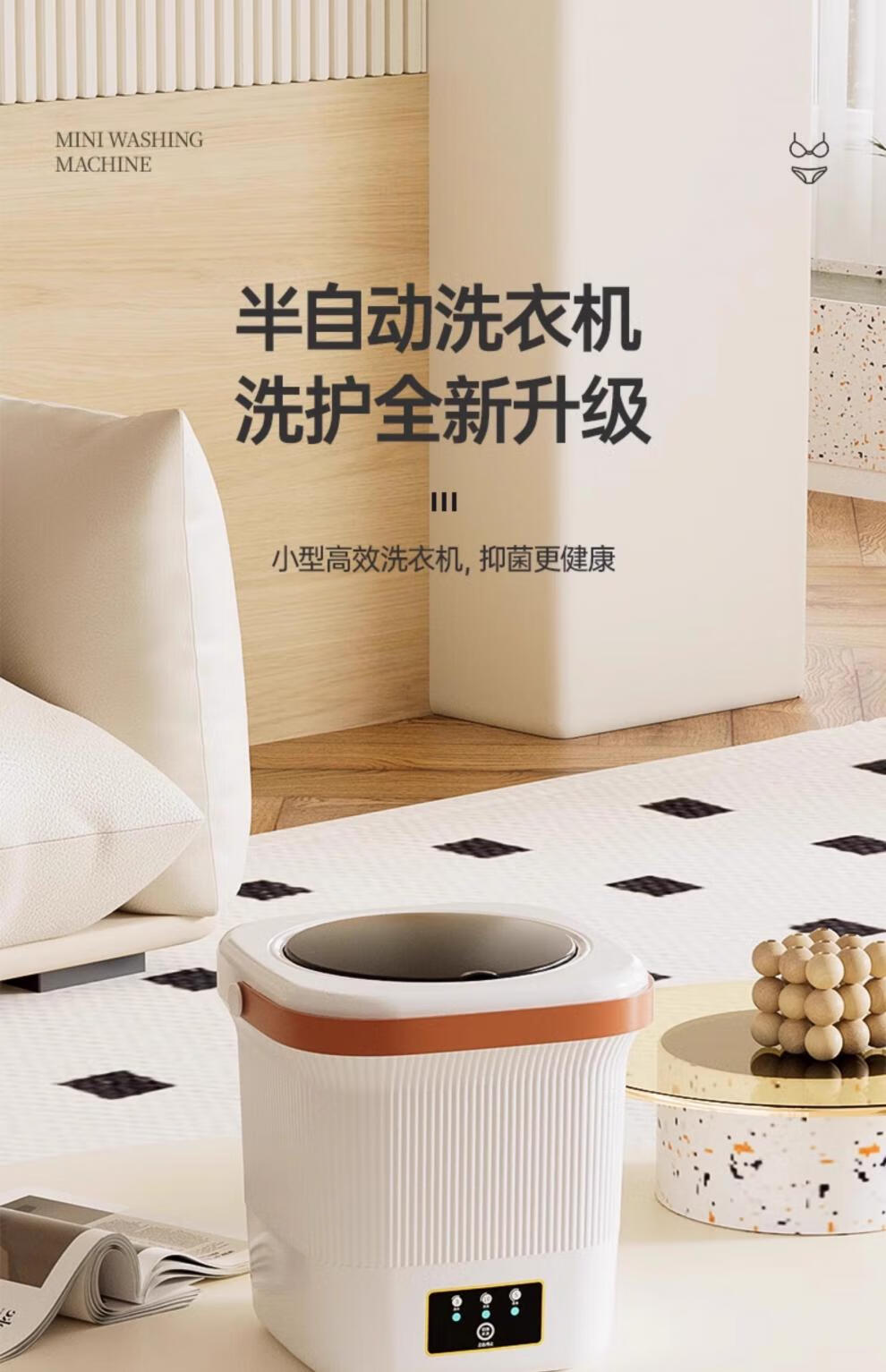 Xiaomi Guoba Fully Automatic Underwear Washing Machine Household Underwear and Socks Washing Machine Small Fully Automatic Mini Dormitory Special Sock Washing Sky Blue Double Cup Combination Wash Underwear and Socks Separately