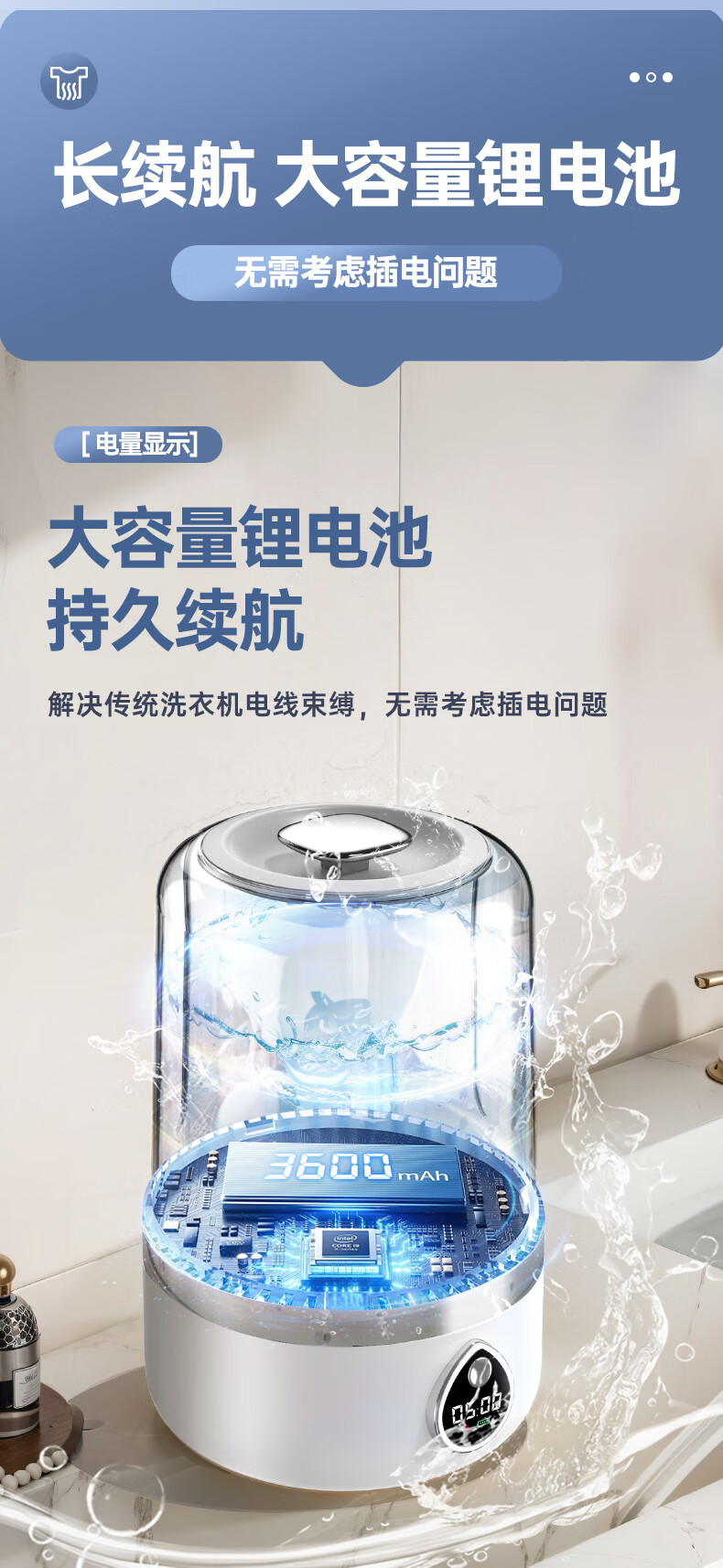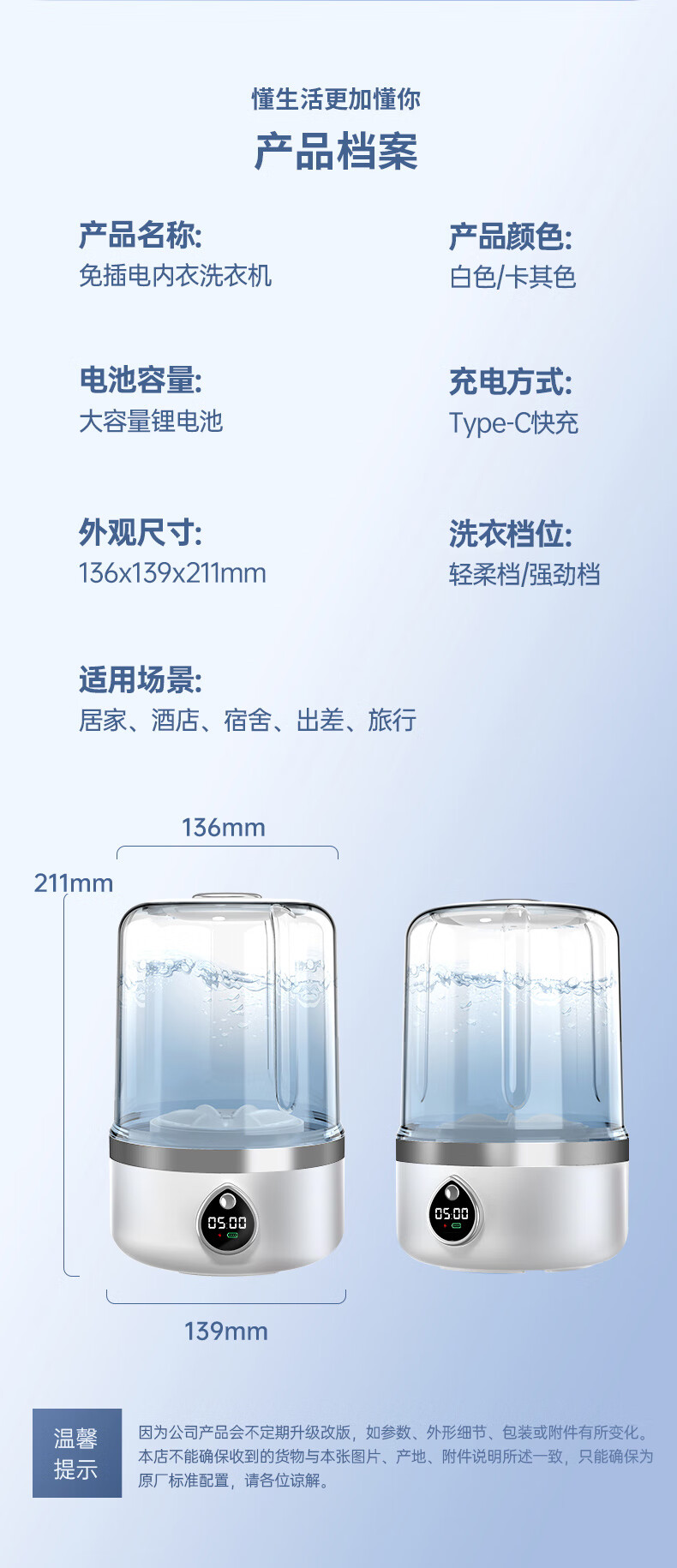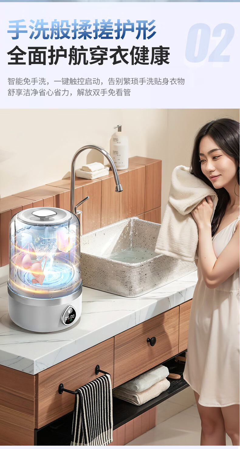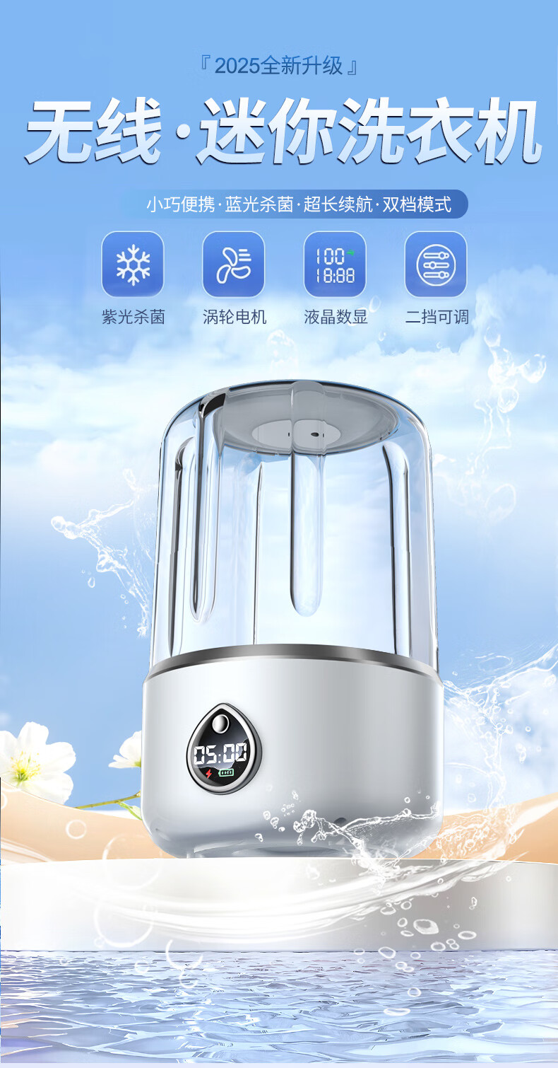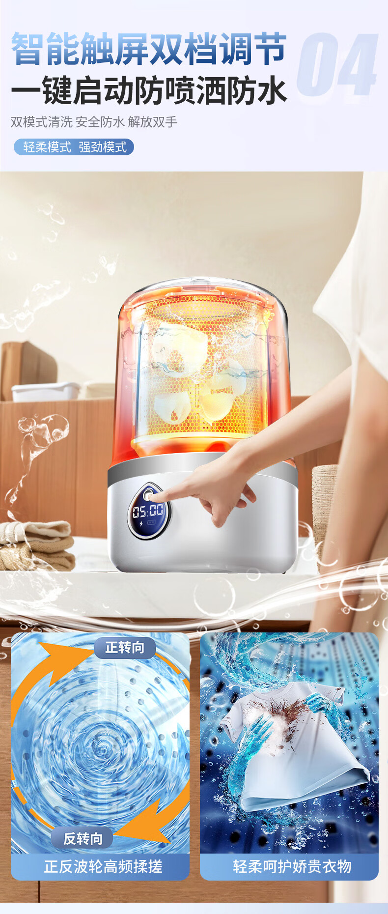 Xiaomi Buyi mini underwear washing machine special all-in-one machine for washing socks and underwear, small wireless portable laundry, plug-in model, no installation + LCD digital display + 2 large cleaning