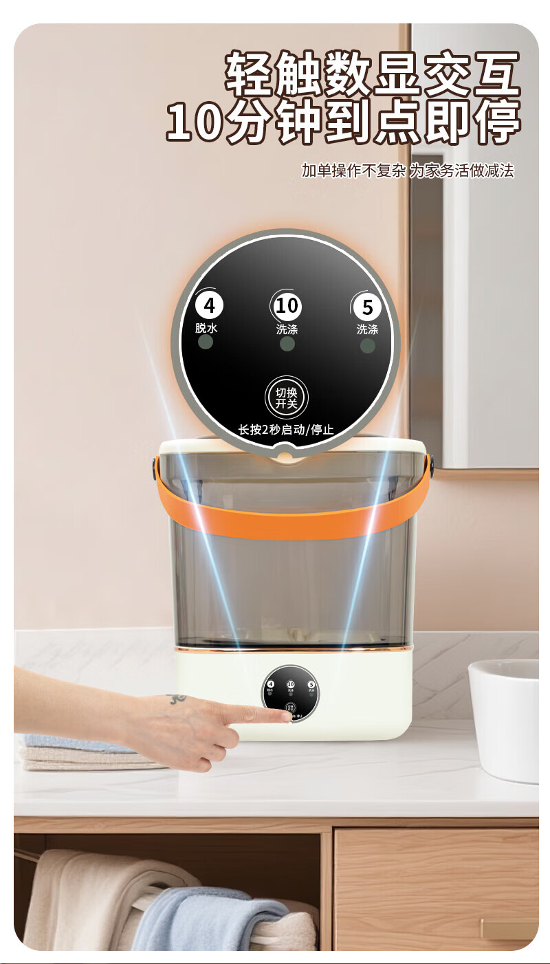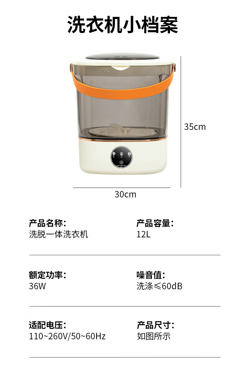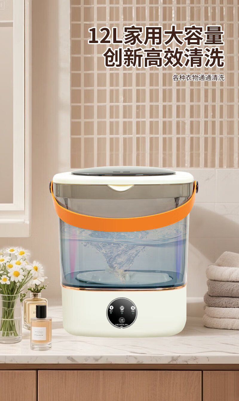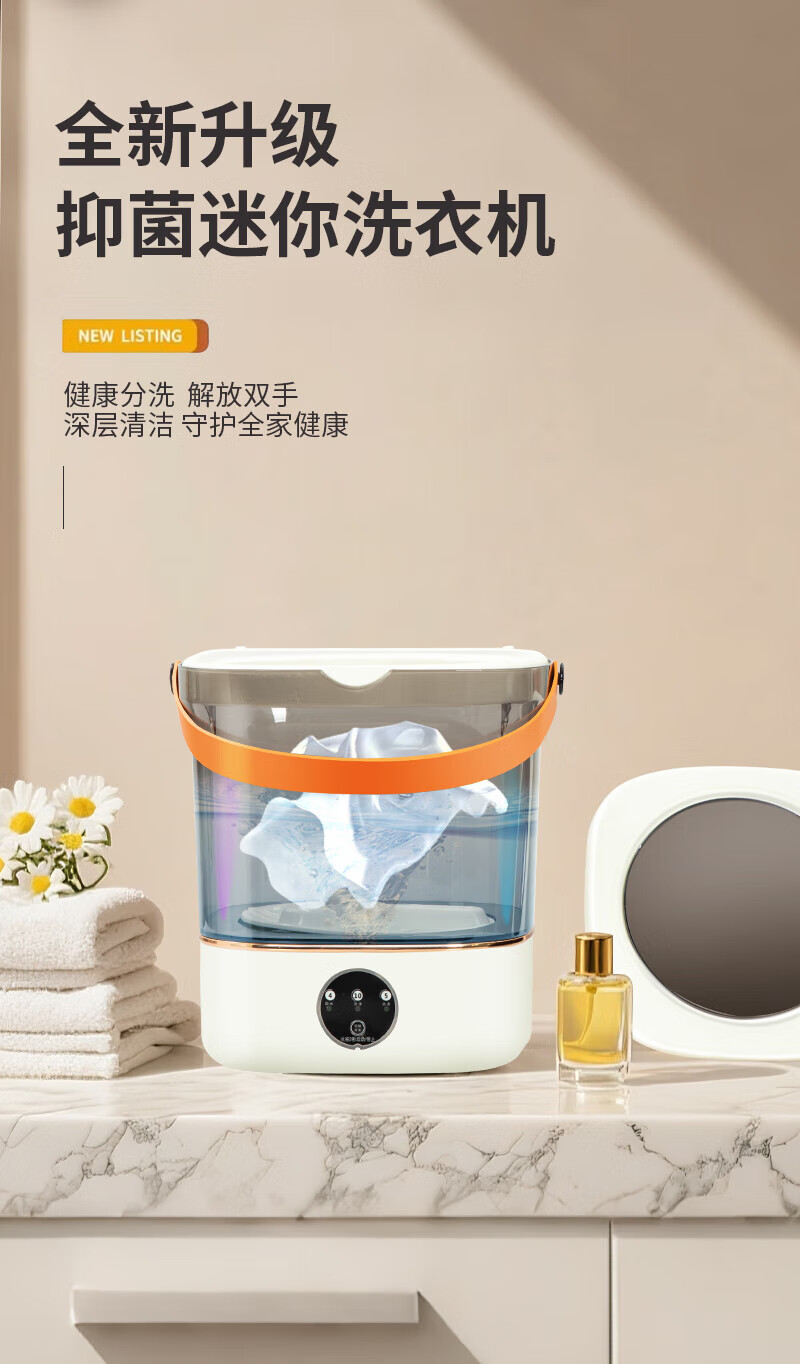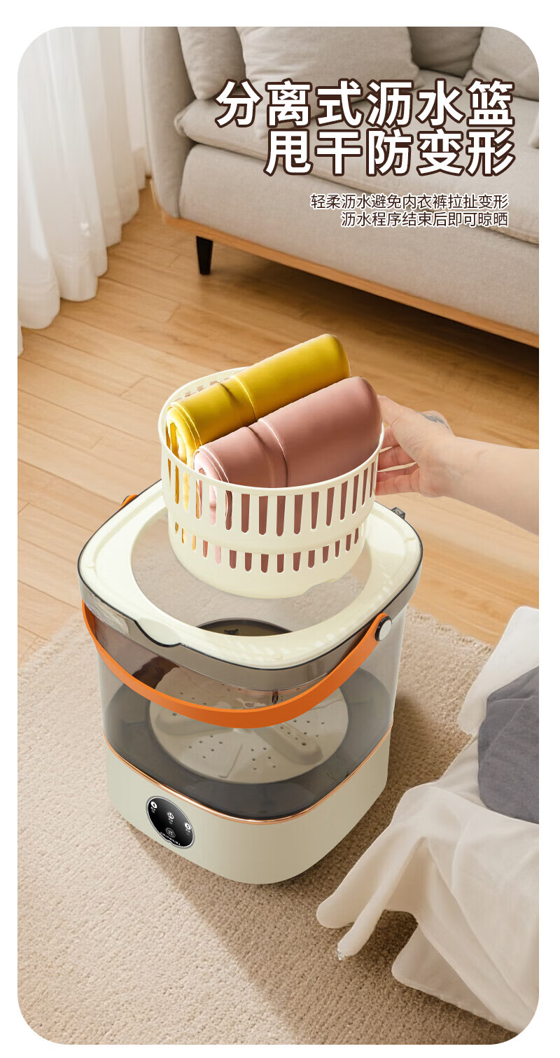 Xiaomi Guoba washing machine portable small washing socks and underwear mini single dormitory with integrated washing and washing, visible model 12L elegant white, integrated washing and washing + UV color