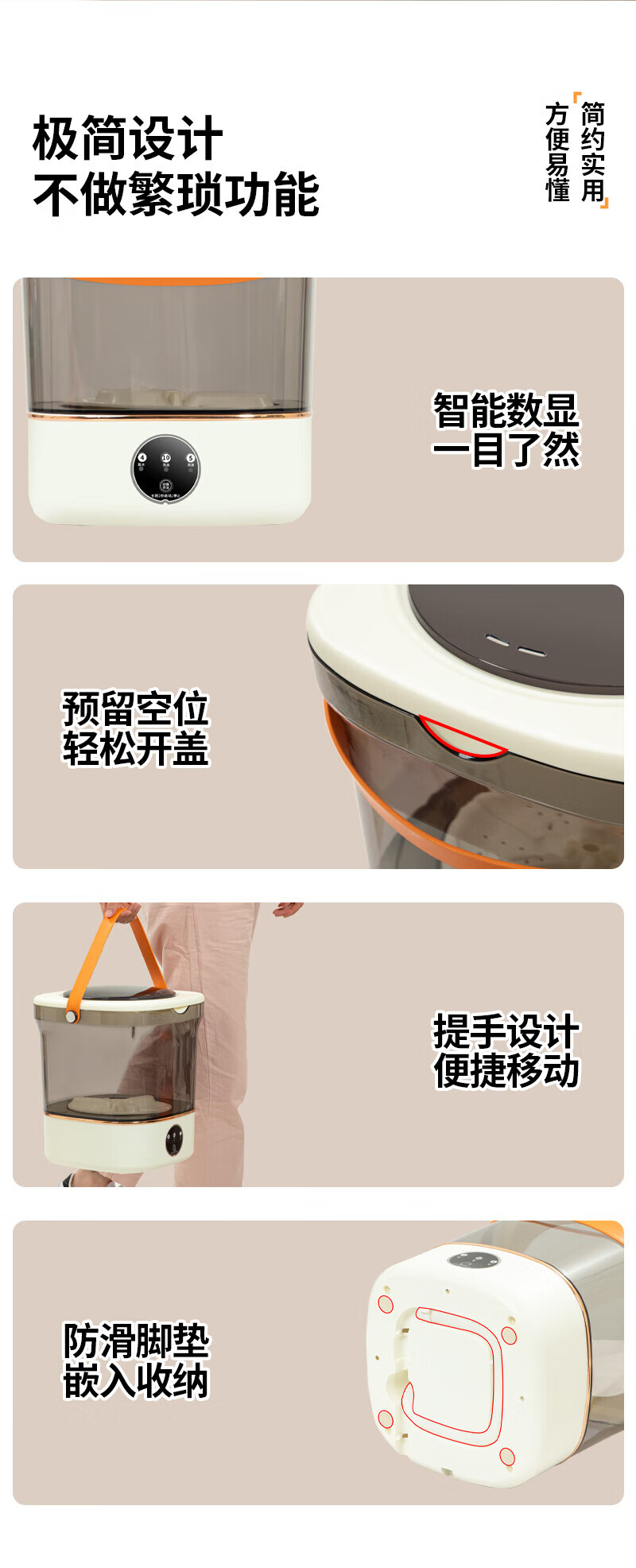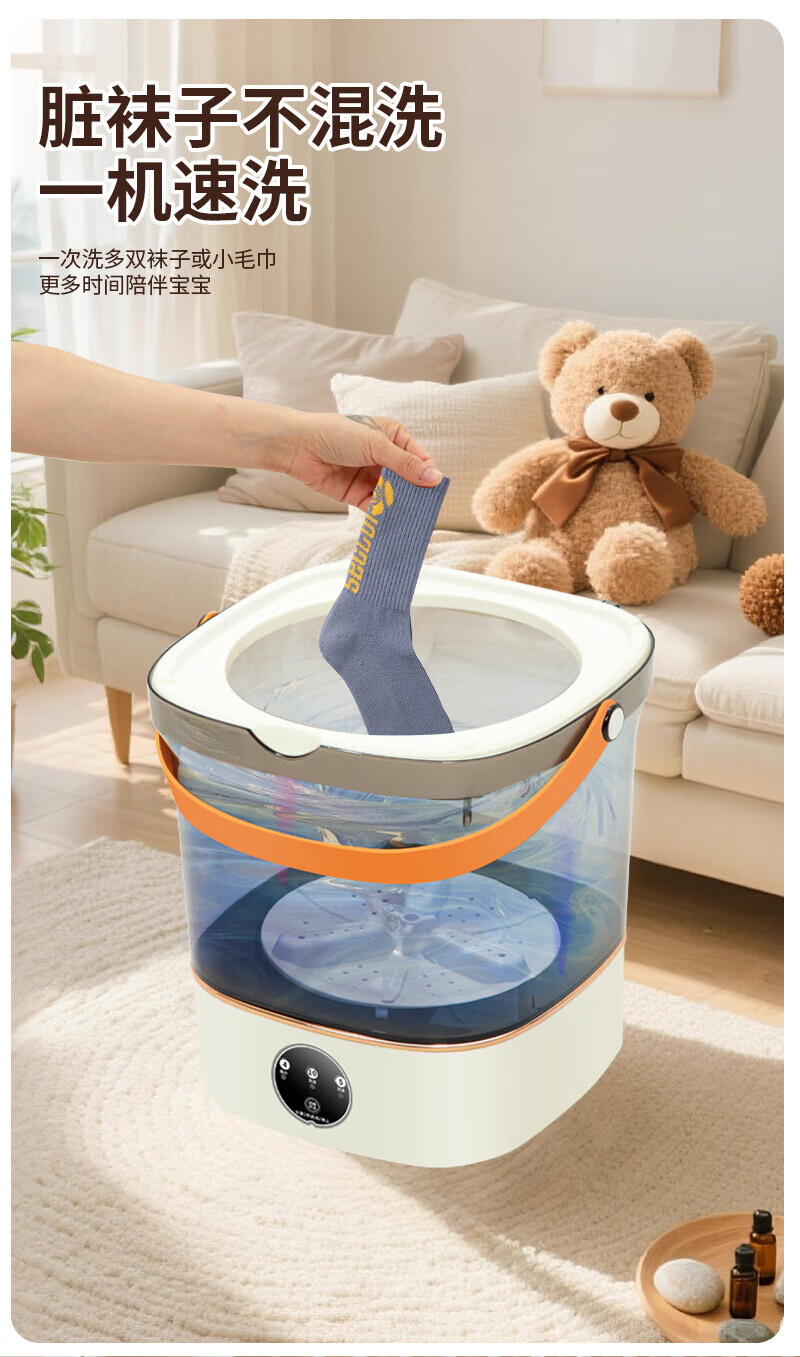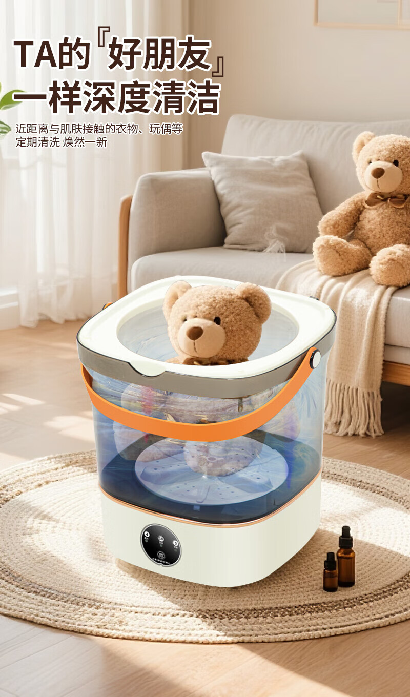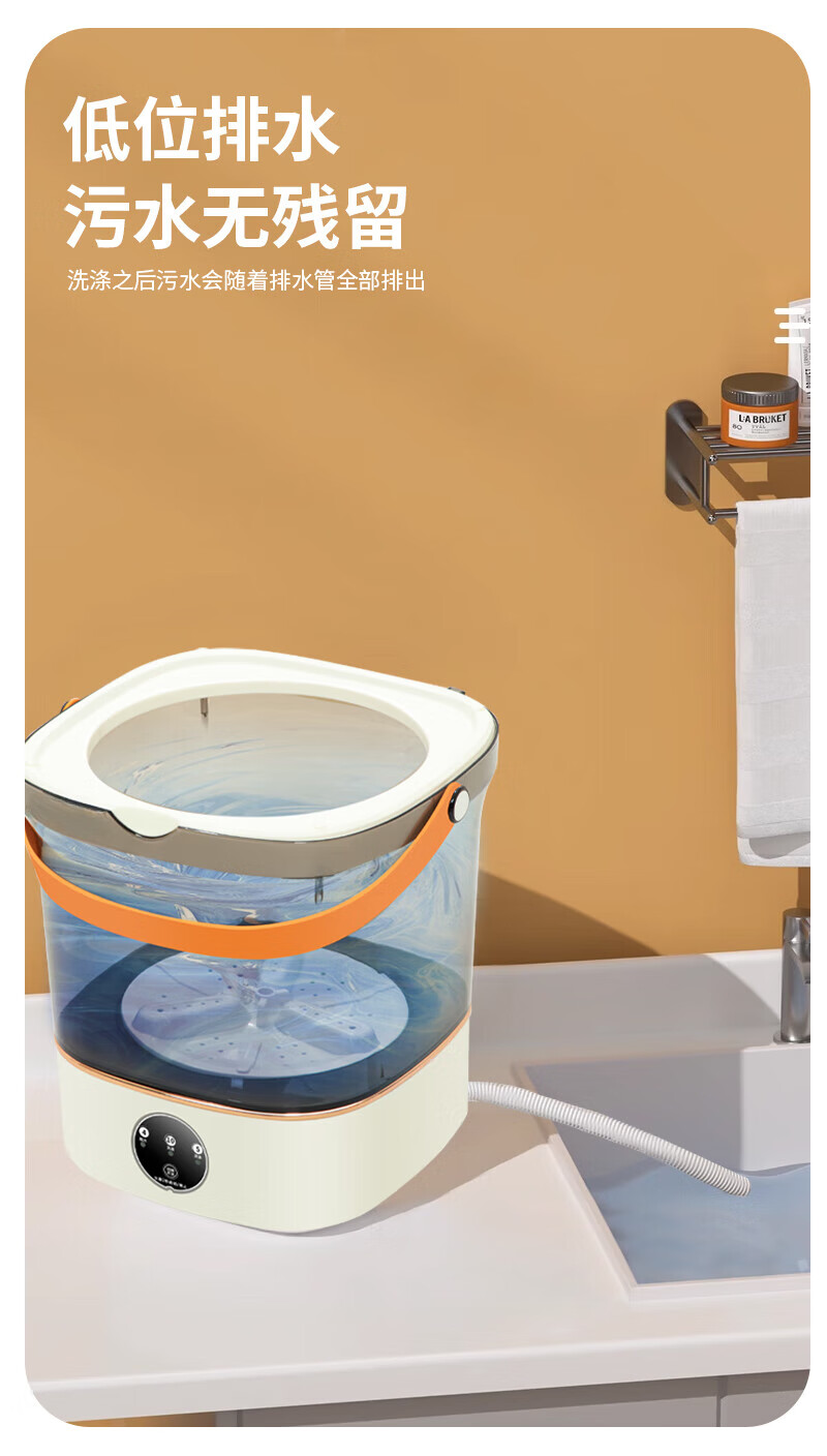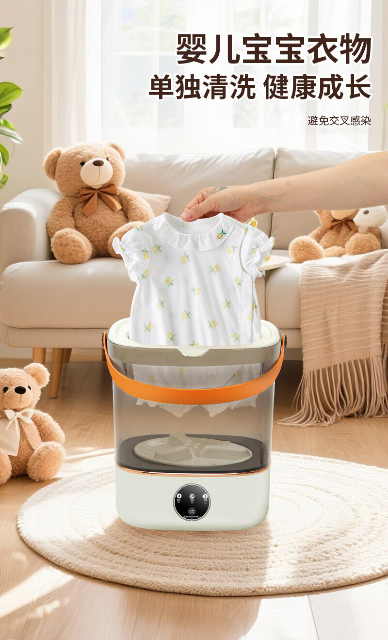 Xiaomi Guoba washing machine portable small washing socks and underwear mini single dormitory with integrated washing and washing, visible model 12L elegant white, integrated washing and washing + UV color