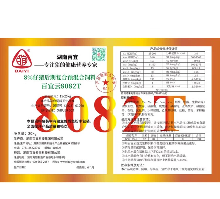 BAIYI Yunzhu Feed 8082T Piglet Feed 8% Compound Premix 20kg Fish Meal Feed 20kg
