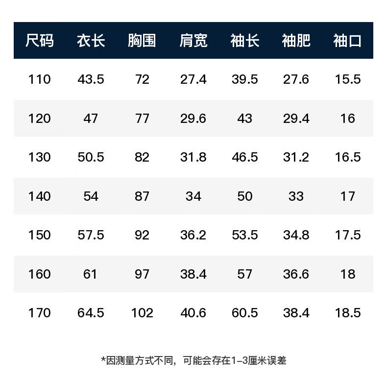 China (cm) 165 / 88-90 170 / 96-98 175 / 108-110 180 / 118-122 185 / 126-130