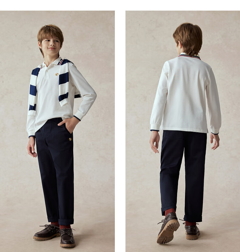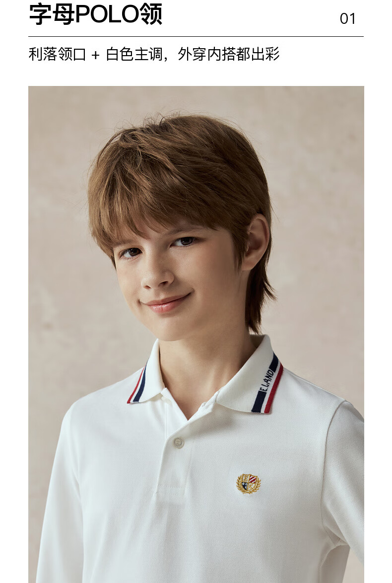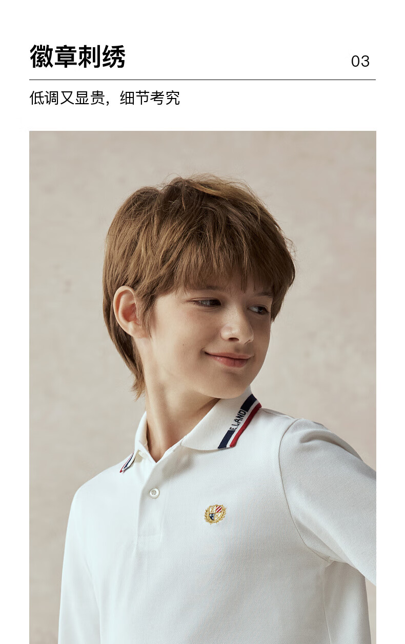 E LAND KIDS antibacterial children's clothing boys' T-shirt new casual embroidered POLO shirt Navy/59 170