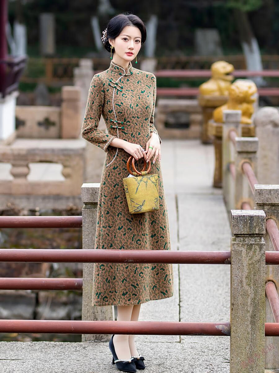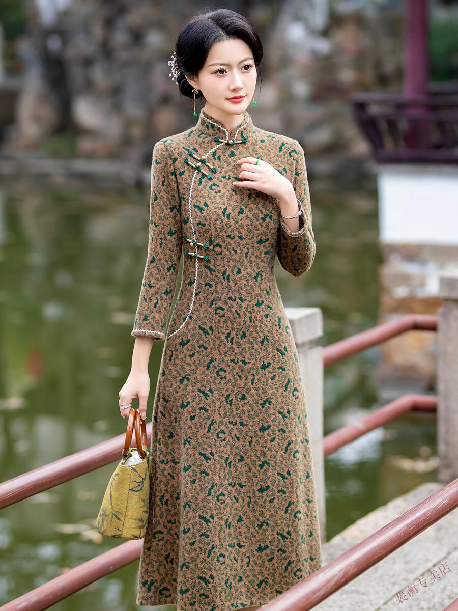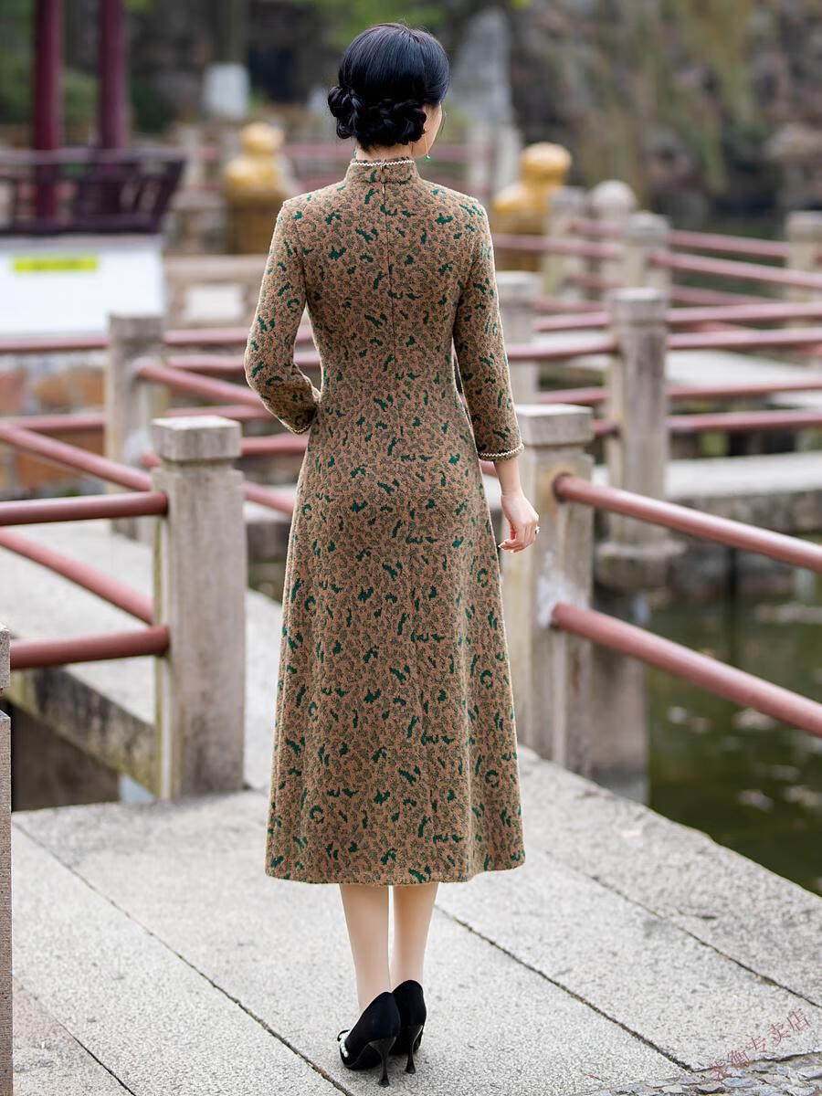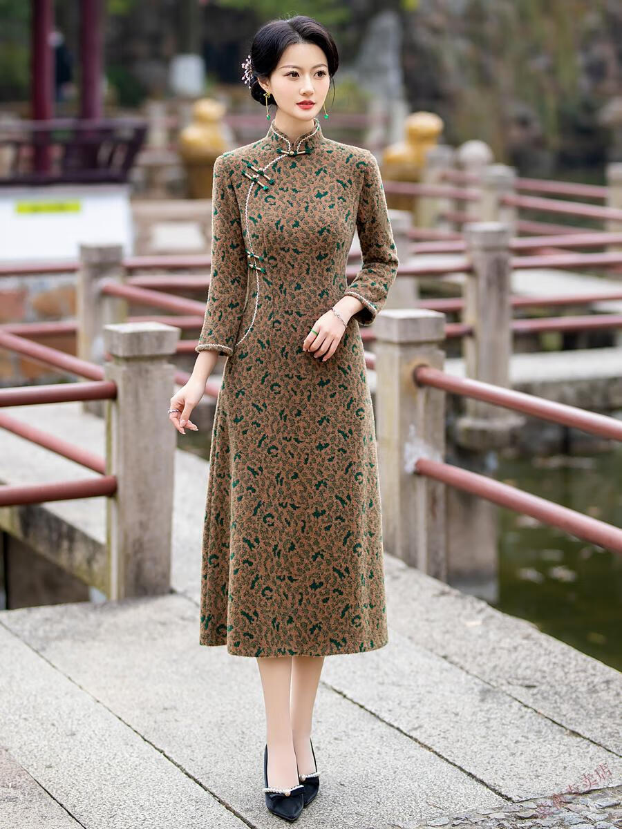Pierre Cardin middle-aged and elderly mothers thickened autumn and winter slimming Ao Dai improved cheongsam new Chinese style retro mink velvet dress long women's camel 3XL 130--140Jin Jin is equal to 0.5 kg can be worn