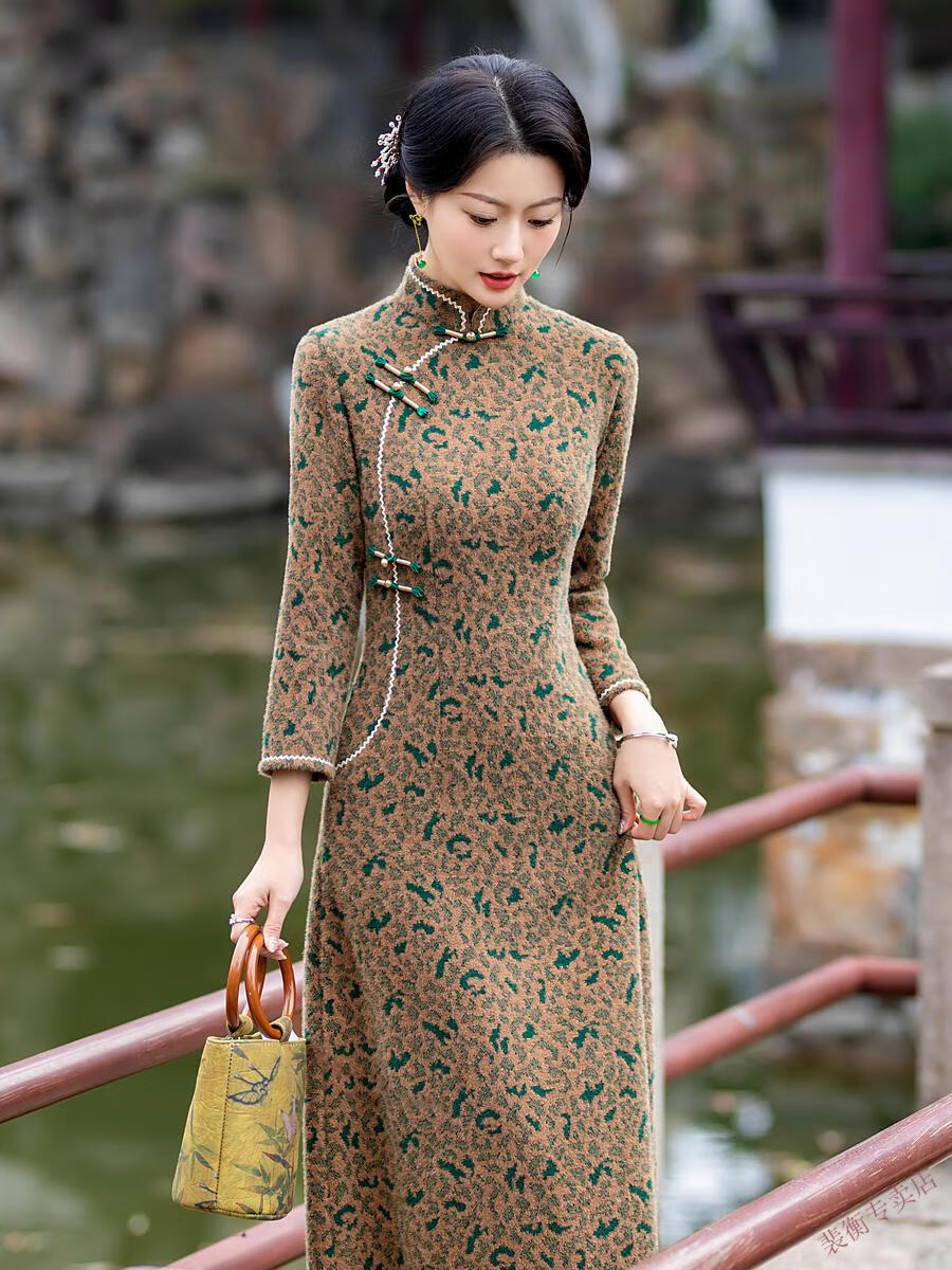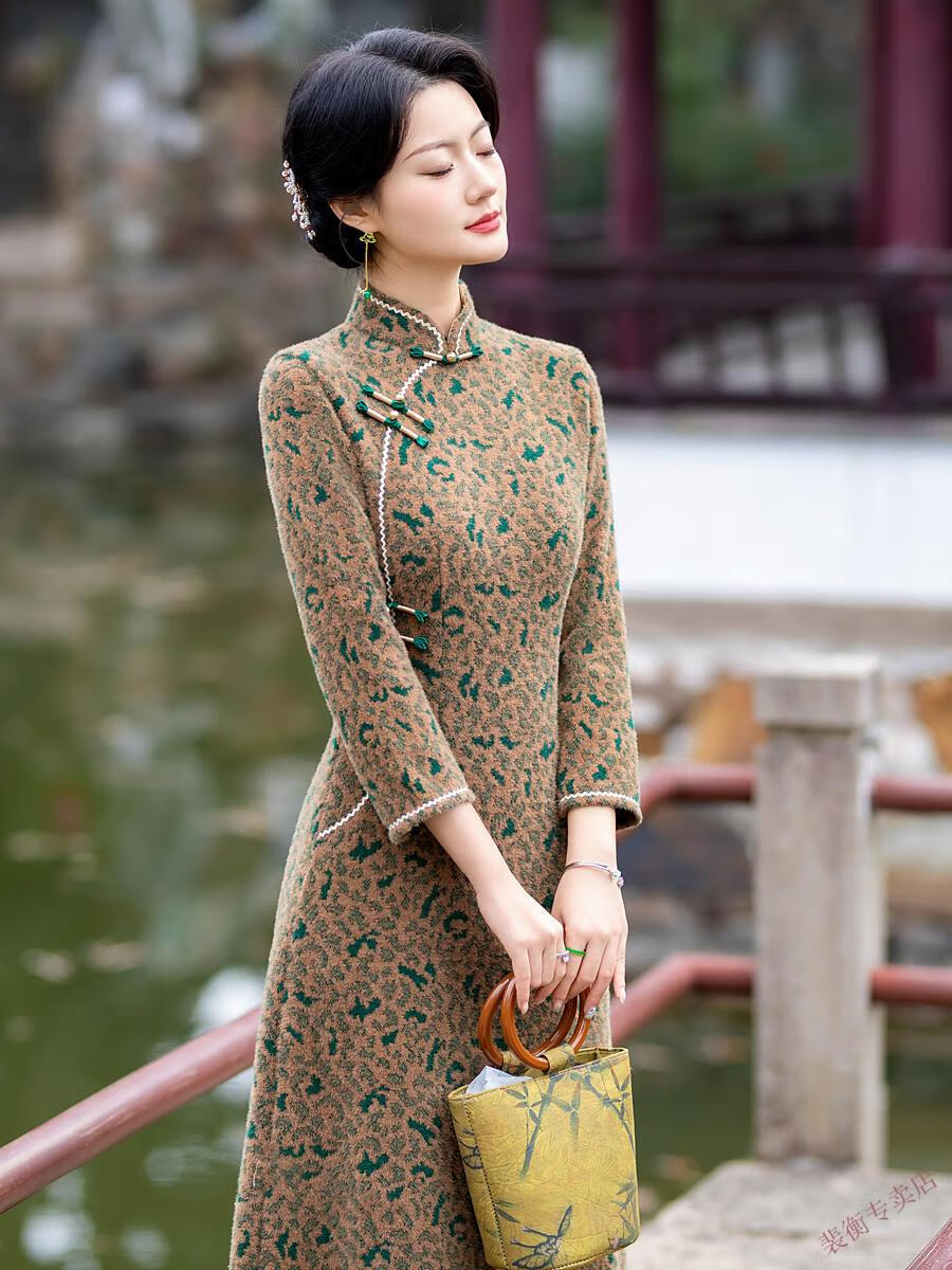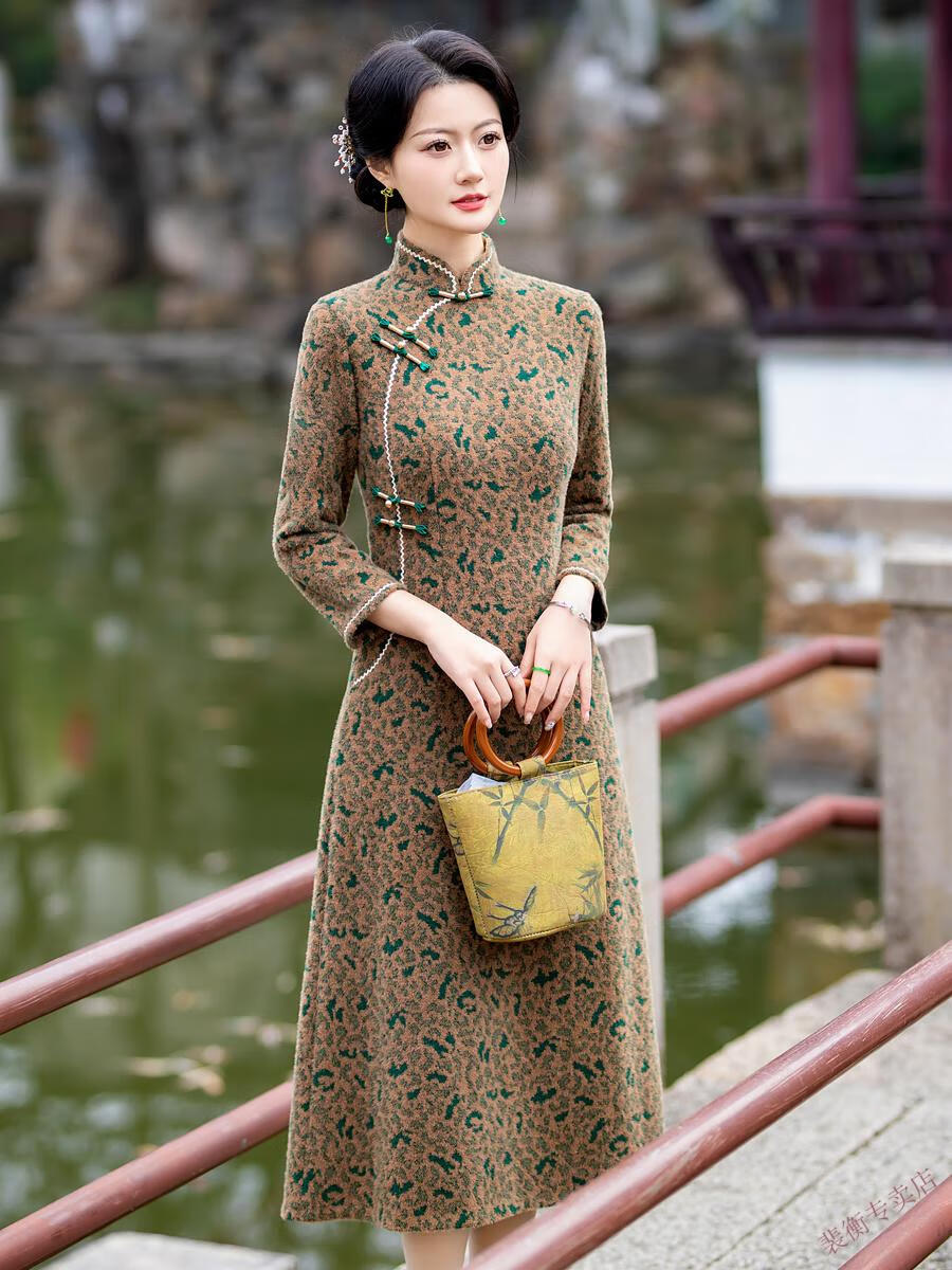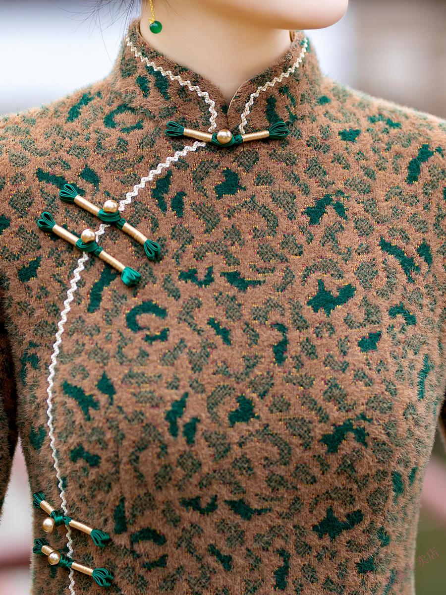 Pierre Cardin middle-aged and elderly mothers thickened autumn and winter slimming Ao Dai improved cheongsam new Chinese style retro mink velvet dress long women's camel 3XL 130--140Jin Jin is equal to 0.5 kg can be worn
