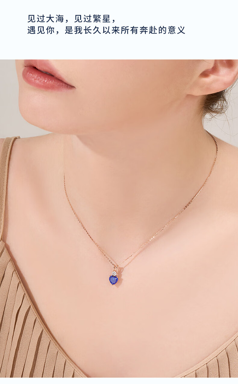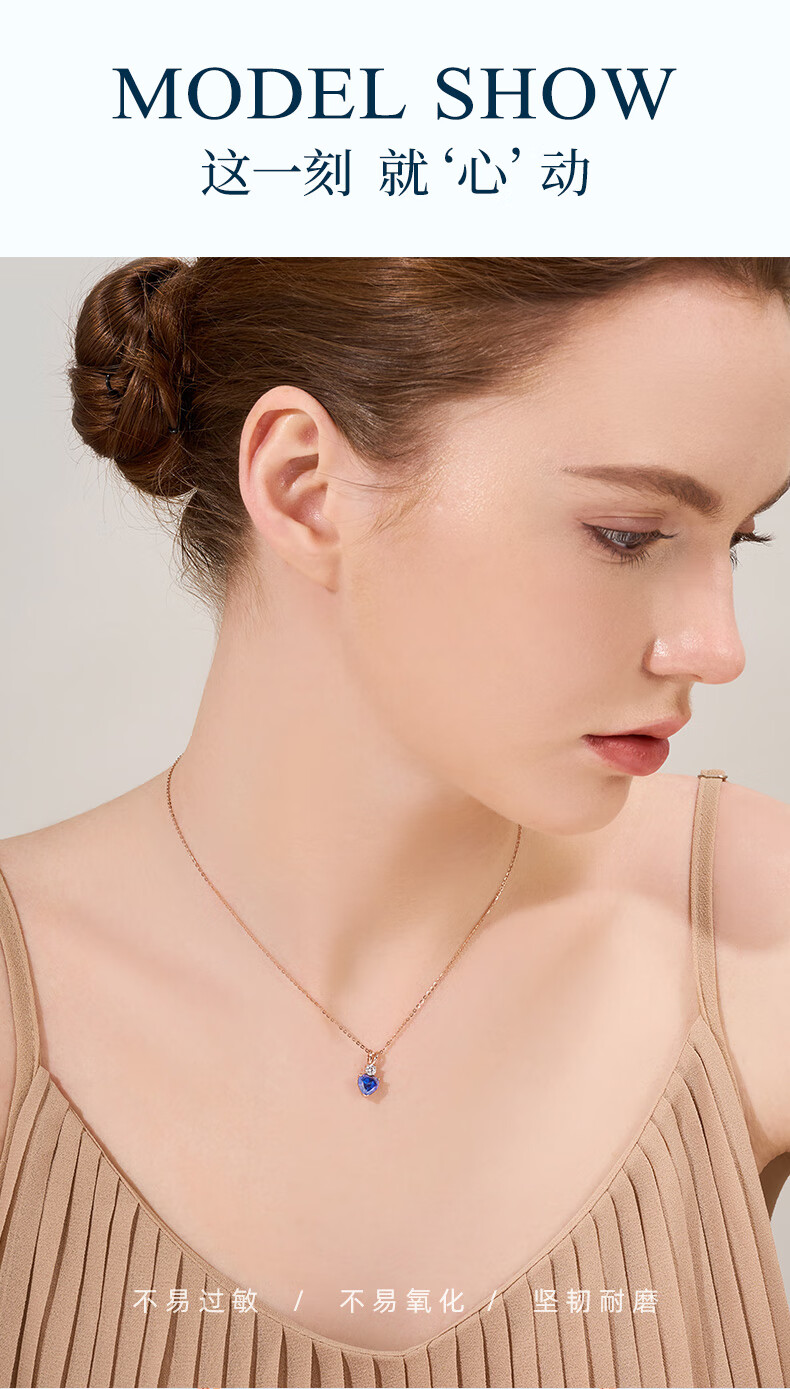 GUSKI French brand sapphire necklace women's eternal heart light luxury high-end pendant anniversary birthday gift for girlfriend, please take photo of engraving or greeting card