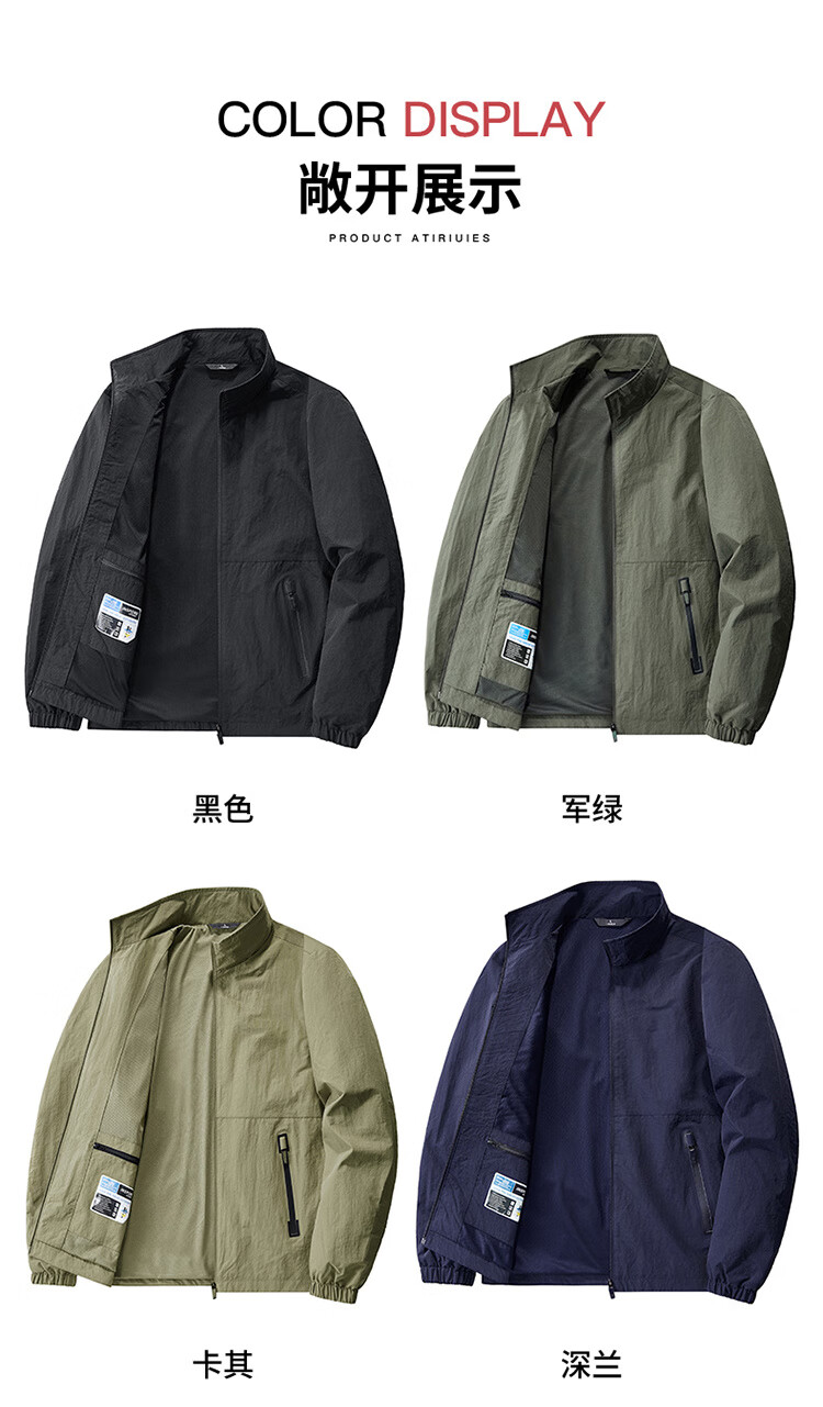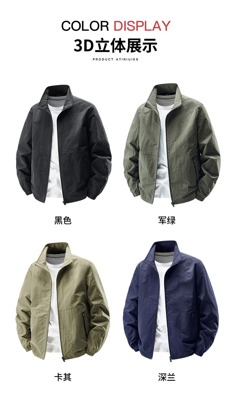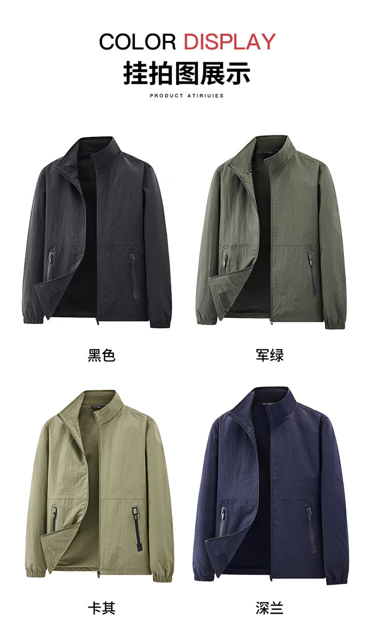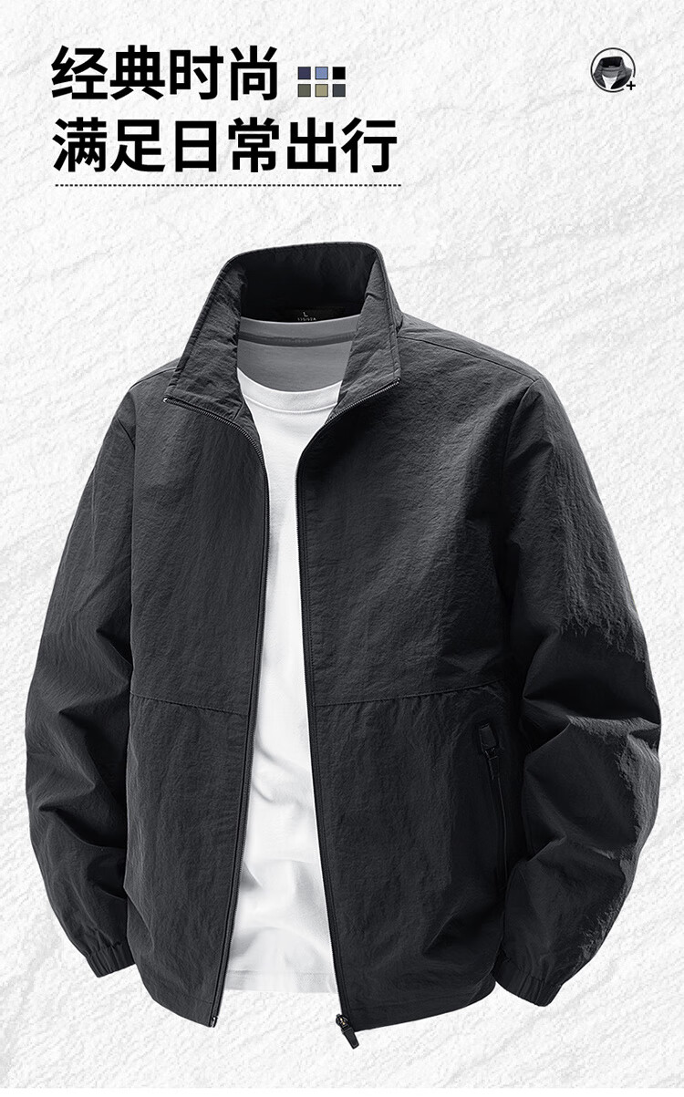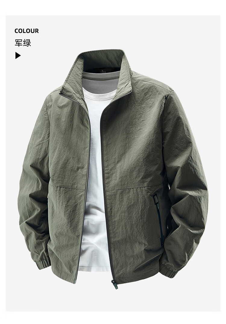 Gu Qian Spring and Autumn Stand Collar Jacket Men's Thin Casual Windproof and Waterproof Loose Youth Large Size Winter Velvet Commuting Top Army Green XL Recommended 125-140 Jin Jin equals about 0.5 kg