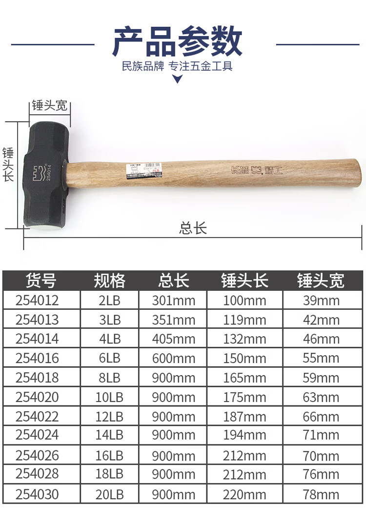 Great Wall (the great wall) Great Wall precision wooden handle octagonal hammer 2 3 4 6 8 12 14 16 18 20 pounds sledge hammer sledge hammer wooden handle octagonal hammer 18LB (18 pounds) 254028