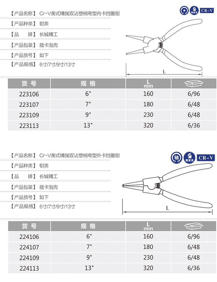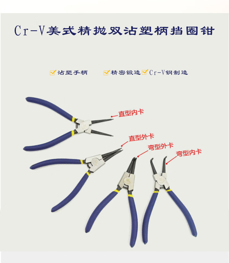 Great Wall (the great wall) Great Wall Seiko retaining ring pliers multi-functional snap ring pliers yellow pliers inner and outer support outer straight outer bend inner bend circlip pliers retaining ring pliers curved inner clamp 13 inches 223113