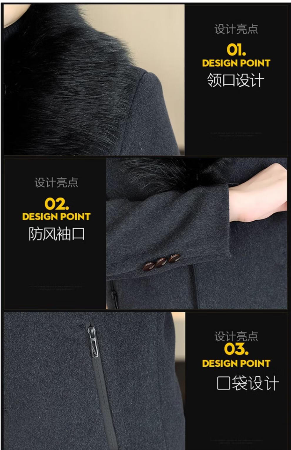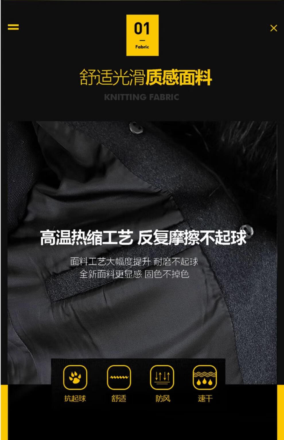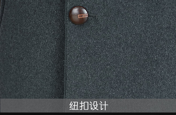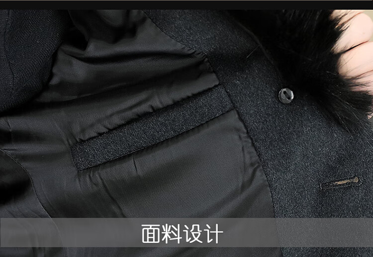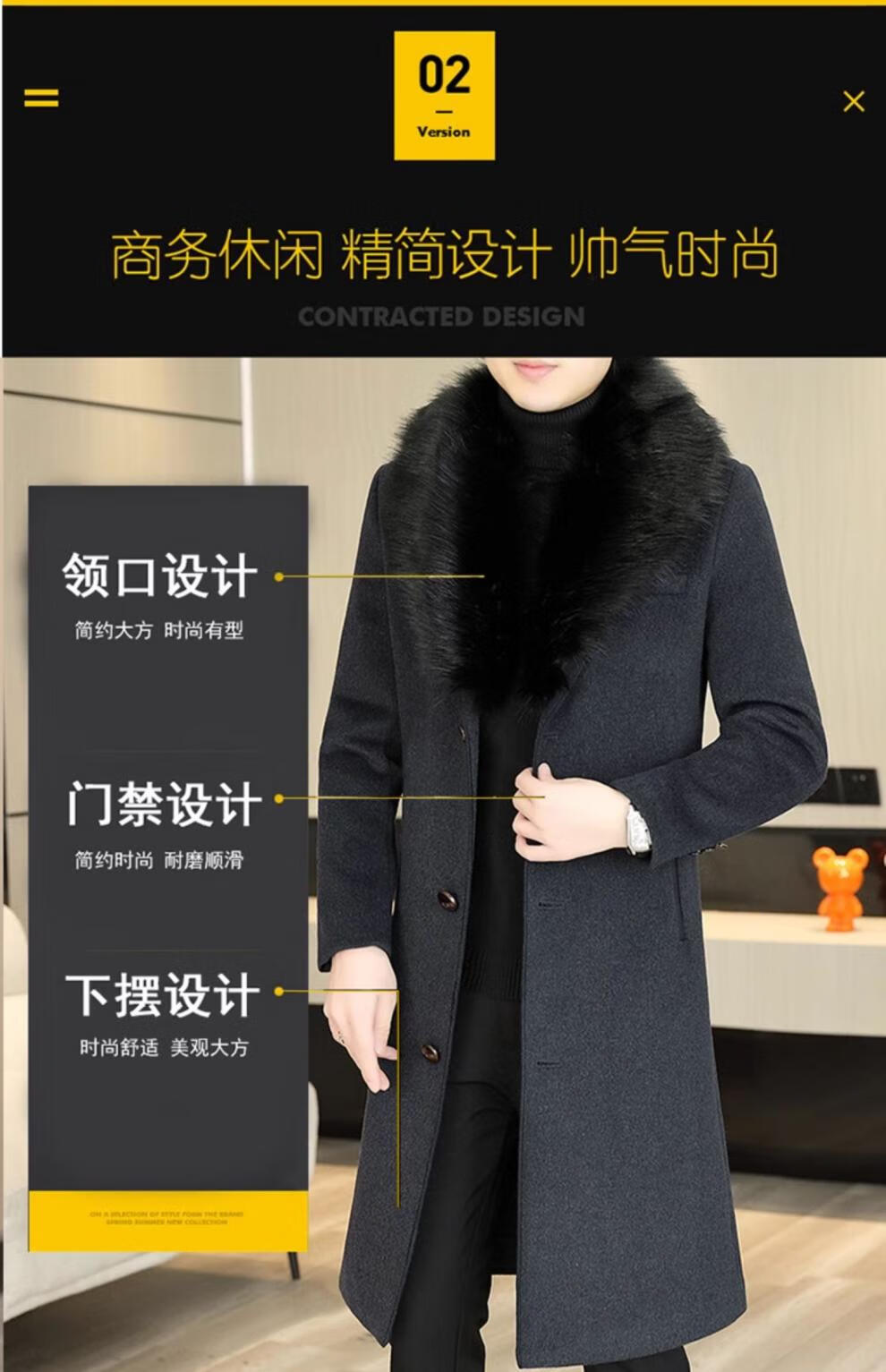 Pierre Cardin autumn and winter men's extended length knee-length woolen coat jacket trendy business men's thickened fur collar woolen windbreaker black XL
