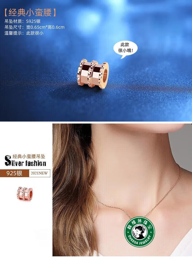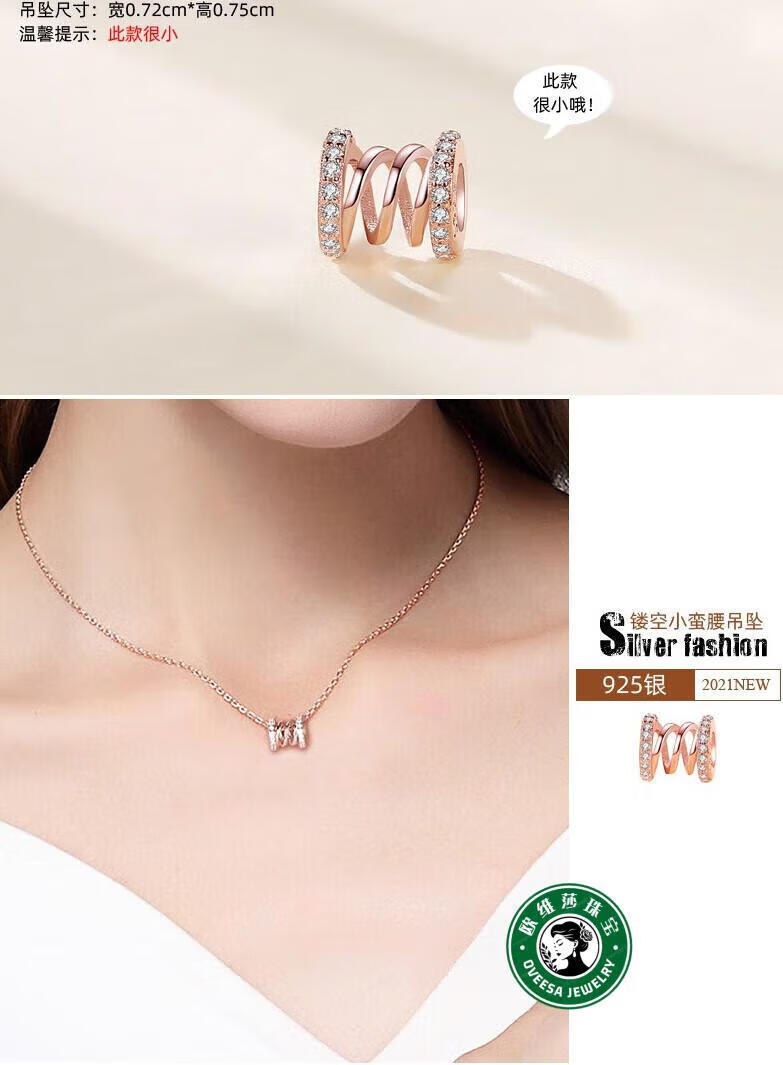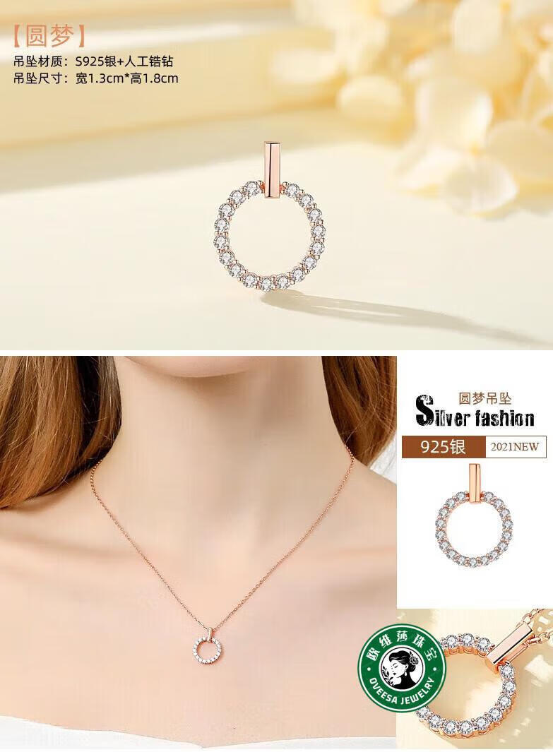 MHFDO gold pendant single pendant alone women's silver necklace color gold pendant without chain rose gold color gold with silver single chain rose gold 38+5cm extension chain
