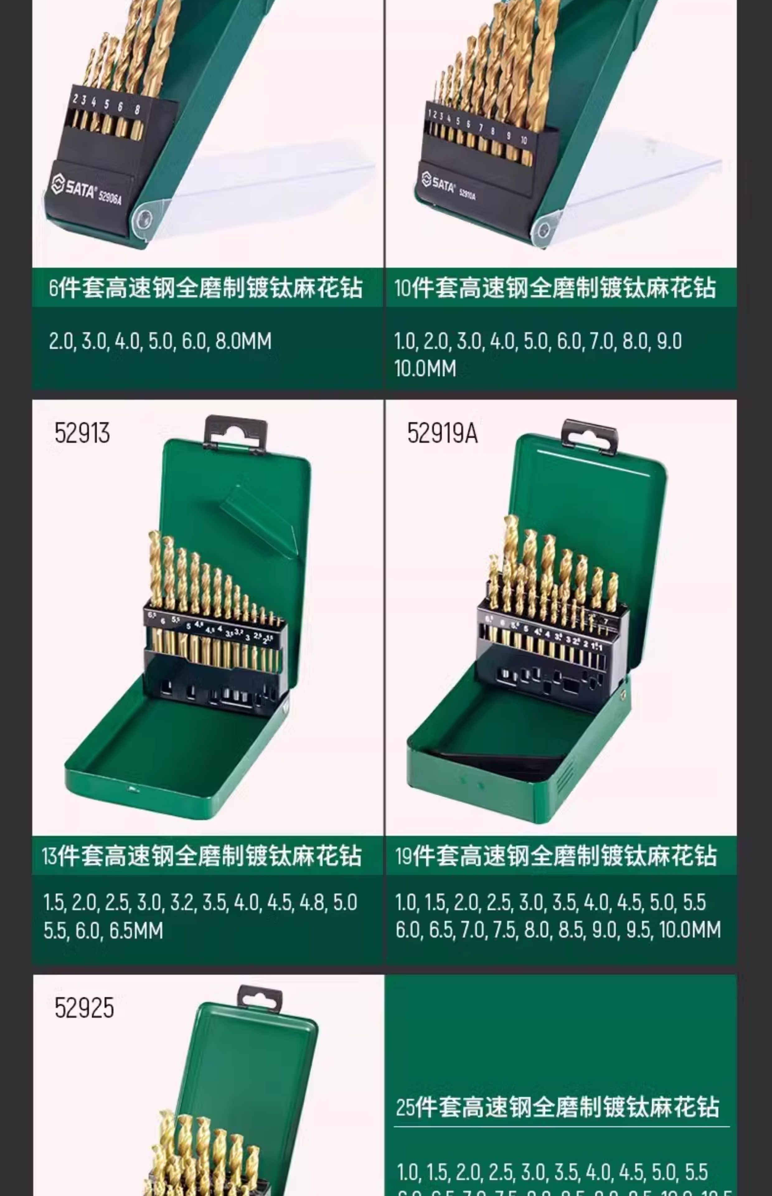 Shida high-speed mesh twist drill bit high hardness electric drill to drill stainless steel special super hard twist drill set 52195A 9.5mm 5-pack