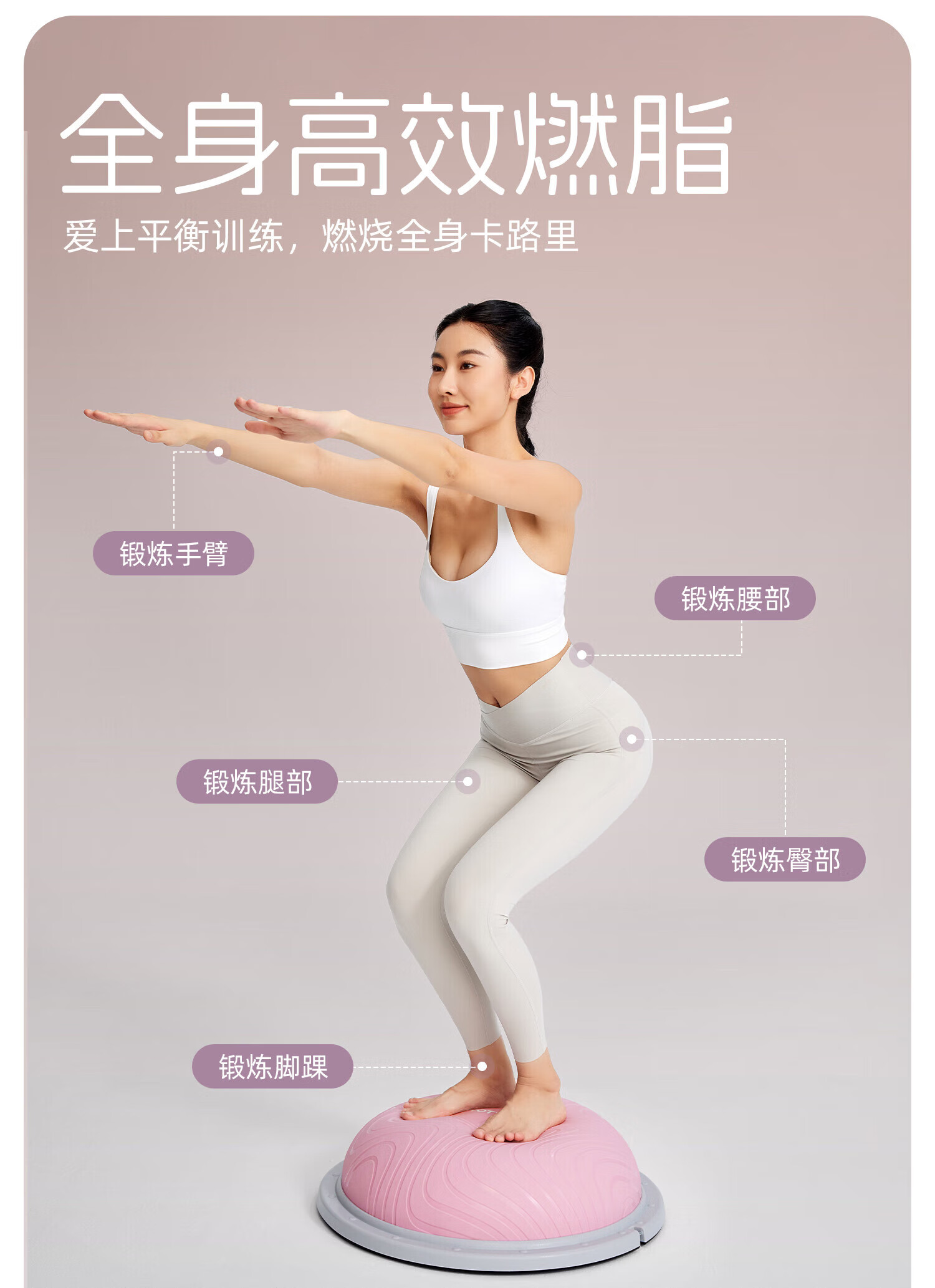 Yottoy wave speed ball semicircular balance ball yoga ball home fitness foot core training yoga hemisphere Pilates grapefruit powder efficient fat burning and shaping 60cm