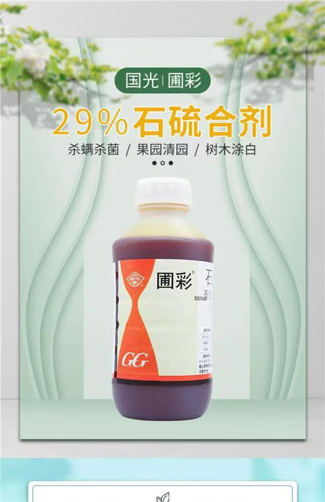 Guoguang Pucai 29% Lime Sulfur Mixture Powdery Mildew Red Spider Kills Mites and Qingyuan Powdery Mildew Fungicide Scale Insect 1kg*1 Bottle