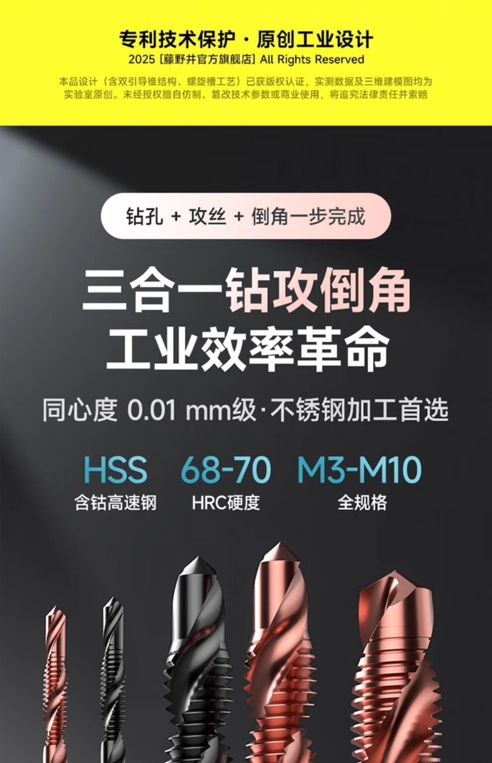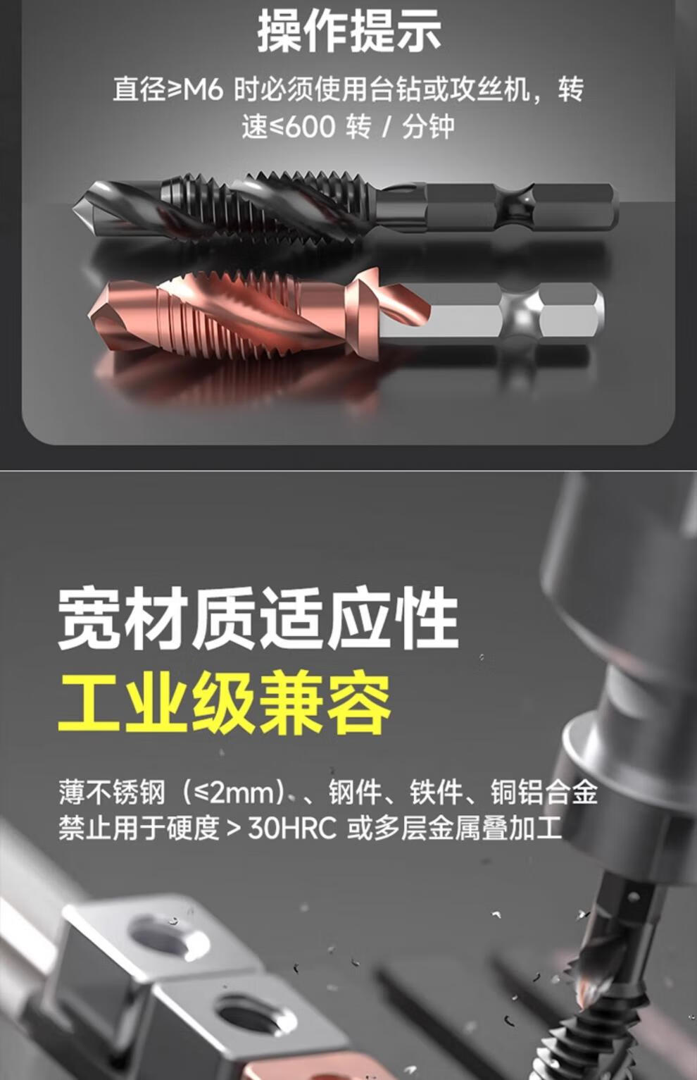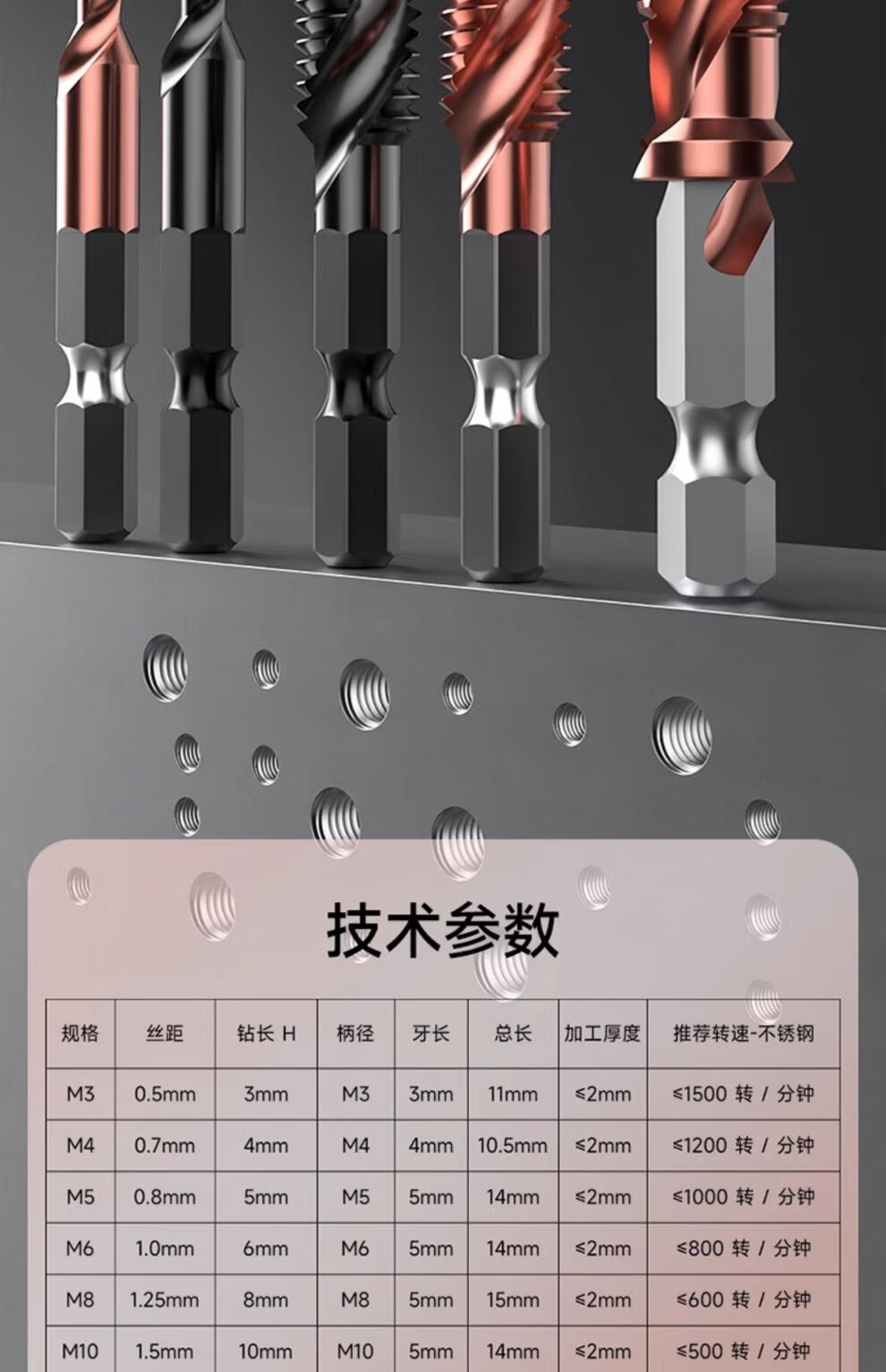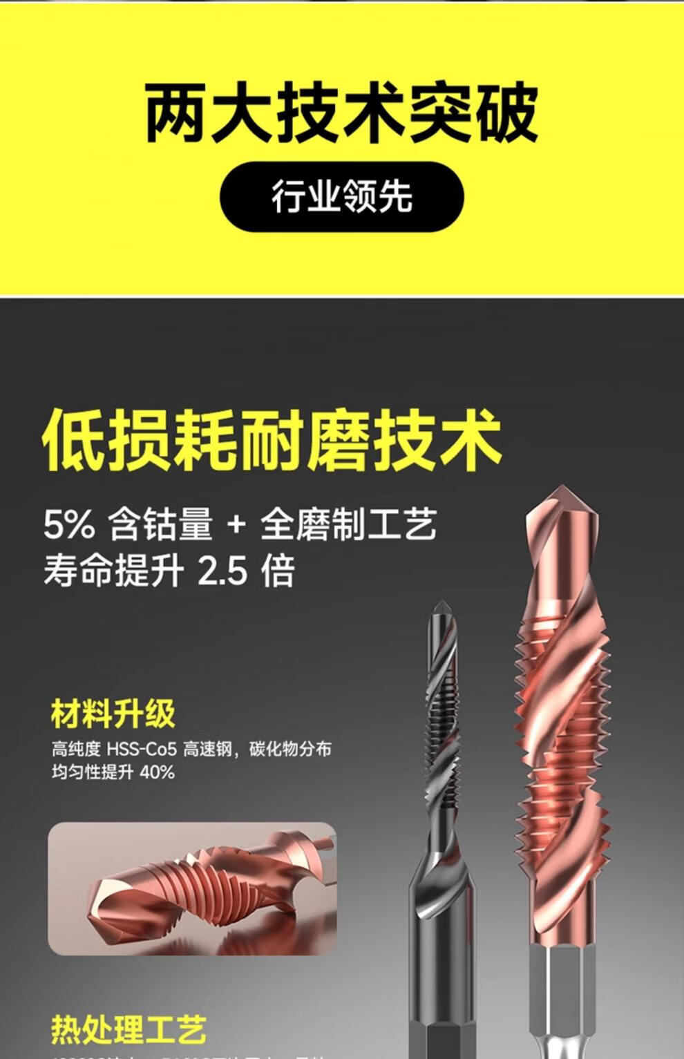 Fujinoi drilling, tapping and punching integrated three-in-one composite wire tapping cone power wire cobalt-containing drill bit for tapping stainless steel M3-M10 cobalt-plated industrial grade 6-piece set