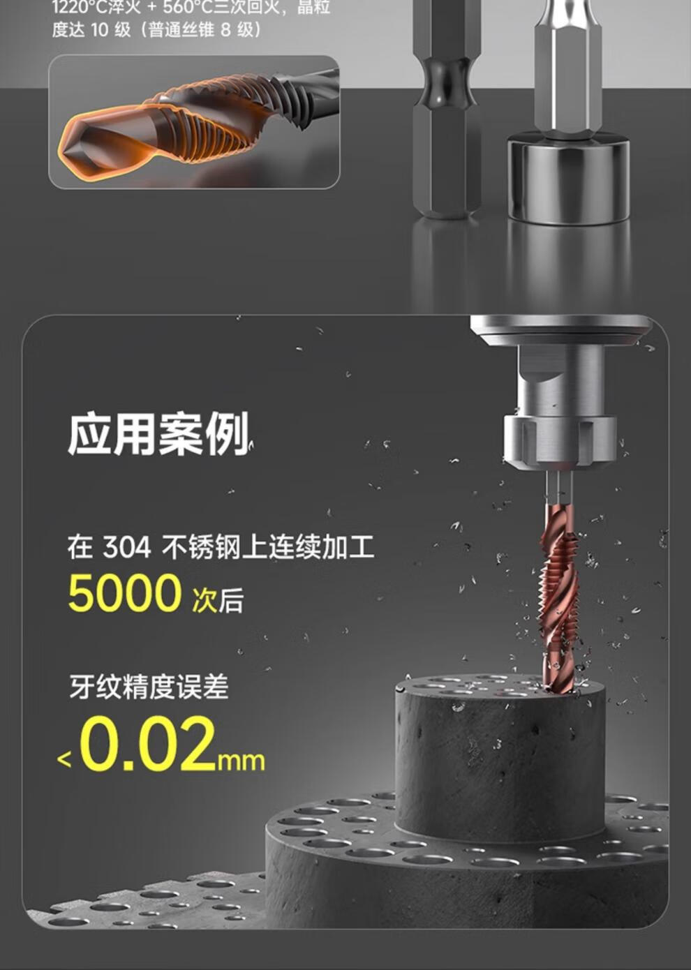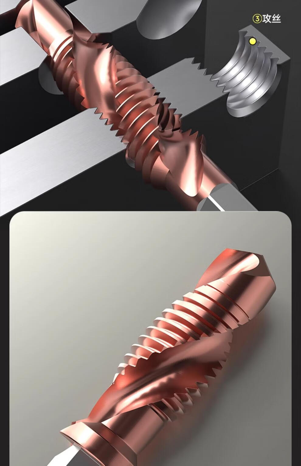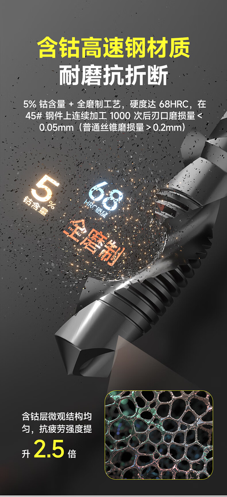 Fujinoi drilling, tapping and punching integrated three-in-one composite wire tapping cone power wire cobalt-containing drill bit for tapping stainless steel M3-M10 cobalt-plated industrial grade 6-piece set