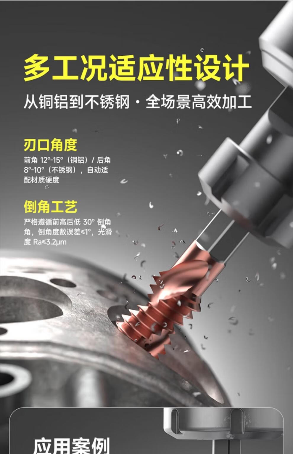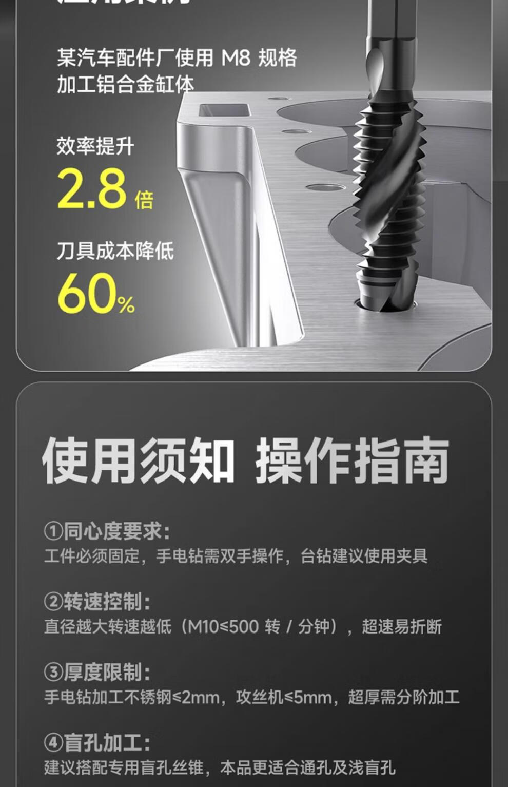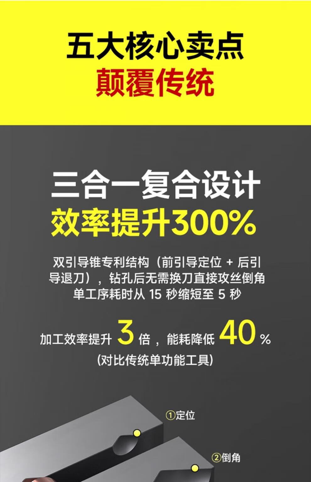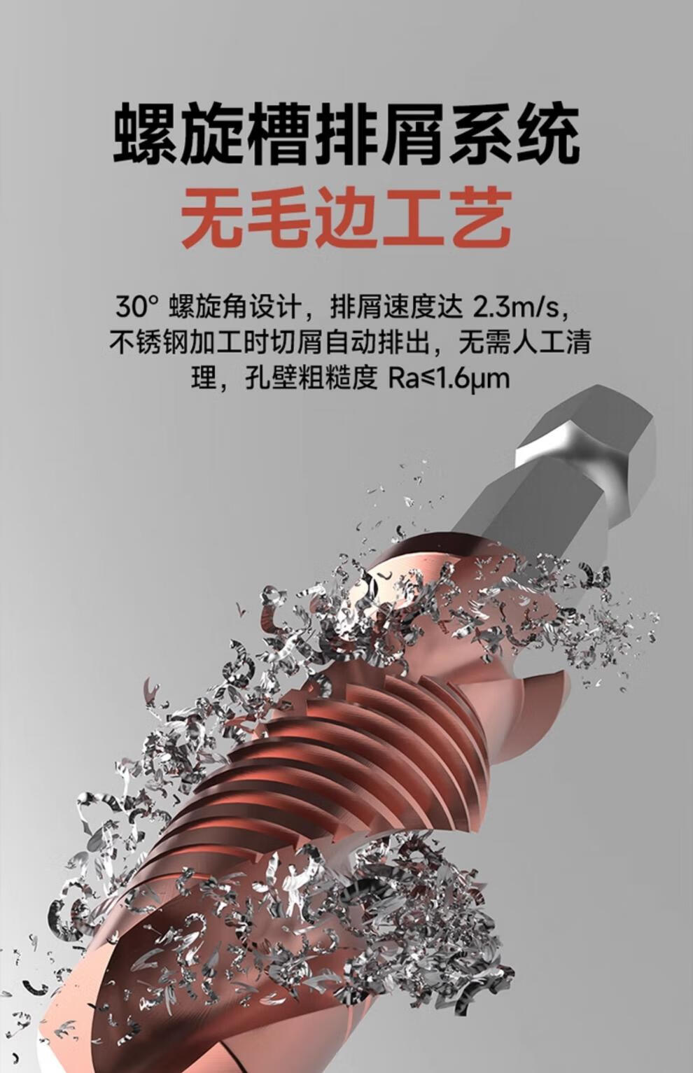 Fujinoi drilling, tapping and punching integrated three-in-one composite wire tapping cone power wire cobalt-containing drill bit for tapping stainless steel M3-M10 cobalt-plated industrial grade 6-piece set