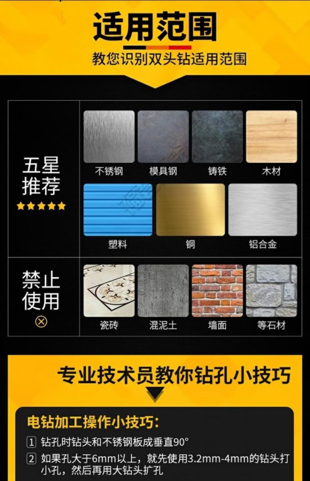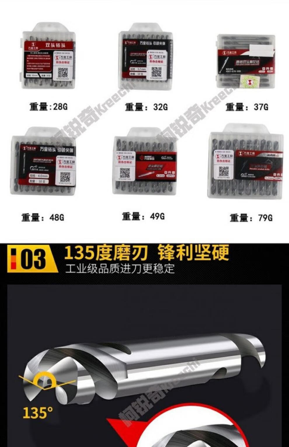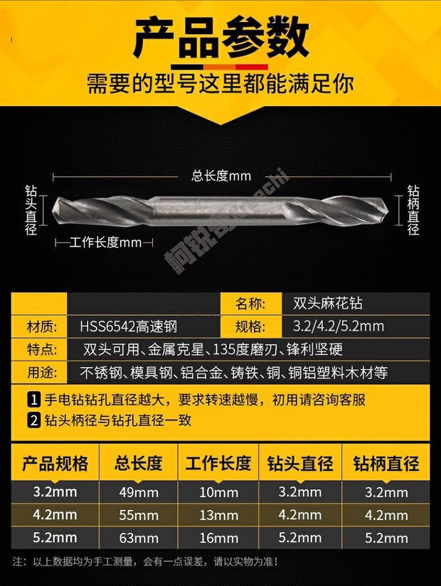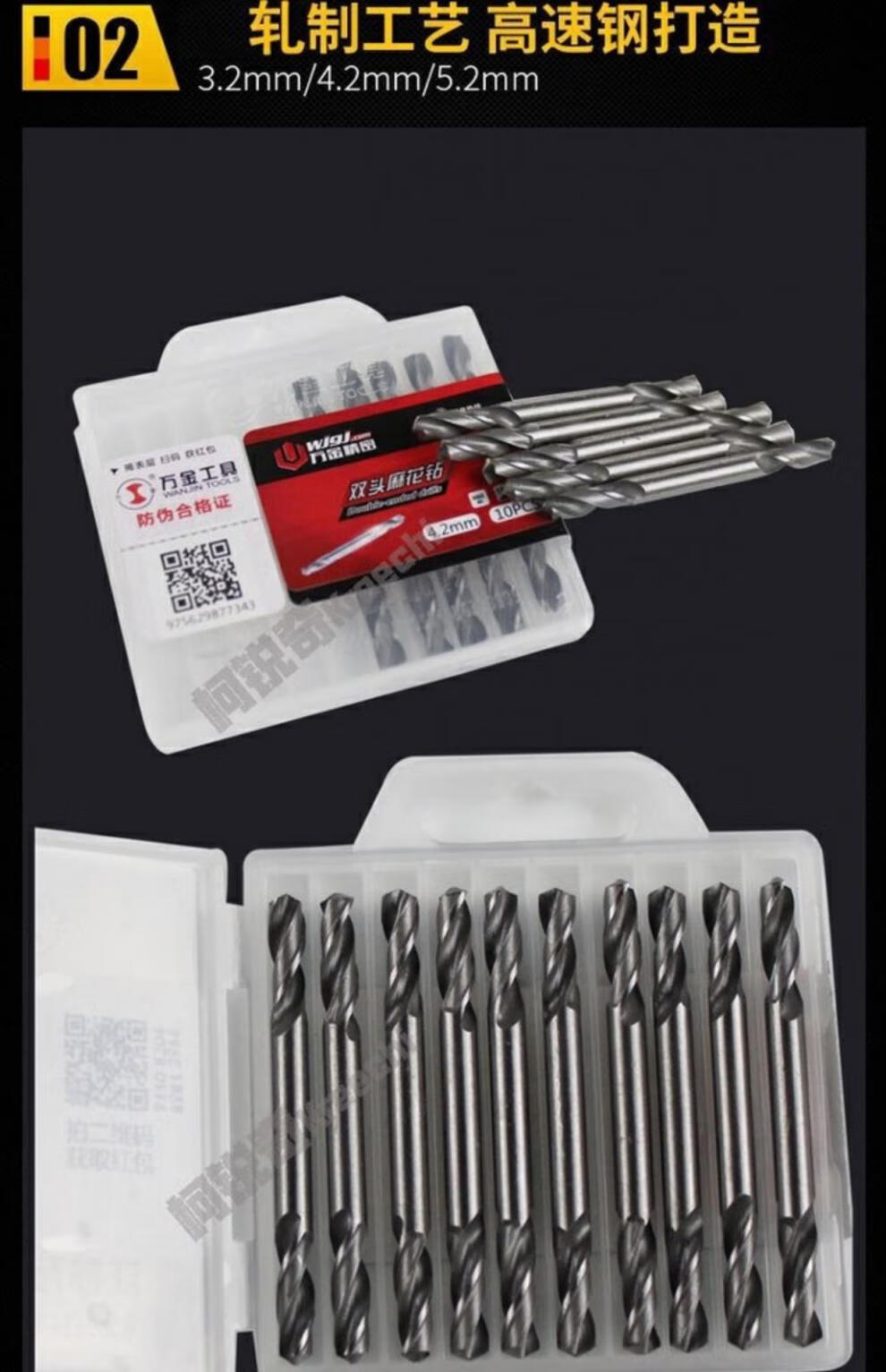 Wanjin double-head twist drill stainless steel drill bit iron plate aluminum alloy reamer drill rivet drill bit 6542 material M93 containing cobalt 5.2mm (pack of 10)