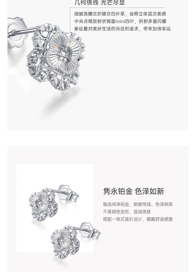 Diamond Family PT950 platinum earrings, four-leaf clover platinum earrings, platinum earrings, sparkling good luck holiday gift for girlfriend, single, about 1.33g