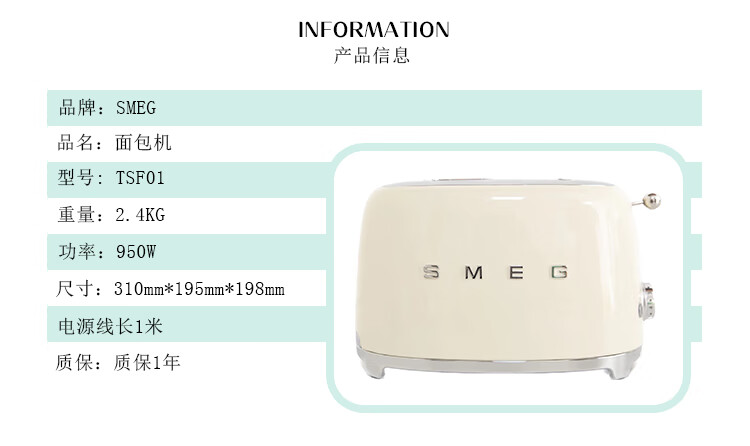 SMEGsmeg bread machine spot Smeg two-slice bread machine toaster toaster white spot second hair with dust cover