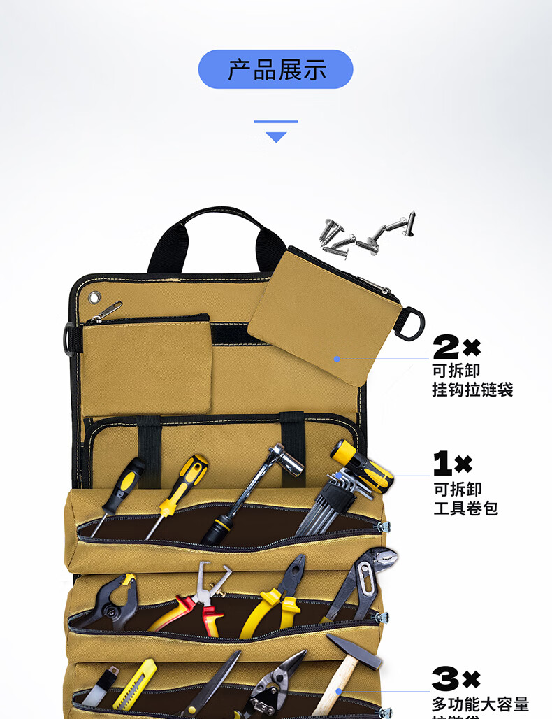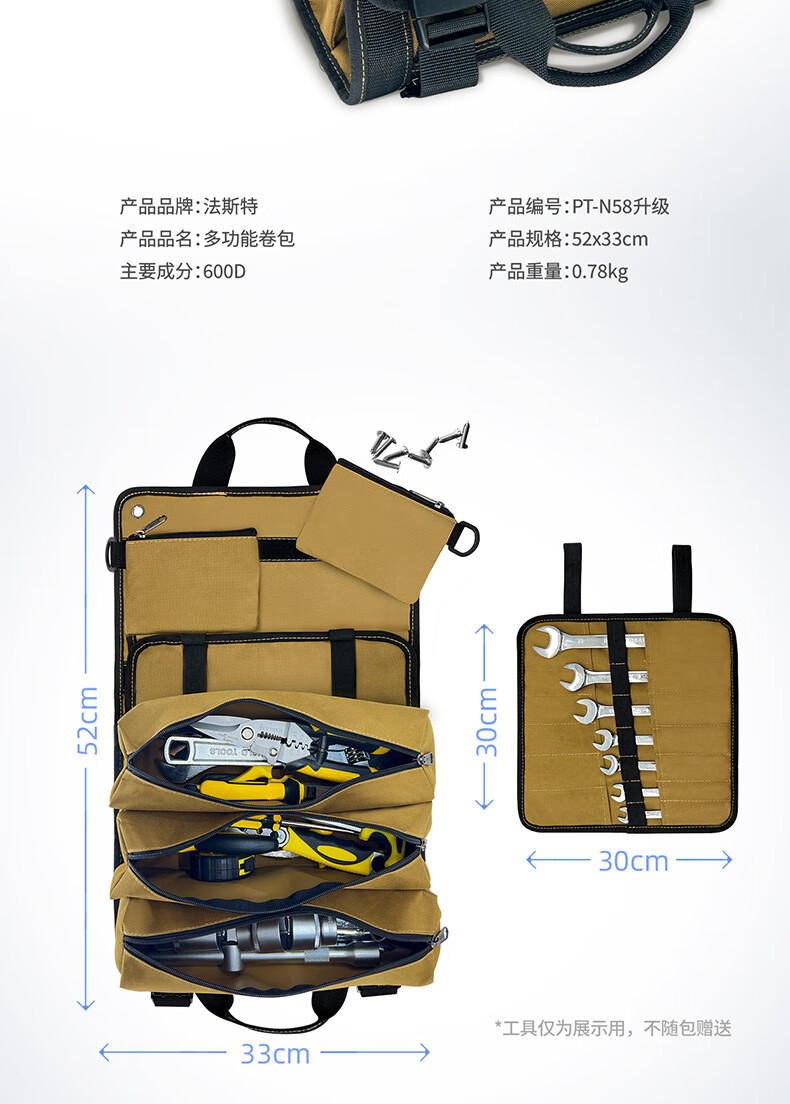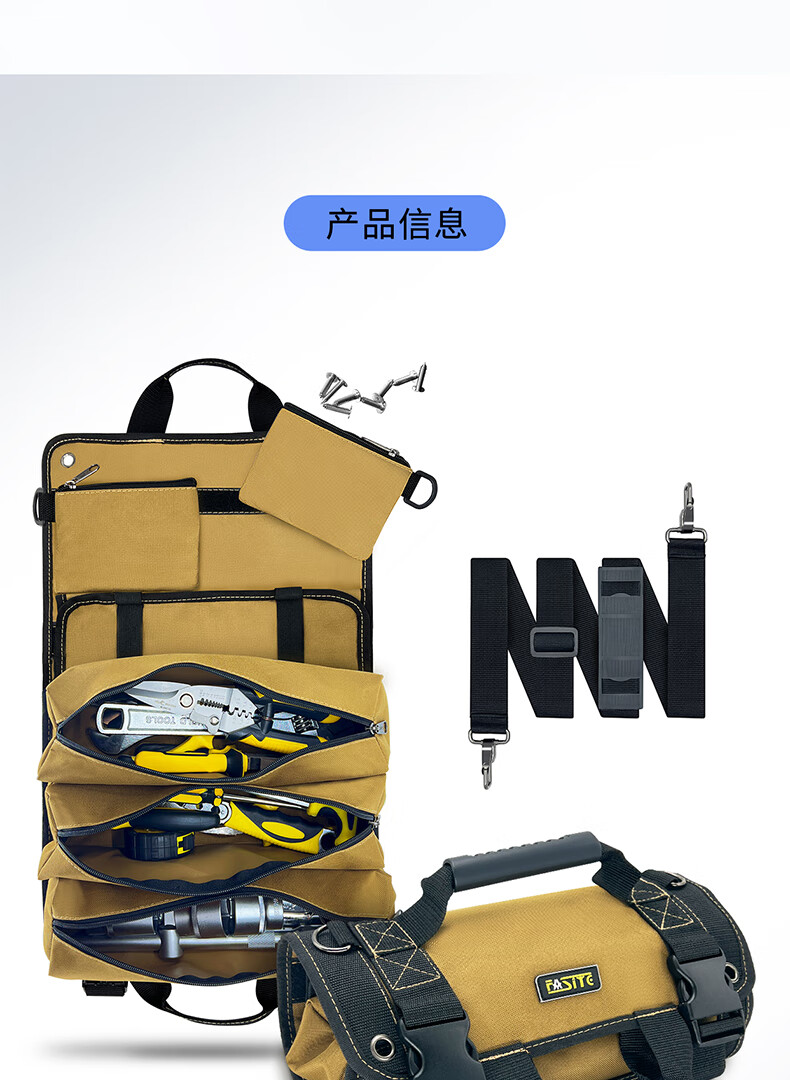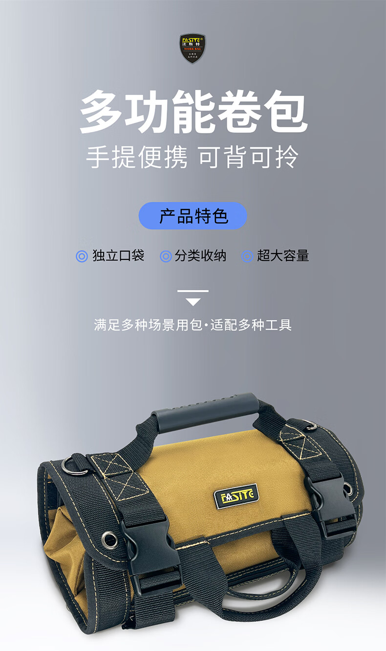 FASITE storage roll bag multi-functional thickened wear-resistant portable crossbody tool bag roll repair bag khaki