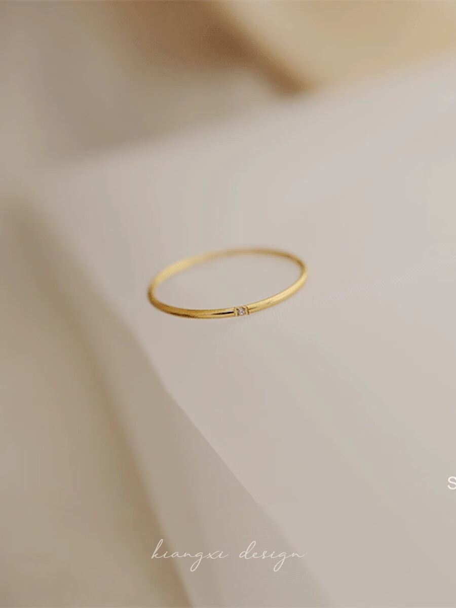 Non-fading ring for women, light luxury and high-end sense, 18K niche design, 2025 new popular plain ring, extremely thin ring - size 7 (suitable for 95-115 Jin Jin equals 0.5 kg)