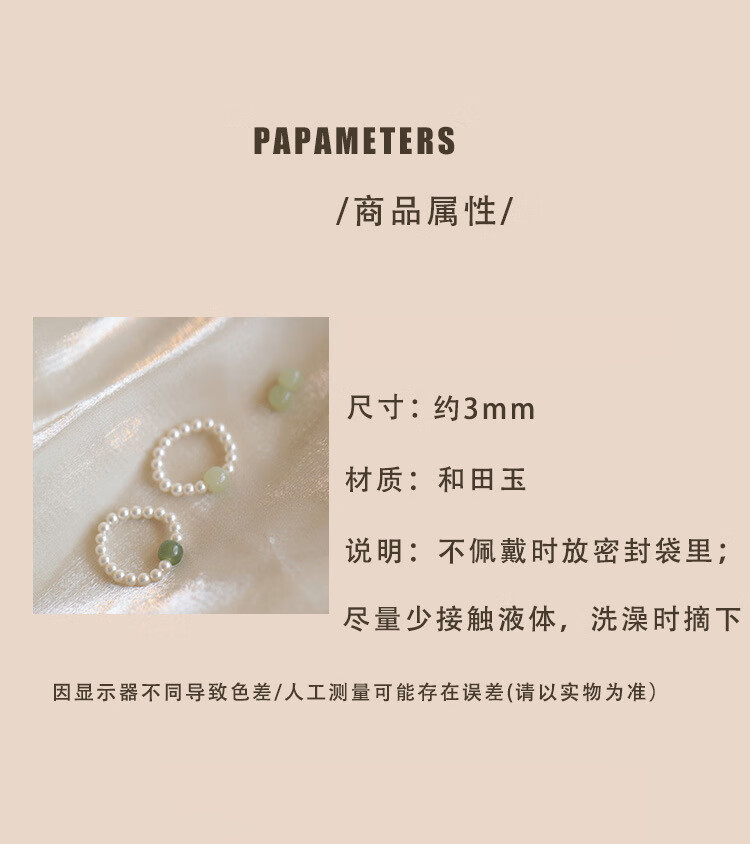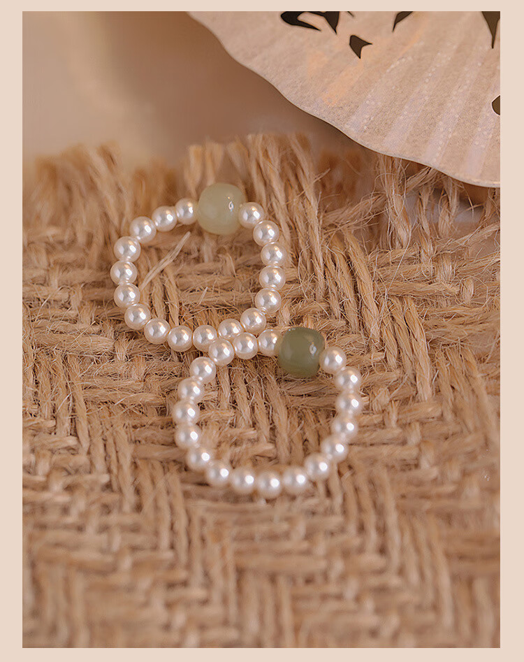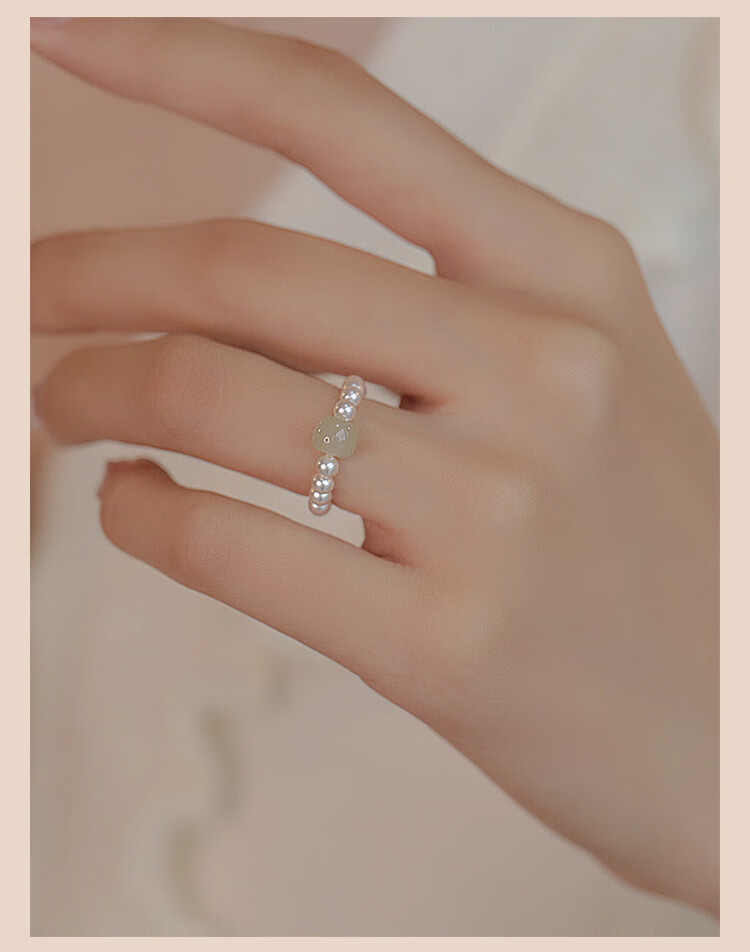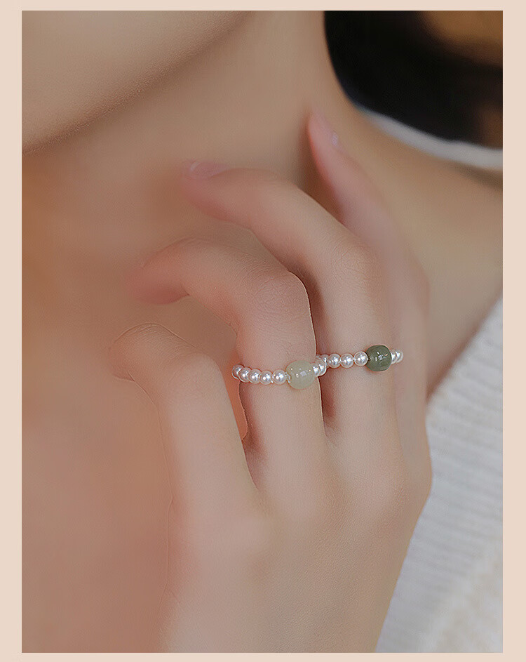 Fingertip Hetian jade and shell beads ring for women, light luxury index finger ring, high-end tail ring, light color Hetian jade 6-7mm/shell beads 3mm