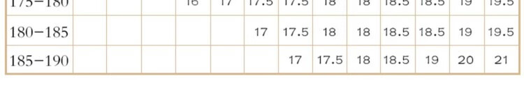 China (cm) 160-165/84-86 165-170 / 88-90 167-172 / 92-96 168-173 / 98-102 170-176 / 106-110