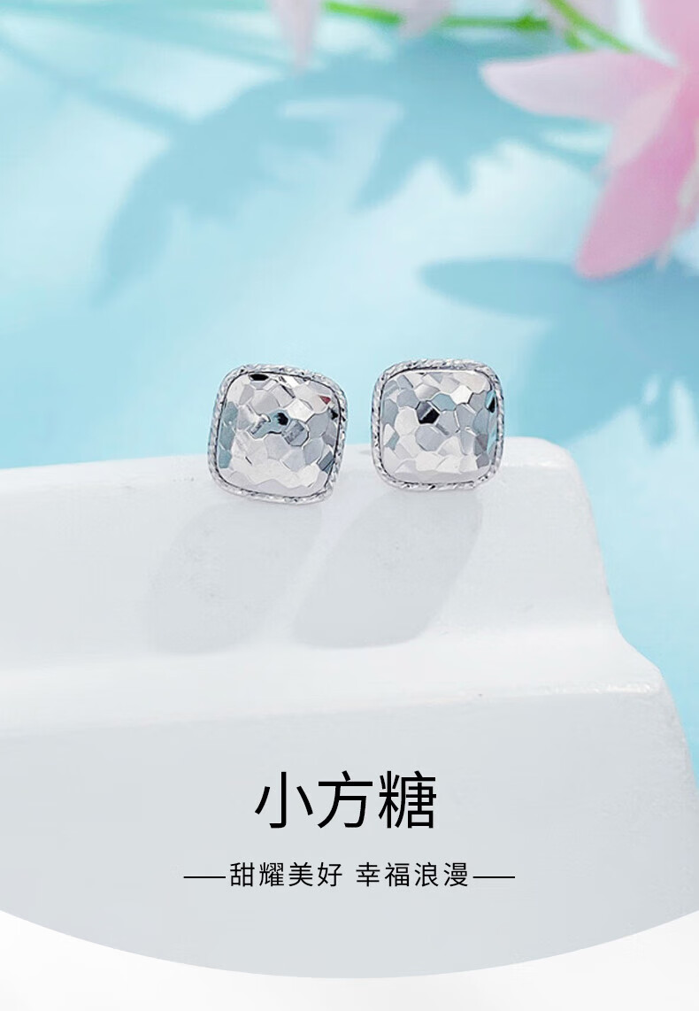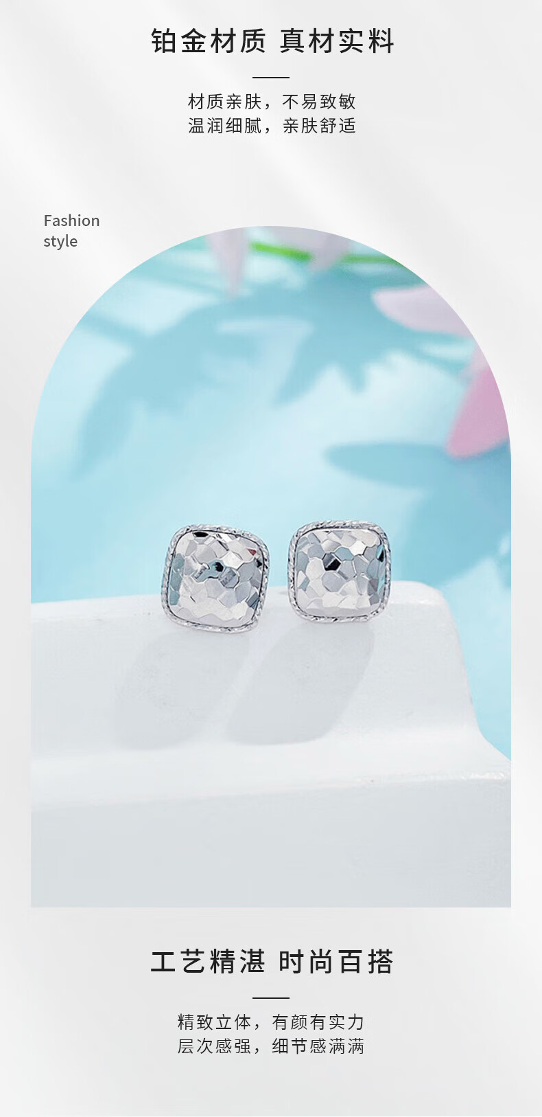 CHINA GOLD Platinum Earrings pt950 Ice Cracked Sugar Cube Platinum Earrings Decorated Solid Birthday Gift for Girlfriend and Wife About 2.47g Pair