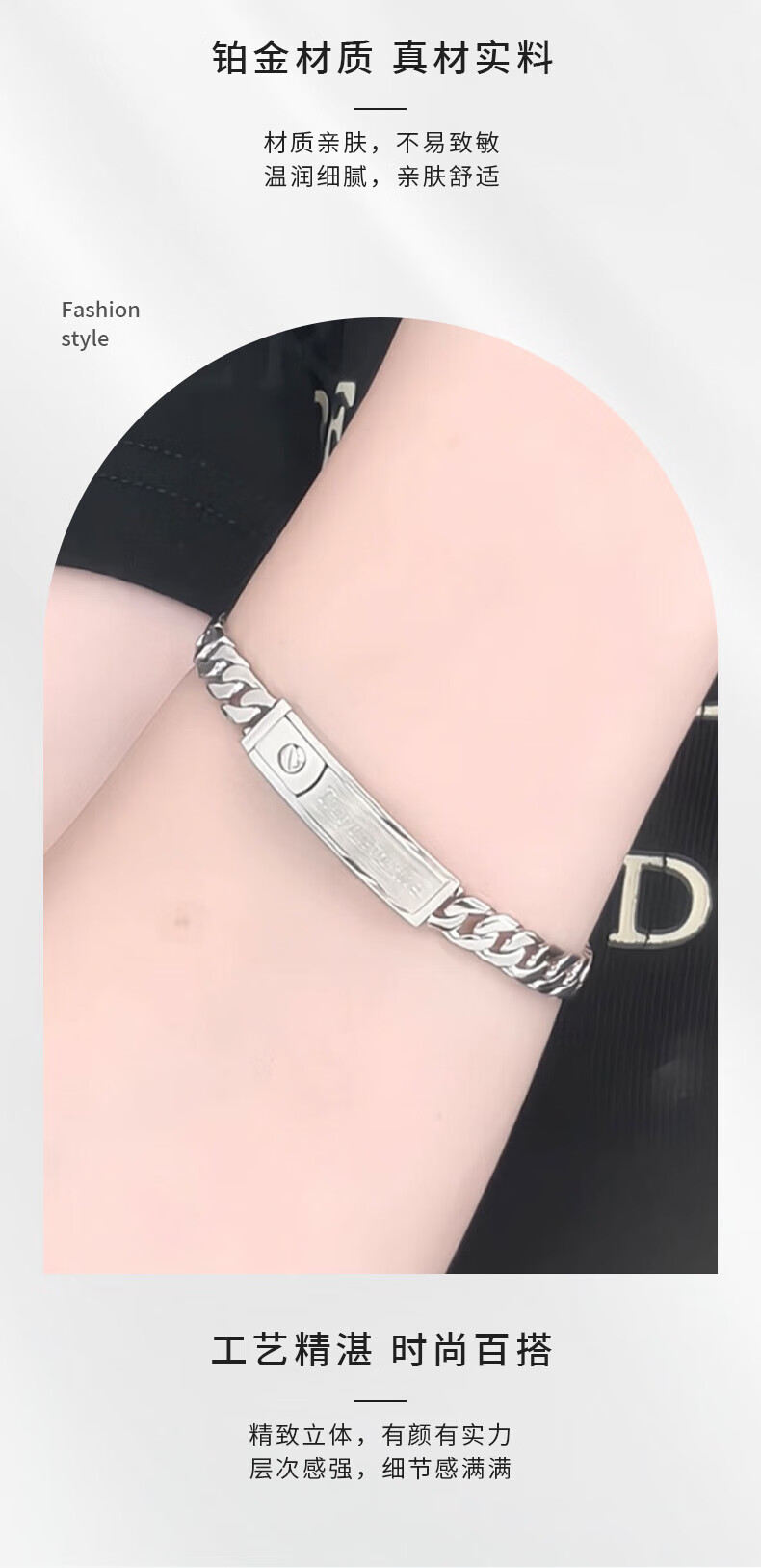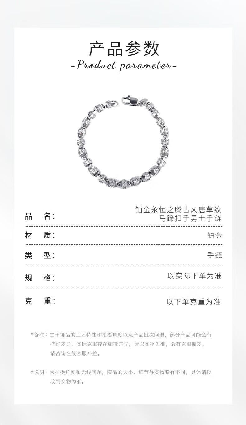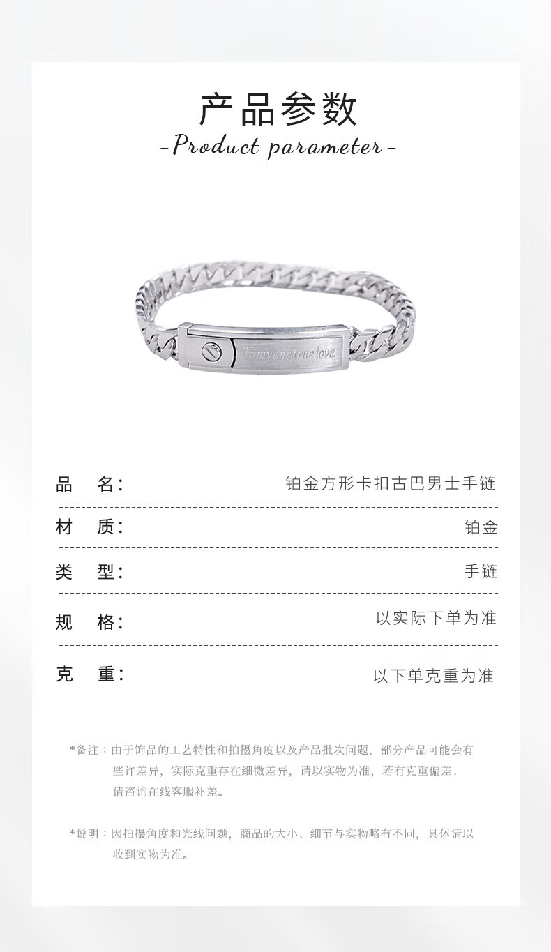 CHINA GOLD PT950 Eternal Teng Tang grass pattern horseshoe buckle hand men's bracelet square buckle Cuban platinum bracelet square Cuban chain approximately 34.24g