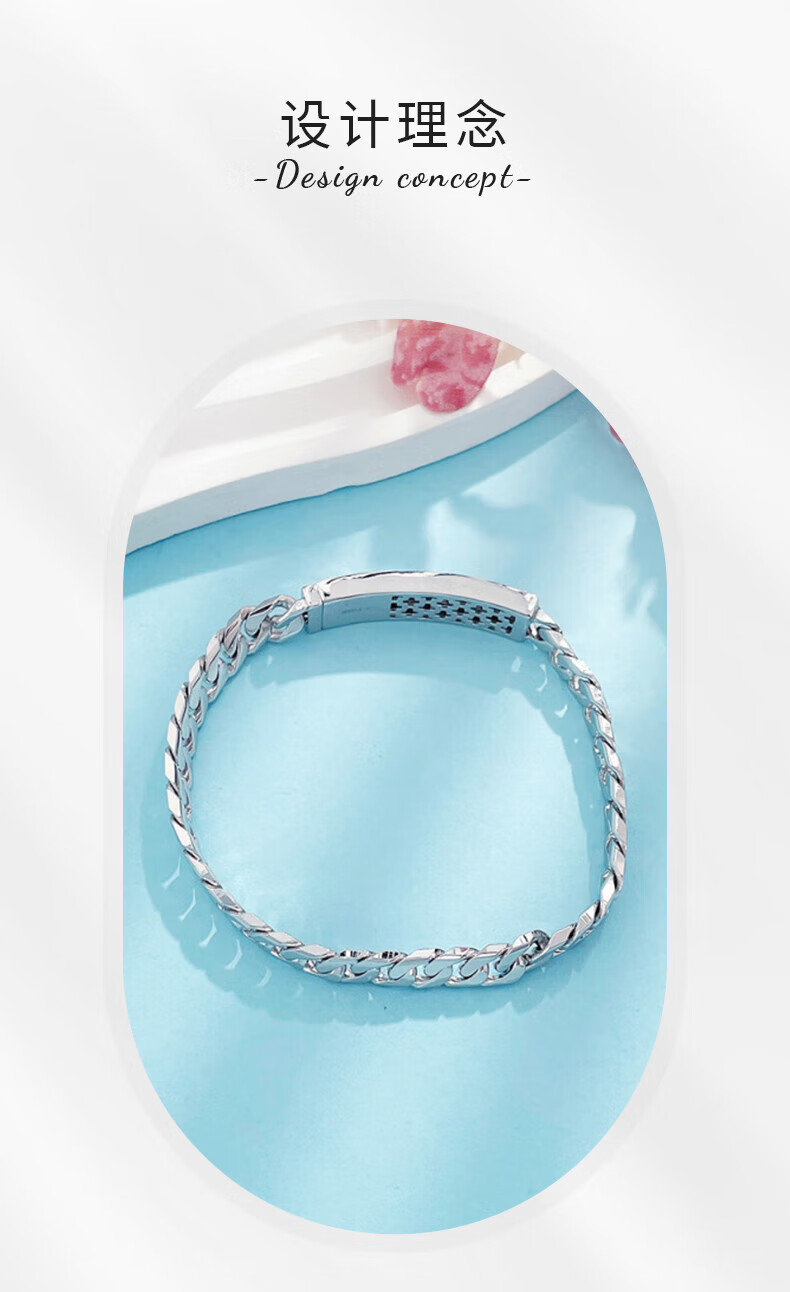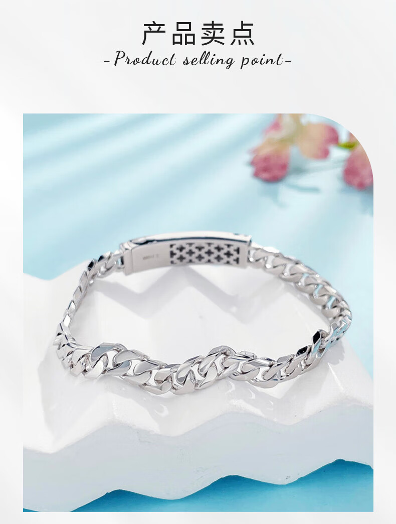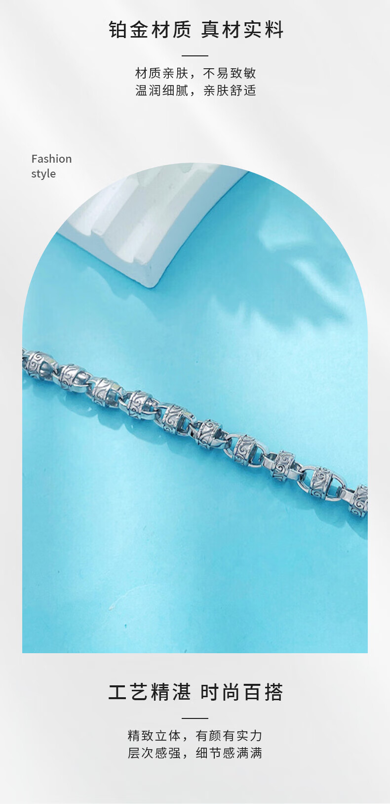 CHINA GOLD PT950 Eternal Teng Tang grass pattern horseshoe buckle hand men's bracelet square buckle Cuban platinum bracelet square Cuban chain approximately 34.24g